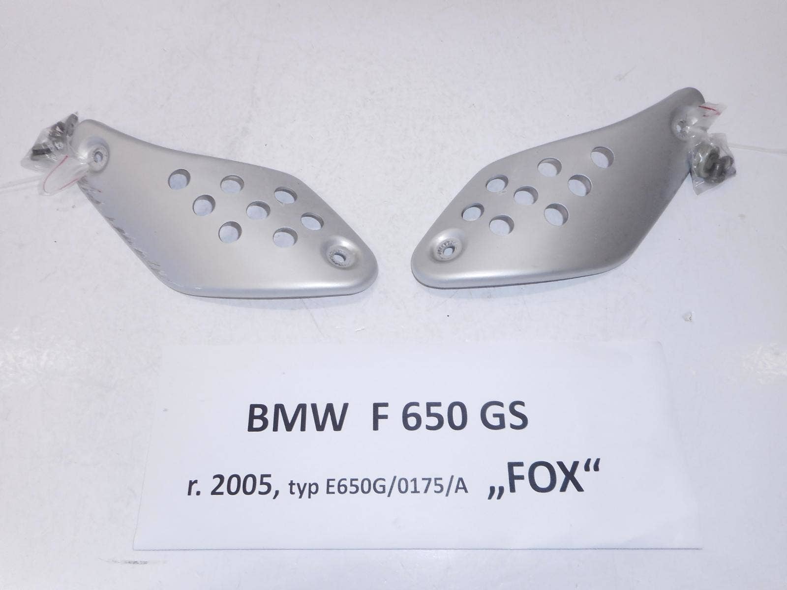 Cena je za levý odřený kus. Pravý má jen drobné oděrky na spodní hraně a stpjí 380, Kč. Díl pochází z motocyklu BMW F 650 GS. r. 2005 (facelift). Při použití na jíný model ověřte před objednáním kompatibilitu. Ilustrační foto v popisku.