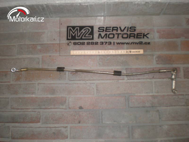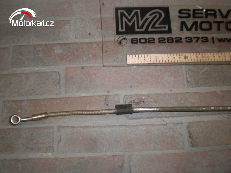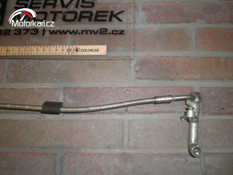 zadní brzdová hadice opletená, plně funkční stav( inzerát je aktuální, prodané díly ihned mažeme, pro bližší info používejte pokud možno e-mail, děkujeme za pochopení! MV2 moto)