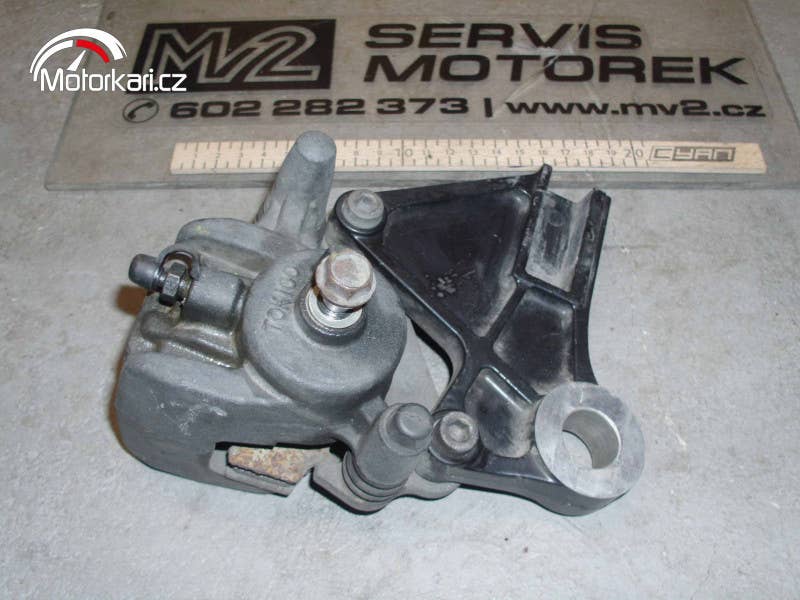 zadní brzdový třmen s držákem, plně funkční, cena za komplet( inzerát je aktuální, prodané díly ihned mažeme, pro bližší info používejte pokud možno e-mail, děkujeme za pochopení! MV2 moto)