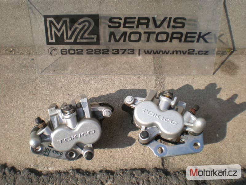 přední brzdové třmeny, levý, pravý, Tokico, top stav, plně funkční, cena za kus( inzerát je aktuální, prodané díly ihned mažeme, pro bližší info k ND používejte pokud možno e-mail, děkujeme za pochopení! MV2 moto)