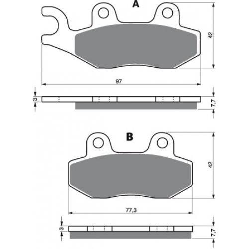 Destičky AD: Kvalitní brzdové destičky vyrobeny ze sintrovaných kovokeramických a uhlíkokeramických třecích materiálu. Určené pro běžnou silniční jízdu na skútrech, cruiserech a silničních motorkách.