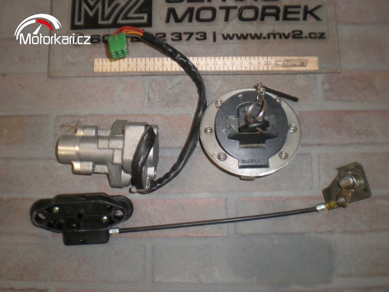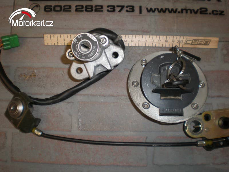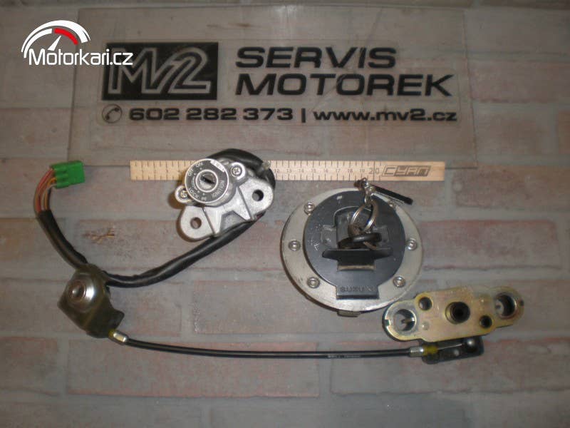 sada zámků, víčko nádrže, klíče, spínačka, vše plně funkční a zachovalý stav, cena za komplet( inzerát je aktuální, prodané díly ihned mažeme, pro bližší info používejte pokud možno e-mail, děkujeme za pochopení! MV2 moto)
