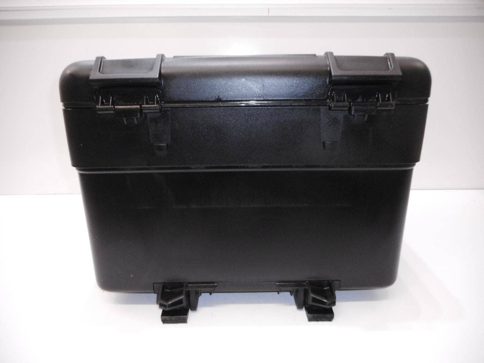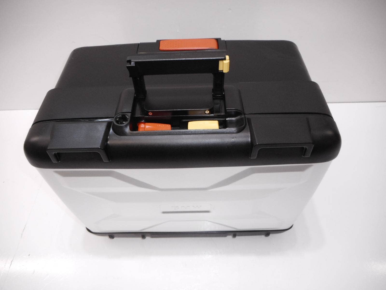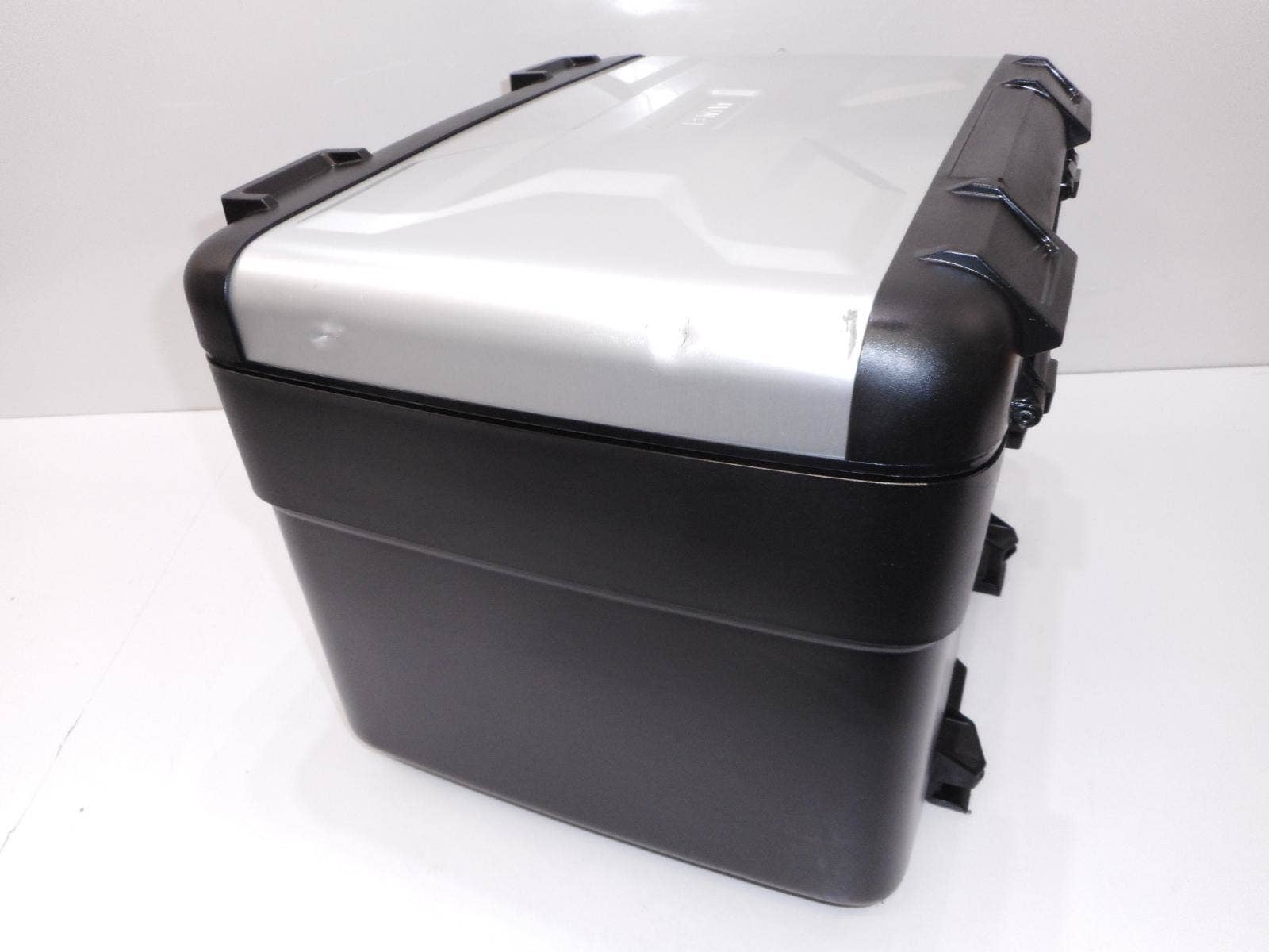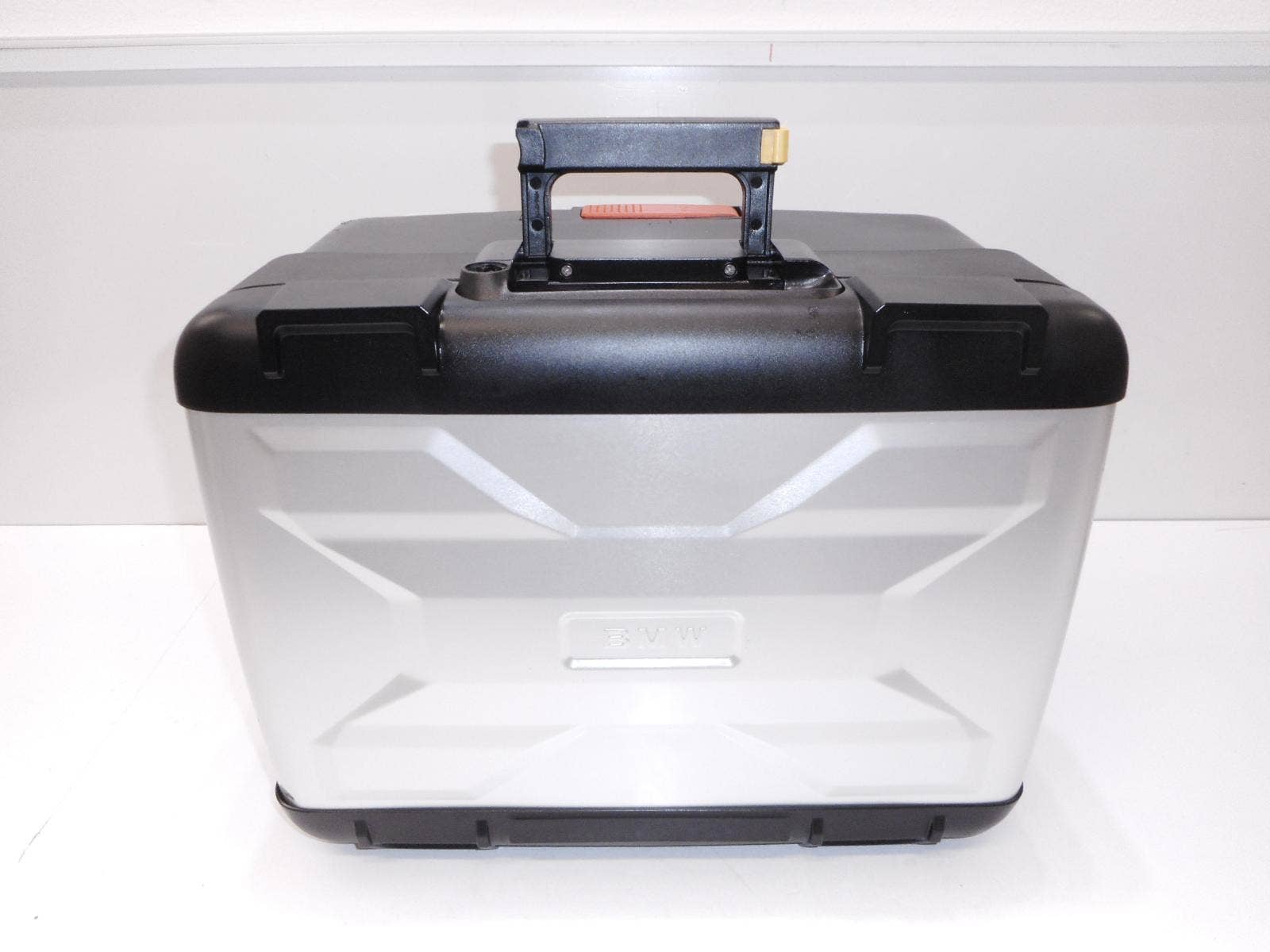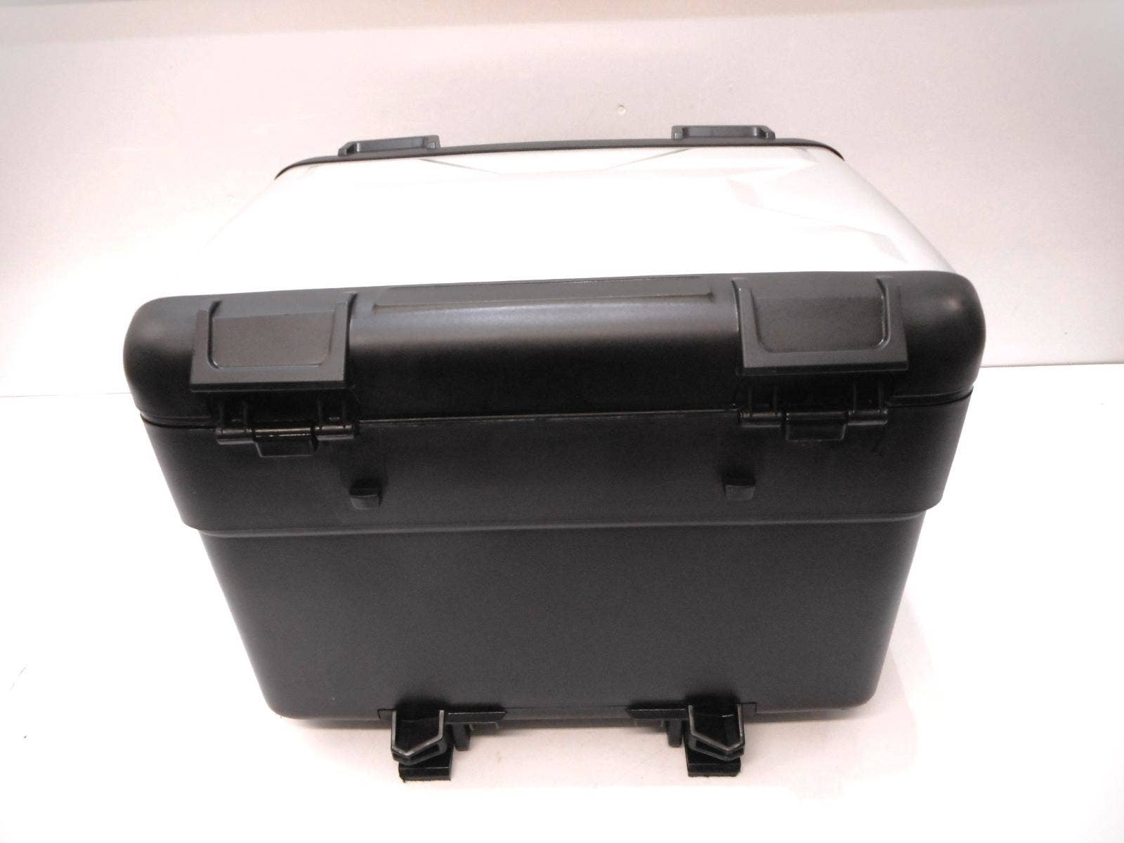 Kufr je z BMW R 1200 GS LC. Při použití na jiný model ověřte před objednáním kompatibilitu. Roztahování, stahování, zavírání i upínání je v pořádku. Kufr má důlky a oděrky na víku viz. foto. Na prodej bez vložky zámku.