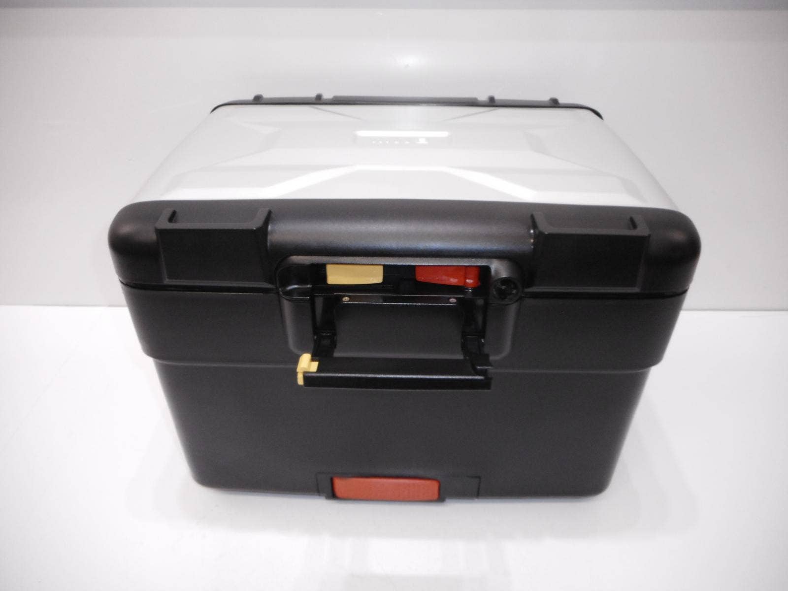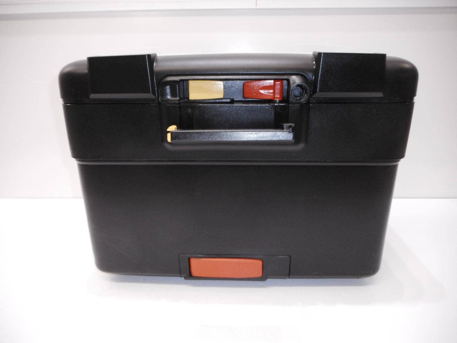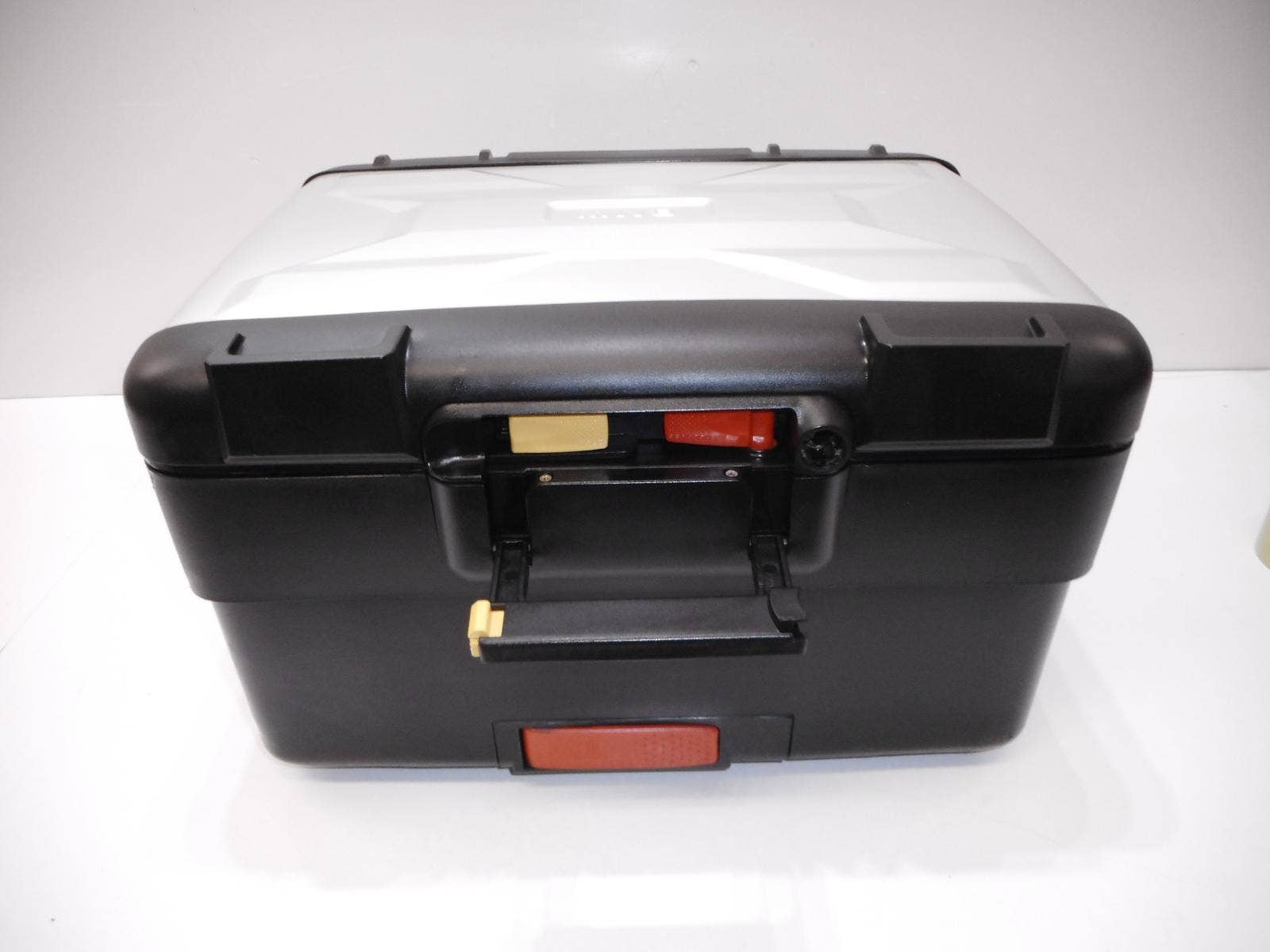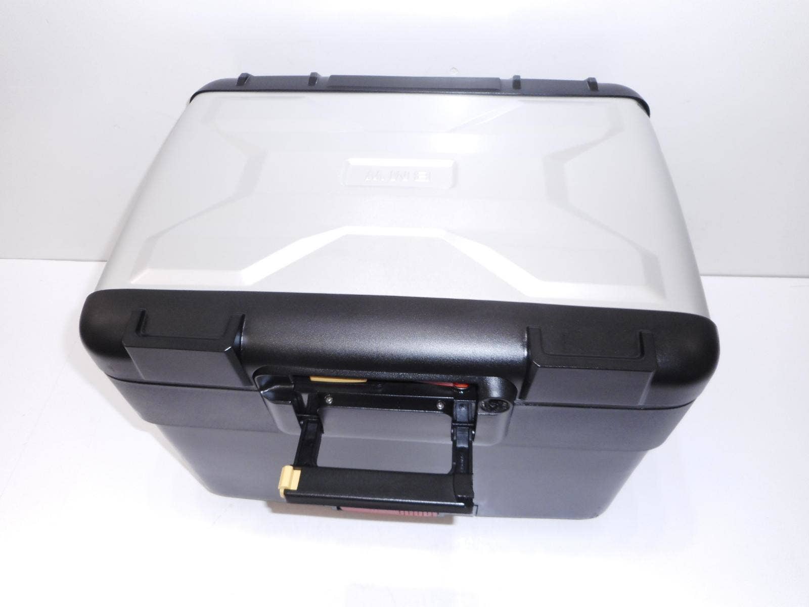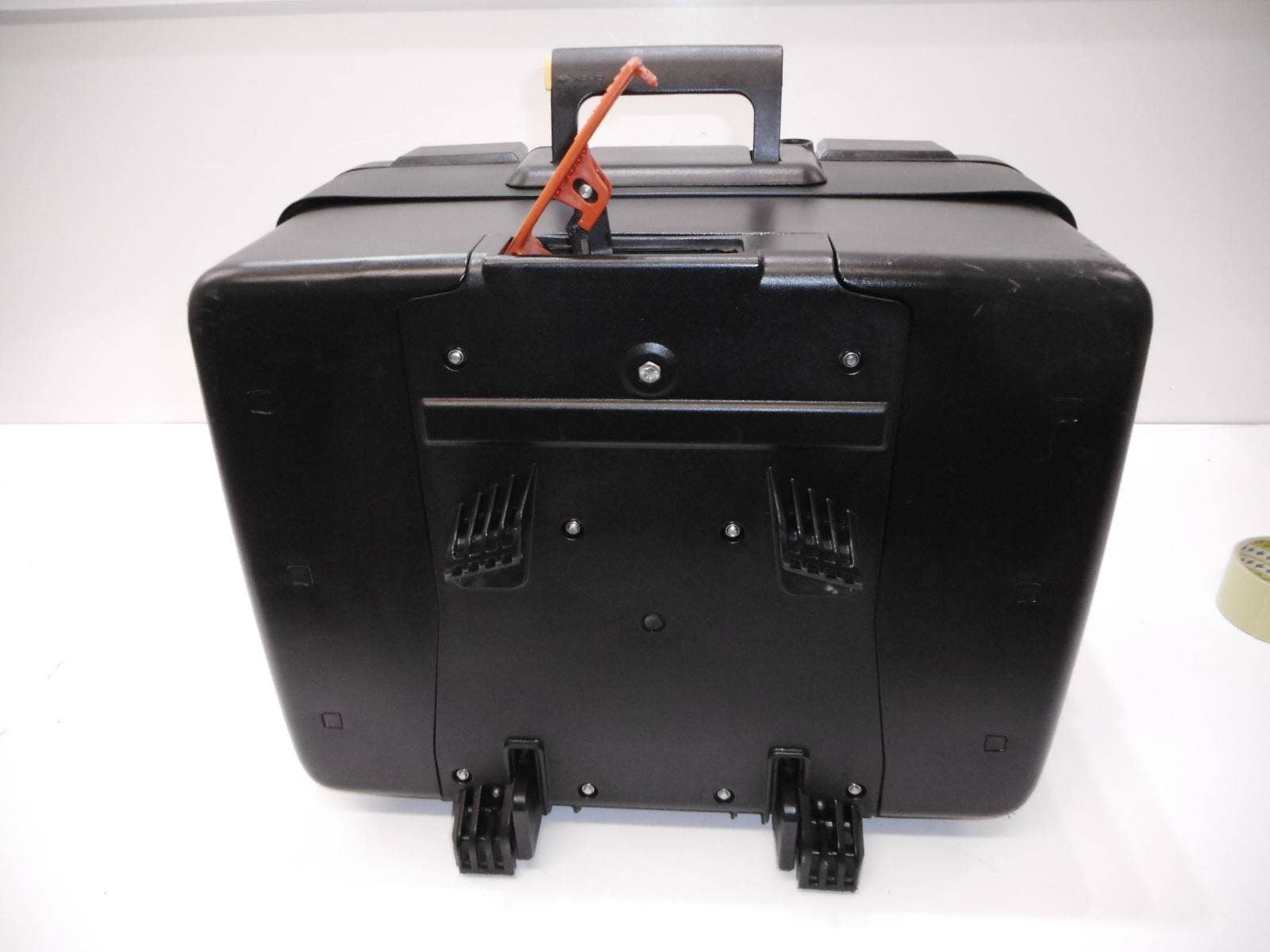 Kufr je z BMW R 1200 GS LC. Při použití na jiný model ověřte před objednáním kompatibilitu. Roztahování, stahování, zavírání i upínání je v pořádku. Kufr má důlky a oděrky na víku viz. foto. Na prodej bez vložky zámku.