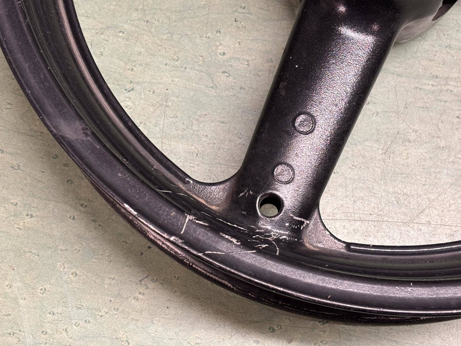 motorka s kolem normálně jezdila, nicméně hází asi 3-5mm. Je potřeba ho nechat opravit