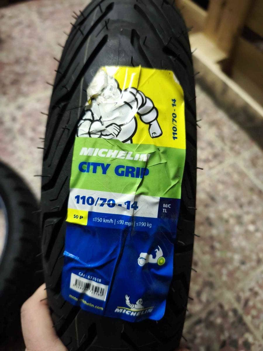 Nová pneu Michelin CityGrip 110/70 - 14 50P. DOT 50/23. Pneu byla skladována v suchu ve vytápěném prostoru, v temnu. Možno použít bez problému. Původní cena 1 200, Kč. Nyní 590, Kč. Možno zaslat na dobírku za 150, Kč. Jedná se o výprodej skladu, pneu je nová nepoužitá.