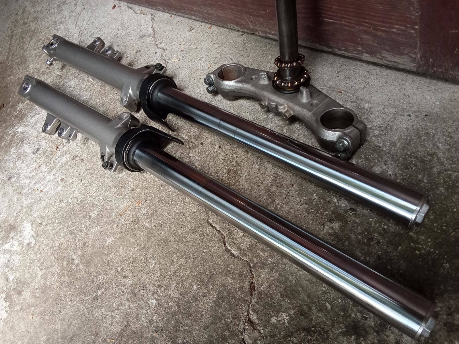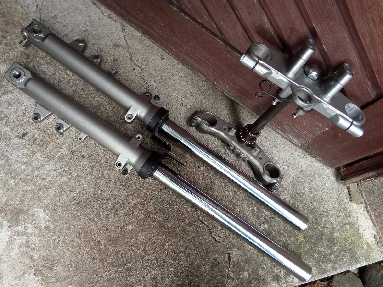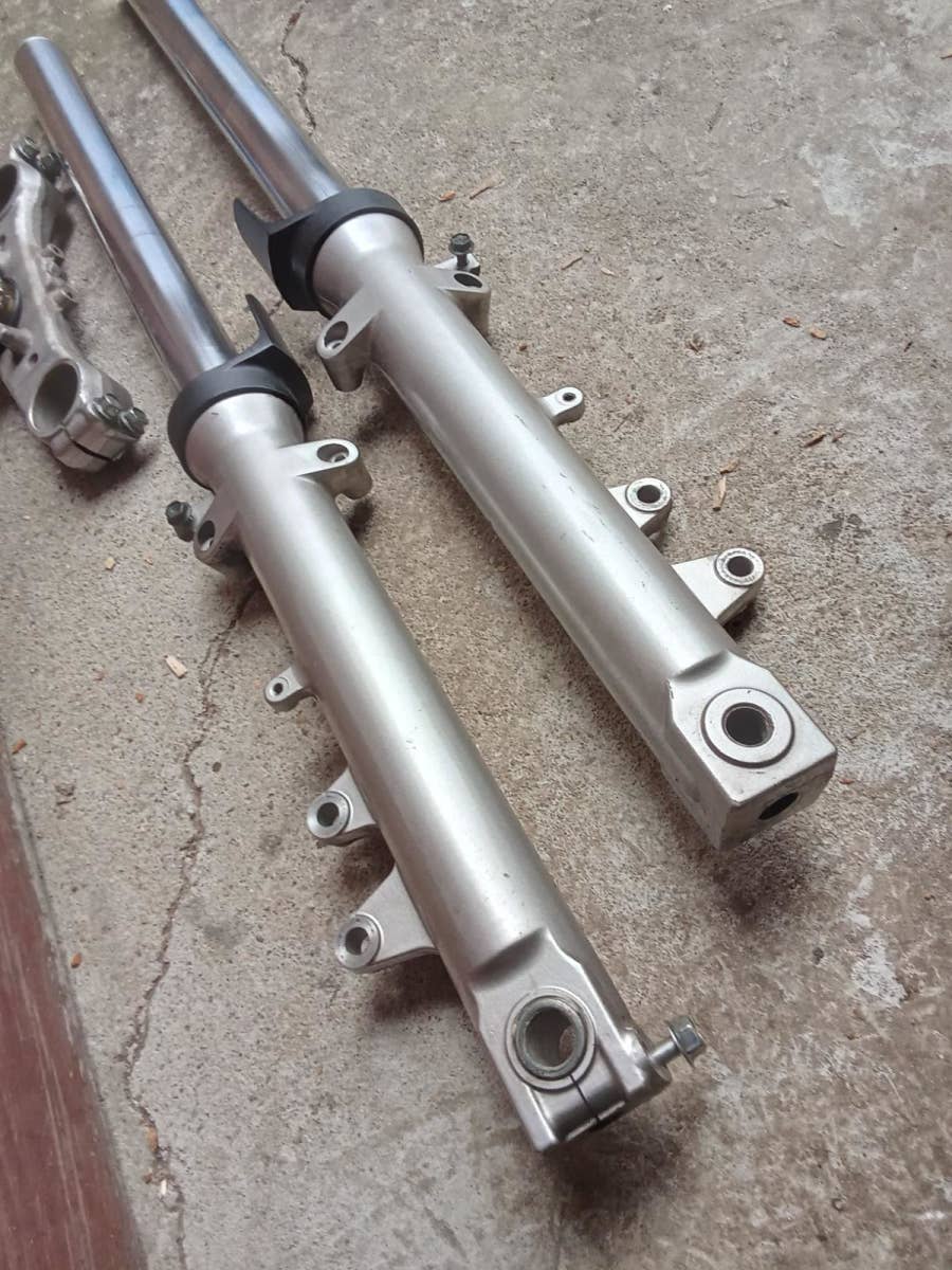 Pravá vidlice má zalomený jeden šroub u osy, je funkční 1900,