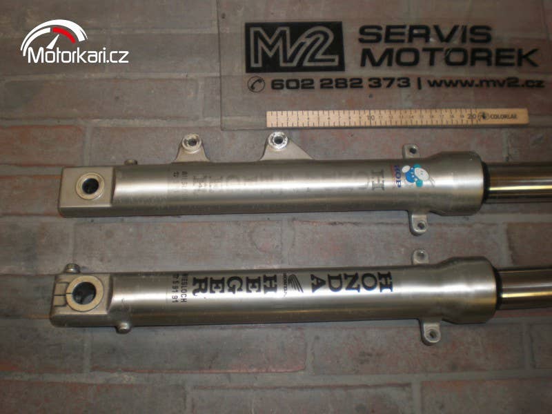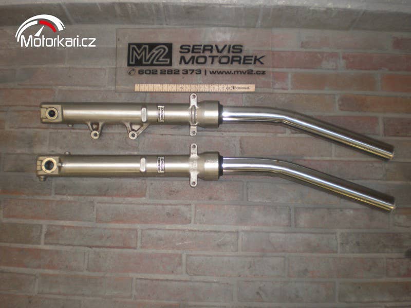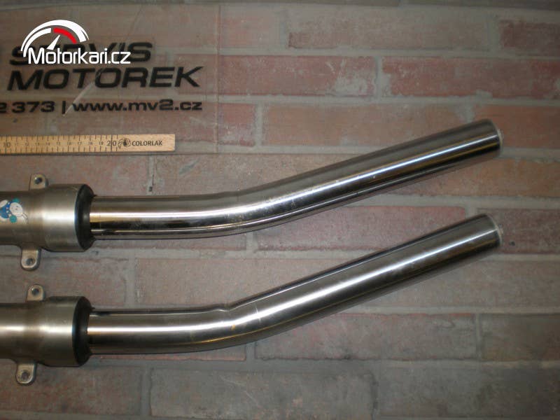 přední vidlice, pravá, levá, obě ohnuté, cena za kus( inzerát je aktuální, prodané díly ihned mažeme, pro bližší info používejte pokud možno e-mail, děkujeme za pochopení! MV2 moto)