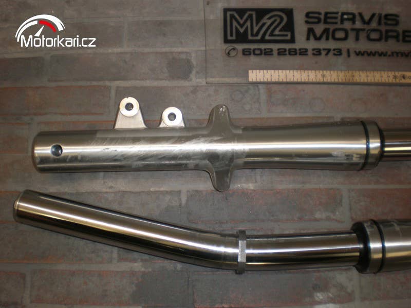 oproti fotce již pouze pravá vidlice lehce odřený kluzák ohnutá roura, cena za kus( inzerát je aktuální, prodané díly ihned mažeme, pro bližší info používejte pokud možno e-mail, děkujeme za pochopení! MV2 moto)