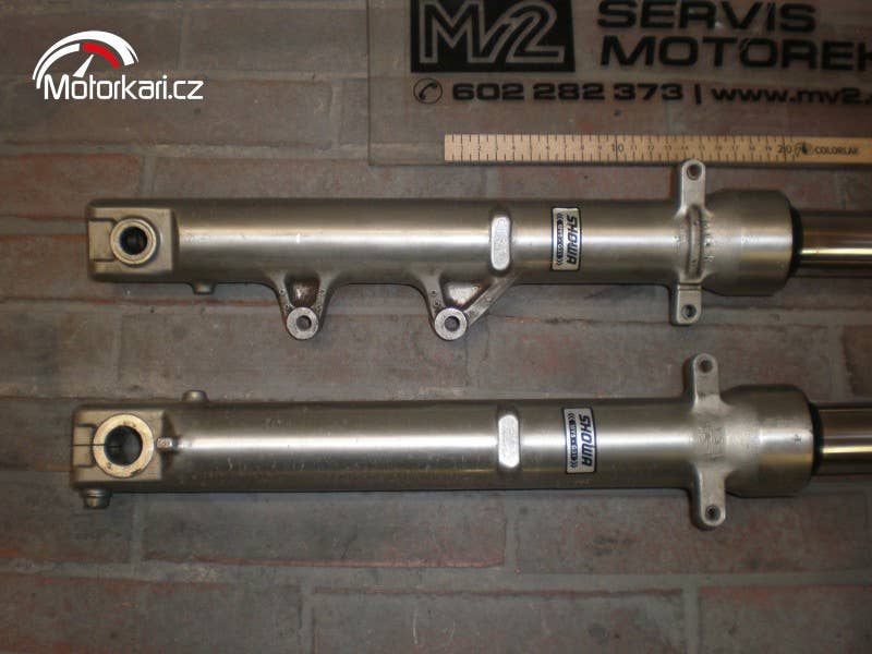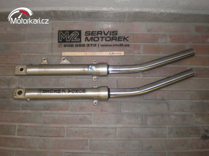 přední vidlice, pravá, levá, obě ohnuté, cena za kus( inzerát je aktuální, prodané díly ihned mažeme, pro bližší info používejte pokud možno e-mail, děkujeme za pochopení! MV2 moto)