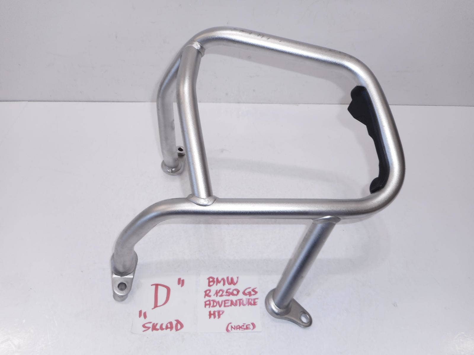 Padací rám pochází z motocyklu BMW R 1250 GS Adventure, r. 2020. Na horní trubce jsou oděrky. Je rovný, oděrky jsou od pádu motocyklu na místě (neudržení na noze v klopené zatáčce ve stoupání). - sklad "D". Při použití na jiný model, ověřte před objednáním kompatibilitu. Více dílů na webu automotocerveny. cz