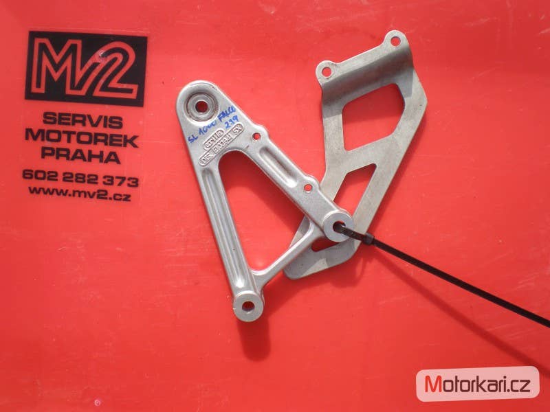 levý přední držák stupačky, plně funkční a zachovalý stav( inzerát je aktuální, prodané díly ihned mažeme, pro bližší info používejte pokud možno e-mail, děkujeme za pochopení! MV2 moto)
