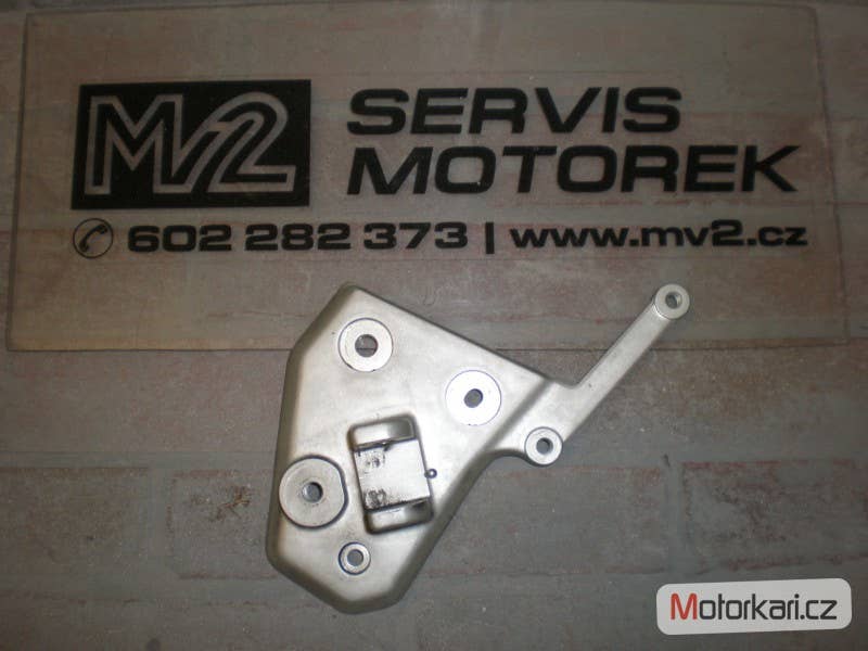 držák přední stupačky, levý, zachovalý a plně funkční stav( inzerát je aktuální, prodané díly ihned mažeme, pro bližší info používejte pokud možno e-mail, děkujeme za pochopení! MV2 moto)