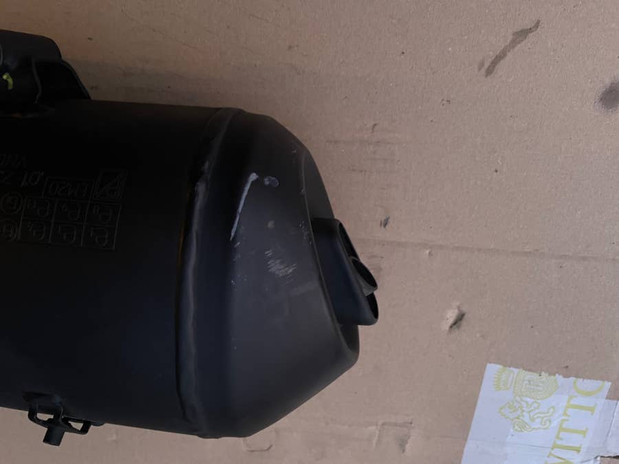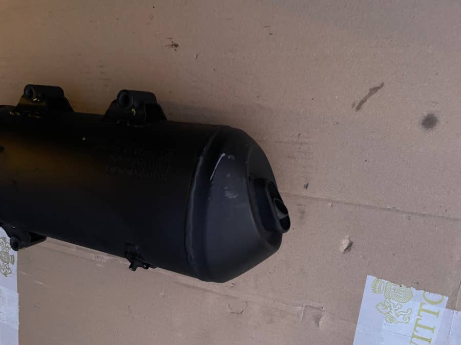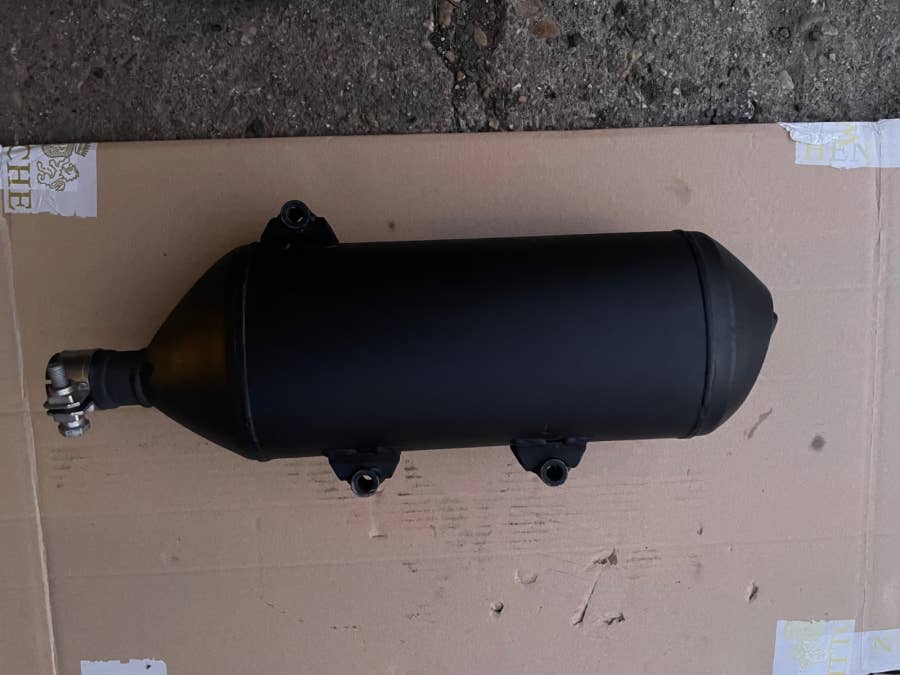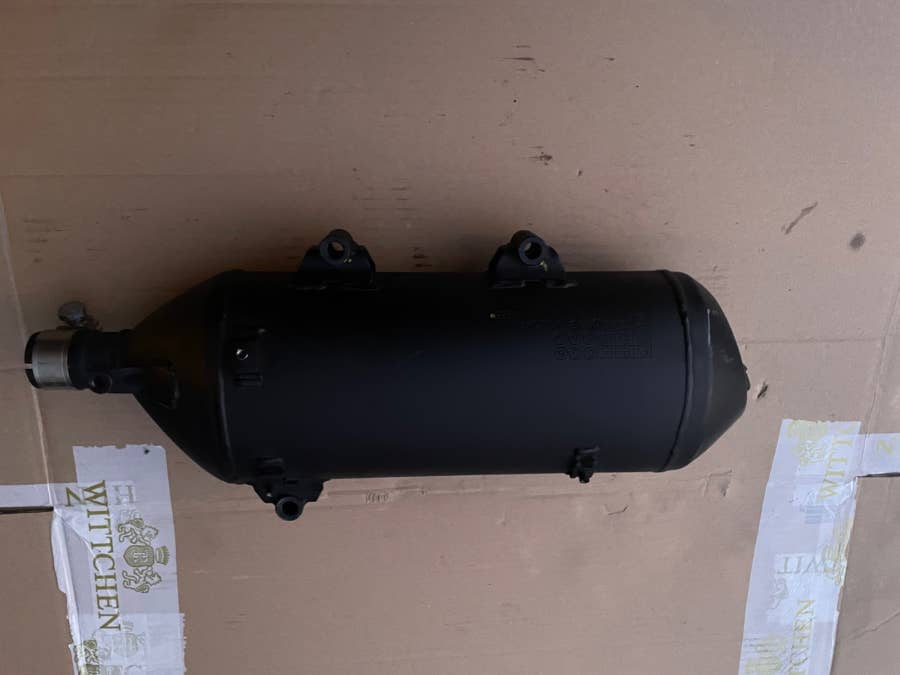 Original homologovaný tlumič vyfuku,( ma se zadu sled barvy od vozidla, dalo se bych tecnickym benzinem otřit, jinak neni poškozený!