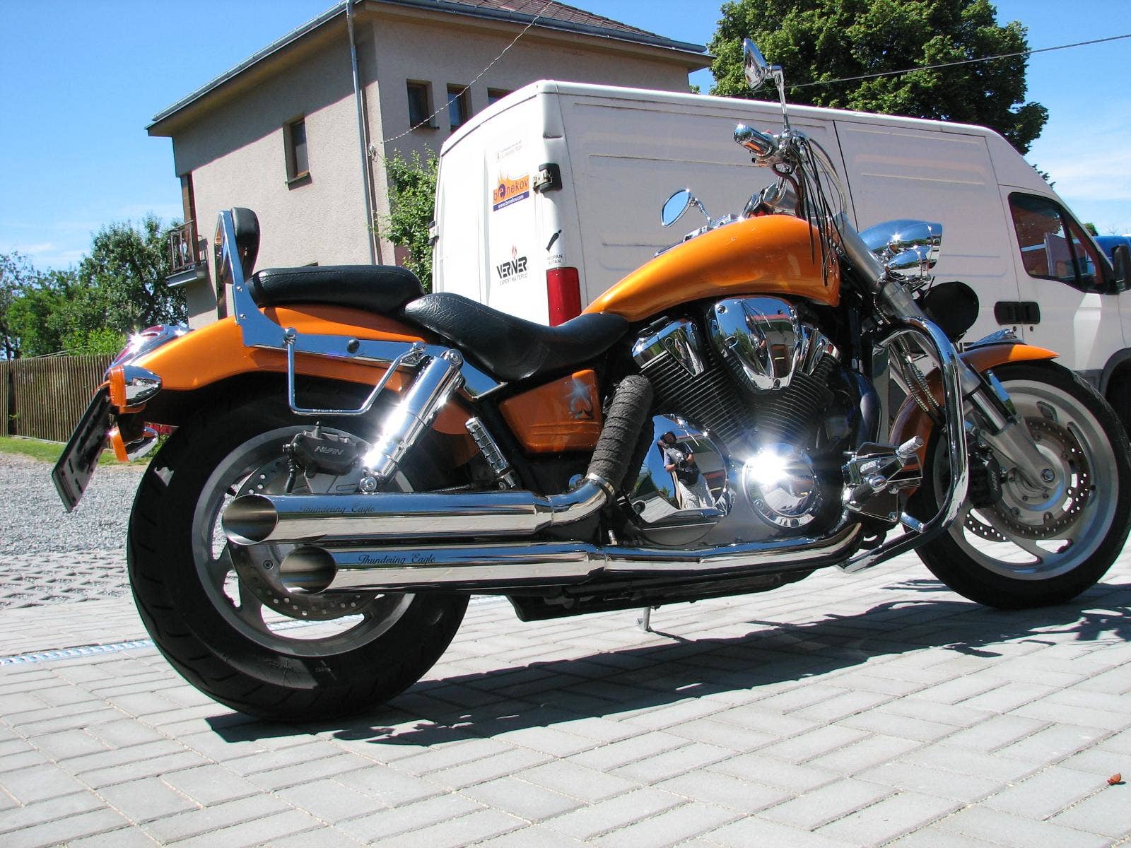 Výfuky mají tzv. basovou píšťalu, která vytváří hluboký zvuk, lze ztišit (např. pro cesty mimo čr.)