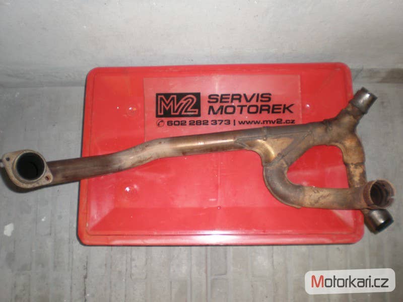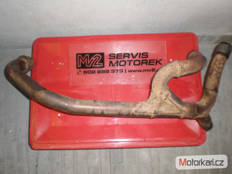 svod výfuku přední, plně funkční a zachovalý stav( inzerát je aktuální, prodané díly ihned mažeme, pro bližší info používejte pokud možno e-mail, děkujeme za pochopení! MV2 moto)