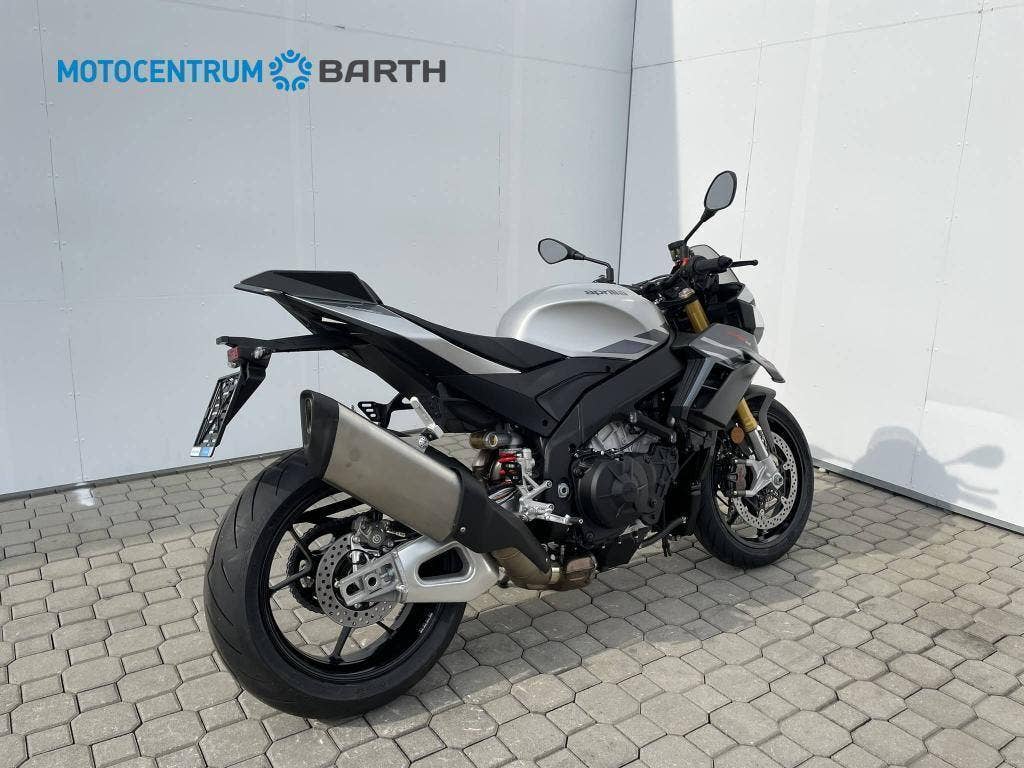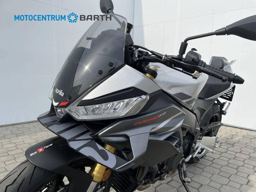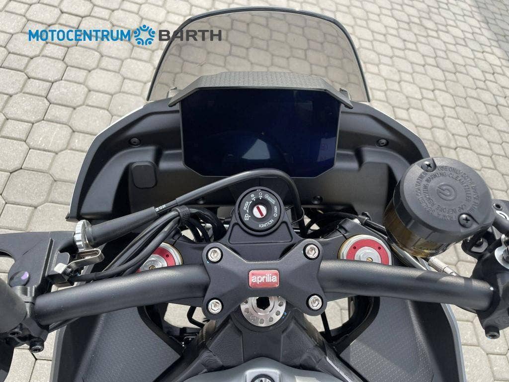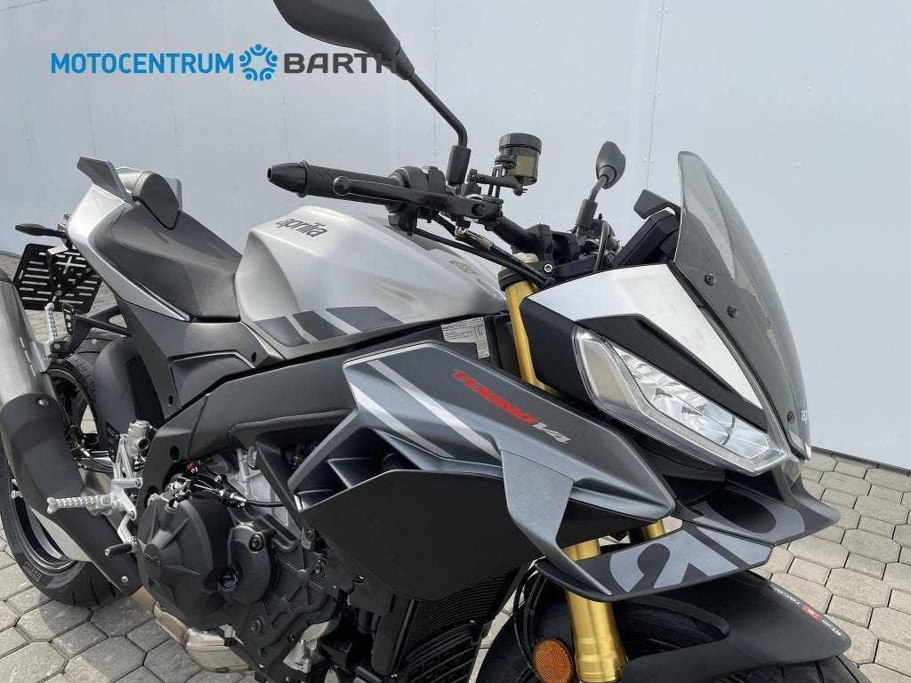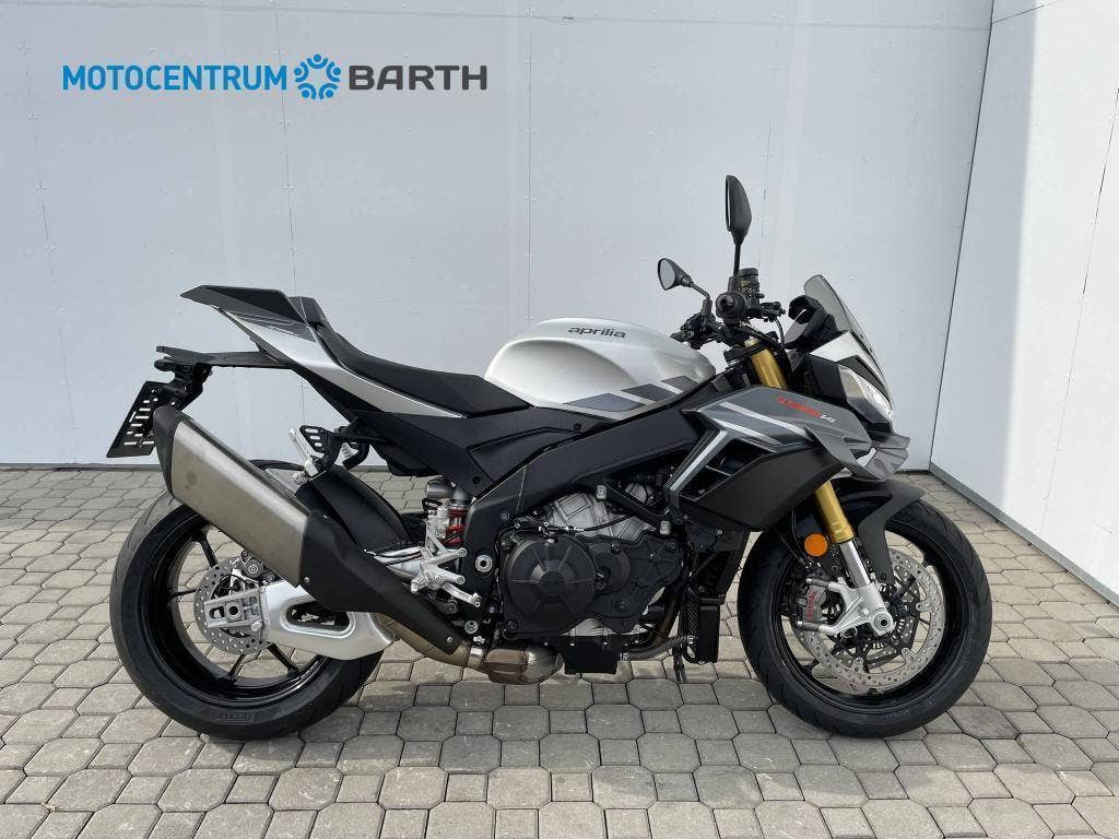 Aprilia Tuono V4 kombinuje sportovní výkon s výjimečnou ovladatelností i na běžné silnici. Díky motoru V4 E5+ o výkonu 180 koní, sebevědomé ergonomii, integrovaným křídlům pro lepší stabilitu a přizpůsobitelnému balíčku elektroniky a-PRC je všestrannější a dravější než kdykoli předtím.