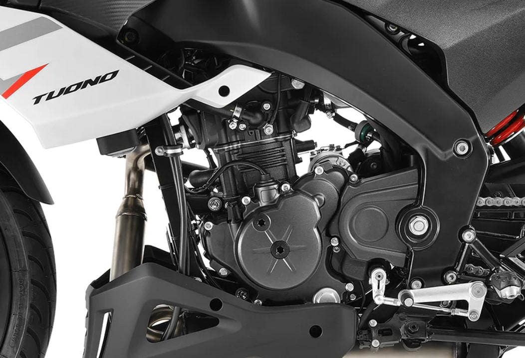 Pro mladé jezdce je Tuono 125 přesně tím, co představuje název „Tuono“ - dokonalou kombinací výkonu a zábavy, vytvořenou díky inženýrskému umu a vášni, zdokonalenou na závodním okruhu a připravenou pro jízdu na silnici. Jediný motocykl s hliníkovým rámem o objemu 125 ccm vyráběný v Itálii je již v základu vybaven obrácenou vidlicí, dvoukanálovým systémem ABS a kontrolou trakce, což jej řadí na špičku své kategorie z hlediska výkonu a bezpečnosti. Aprilia Tuono 125 je poháněna spolehlivým a moderním motorem splňujícím normu Euro 5+ a představuje čistou sílu zabalenou do objemu 125 cm3.