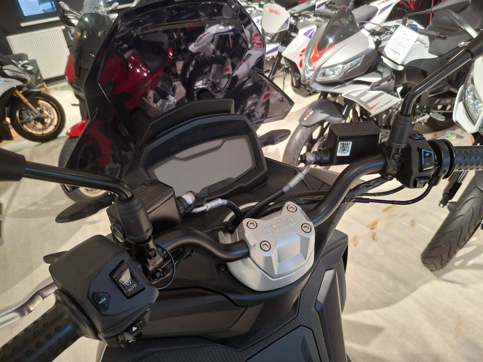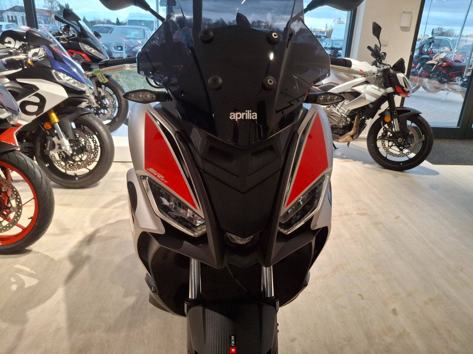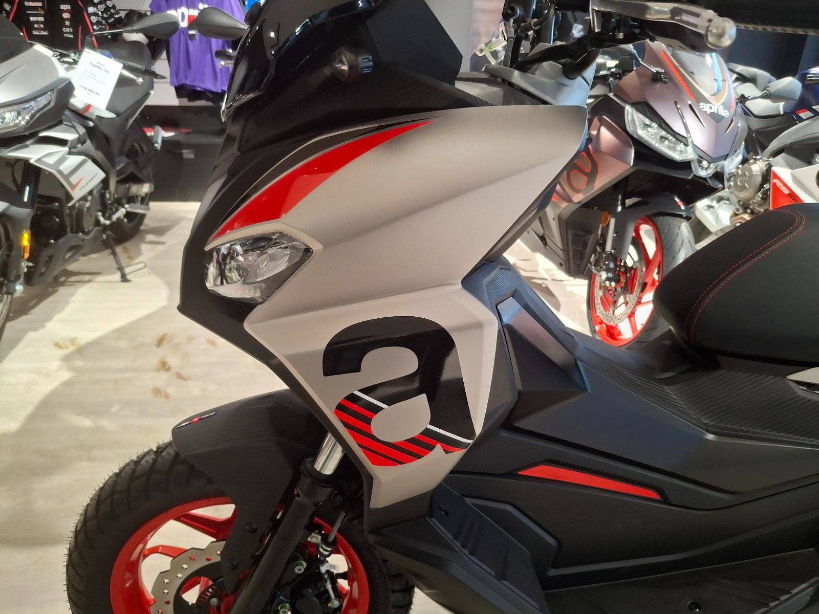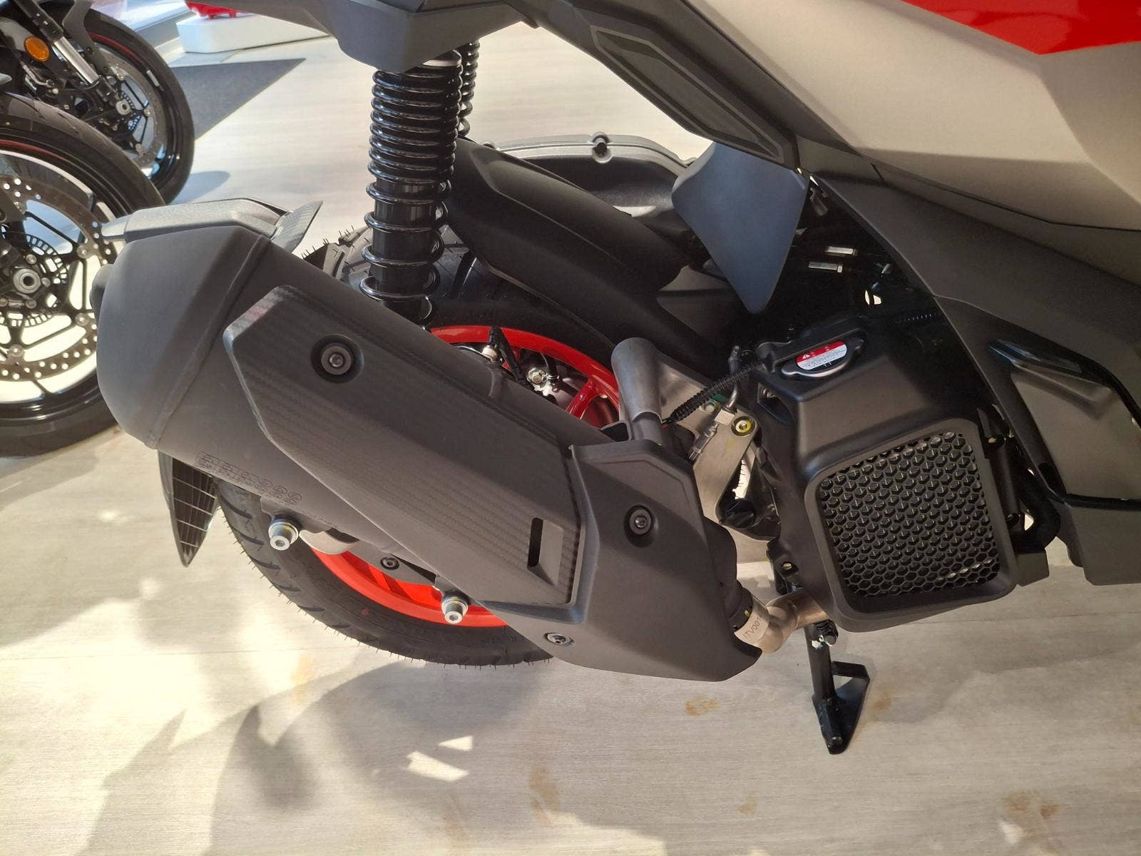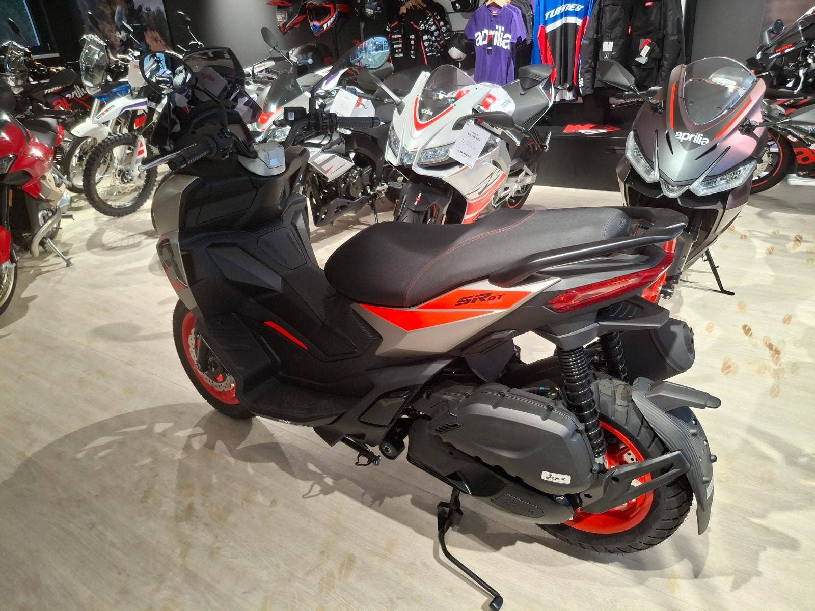 Výbava Aprilie SR GT Sport je plná exkluzivních detailů, které podtrhují její sportovní duši. Černý přední blatník, řídítka spolujezdce a spoiler v kombinaci s barvou předního štítu sahajícího až k zádi vytvářejí skvělý dynamický efekt. Matně černý středový tunel doplňují červené nápisy, zatímco červené ráfky kol a dvoubarevné černé sedadlo s červeným prošíváním podtrhují rozhodný charakter skútru. A konečně, na bocích štítu je velké písmeno „a“ jako Aprilia, doplněné červenými pruhy po stranách s logem SR GT u světlometů.