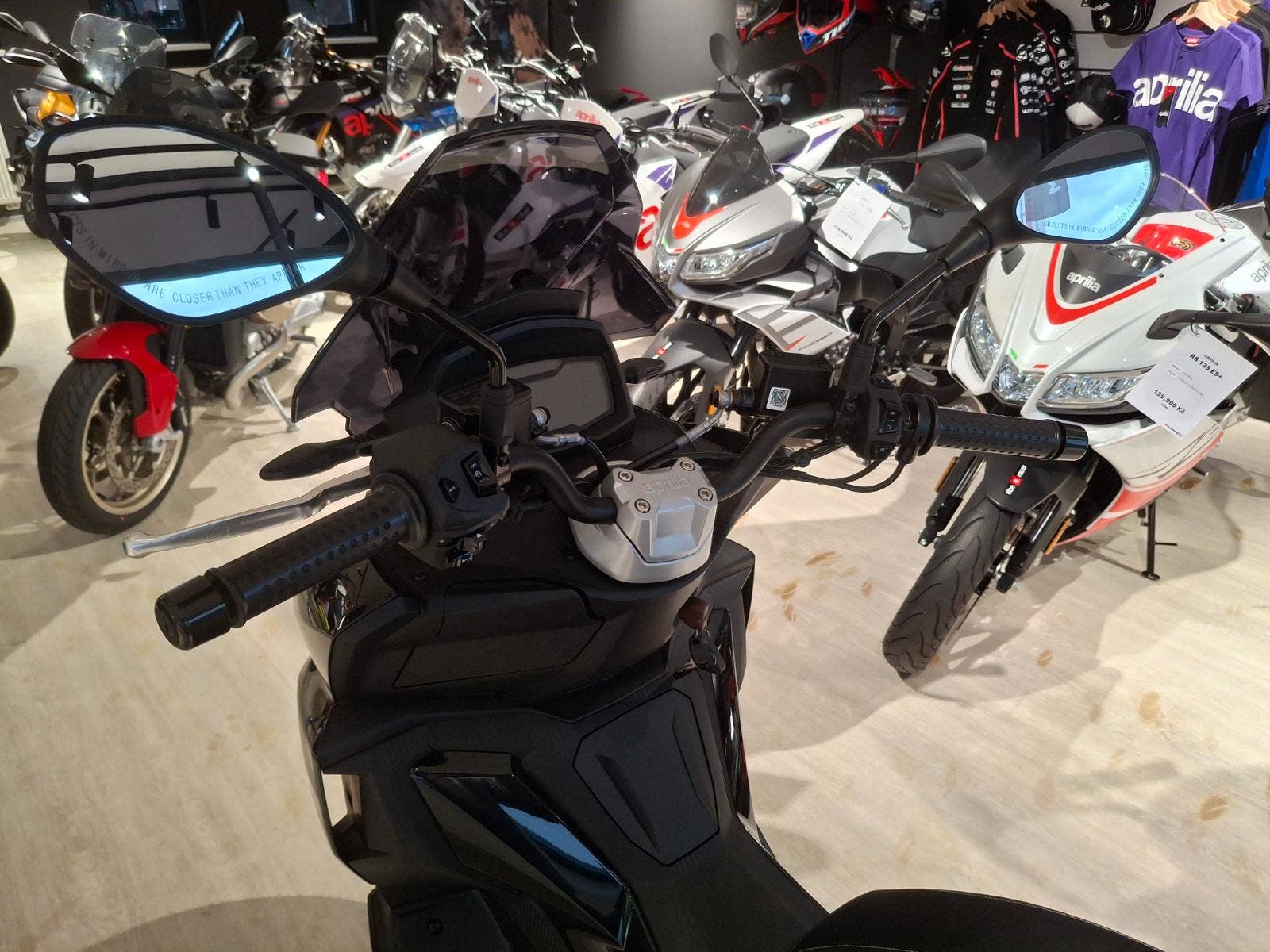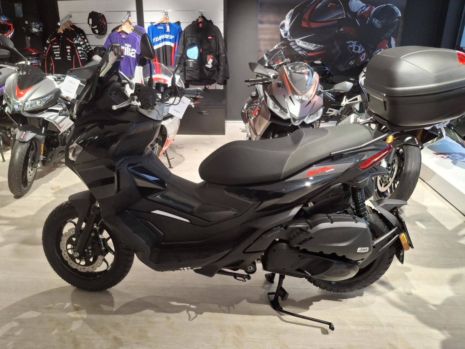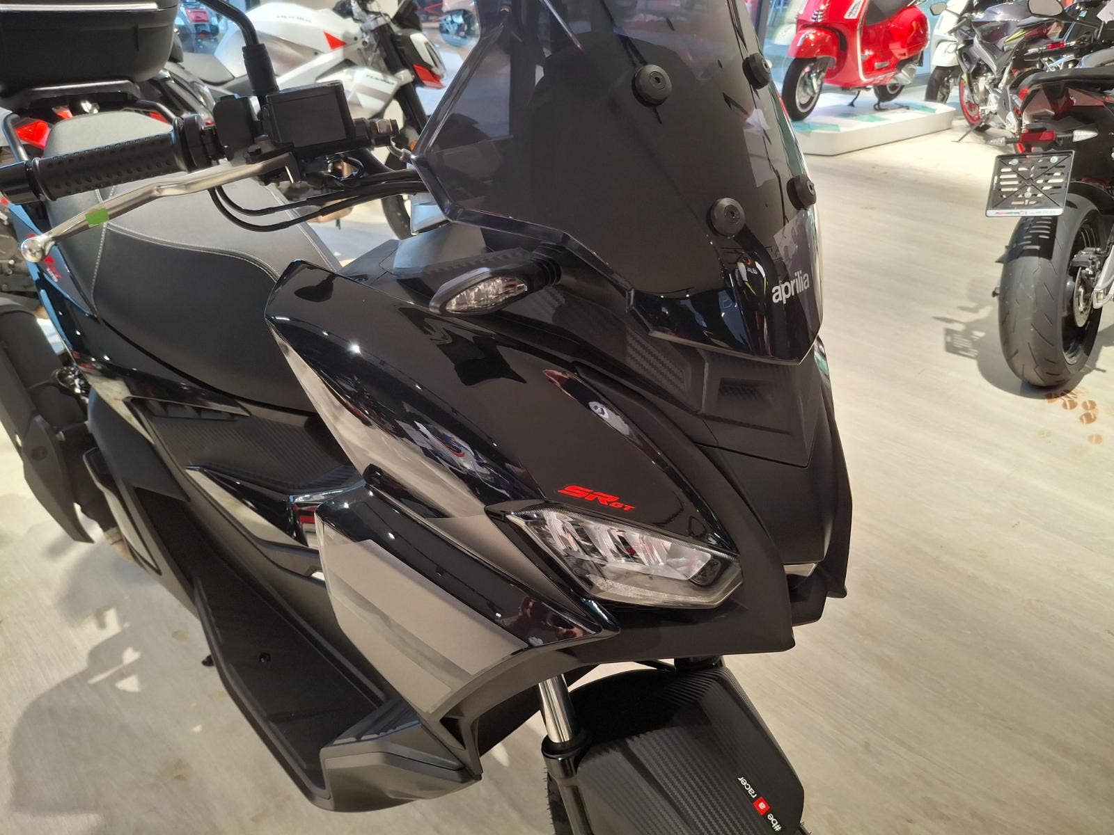 Výbava Aprilie SR GT je plná exkluzivních detailů, které podtrhují její sportovní duši. Černý přední blatník, řídítka spolujezdce a spoiler v kombinaci s barvou předního štítu sahajícího až k zádi vytvářejí skvělý dynamický efekt. Matně černý středový tunel doplňují decentní nápisy, zatímco černé ráfky kol a černé sedadlo s prošíváním podtrhují rozhodný charakter skútru.
