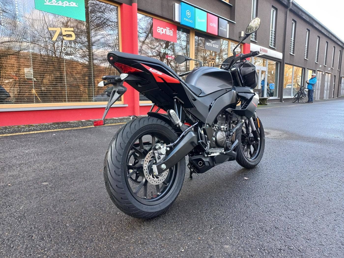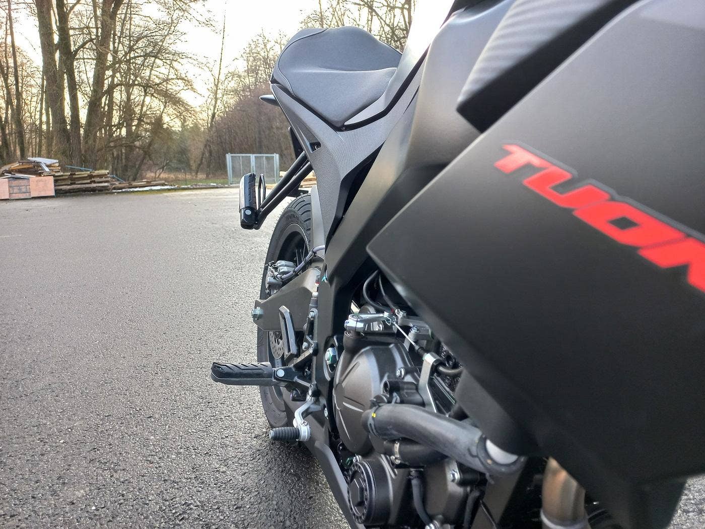 Tuono 125 má propracovaný podvozek, moderní motor E5+ a kompletní balík bezpečnostních prvků, včetně dvoukanálového ABS a kontroly trakce ve standardní výbavě.
