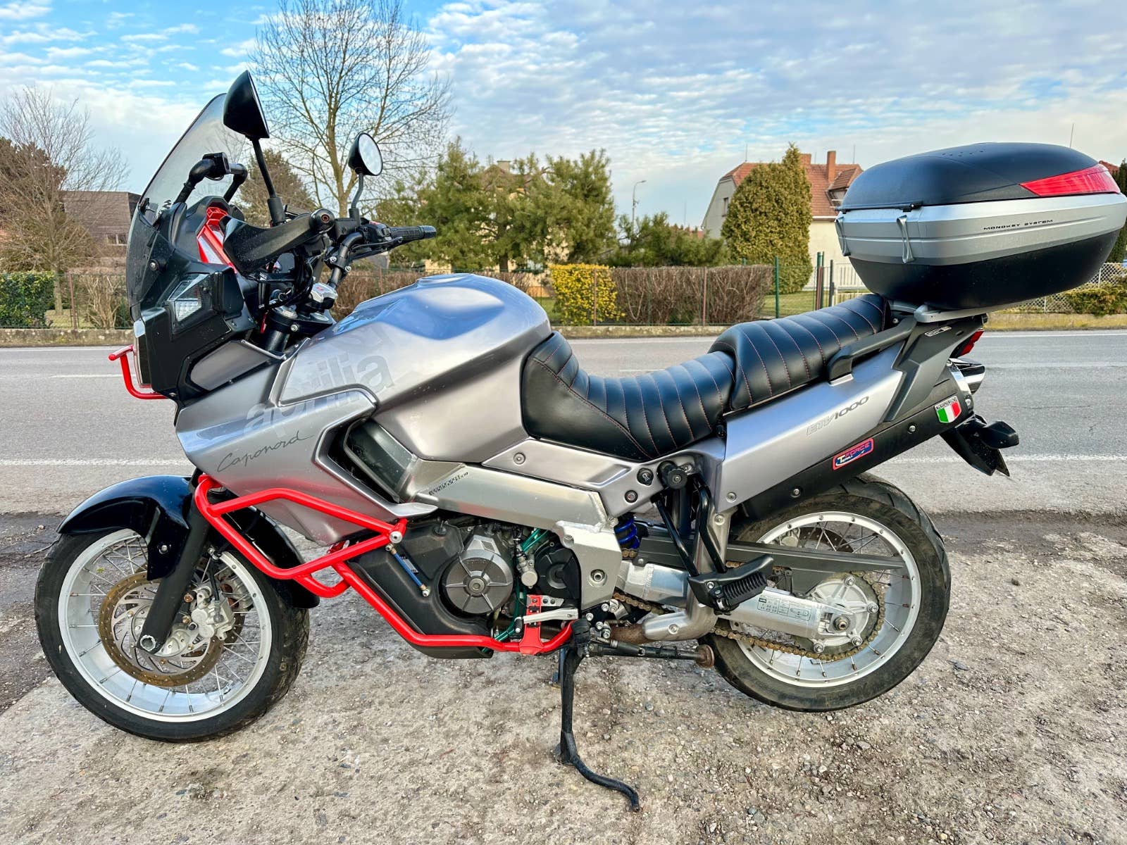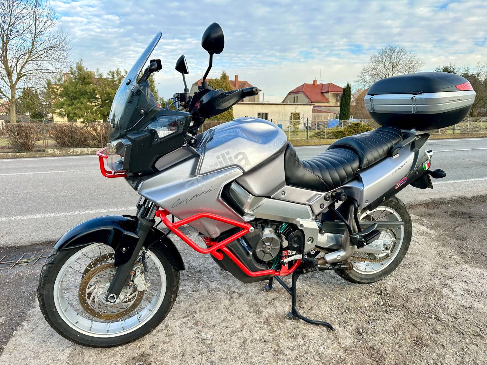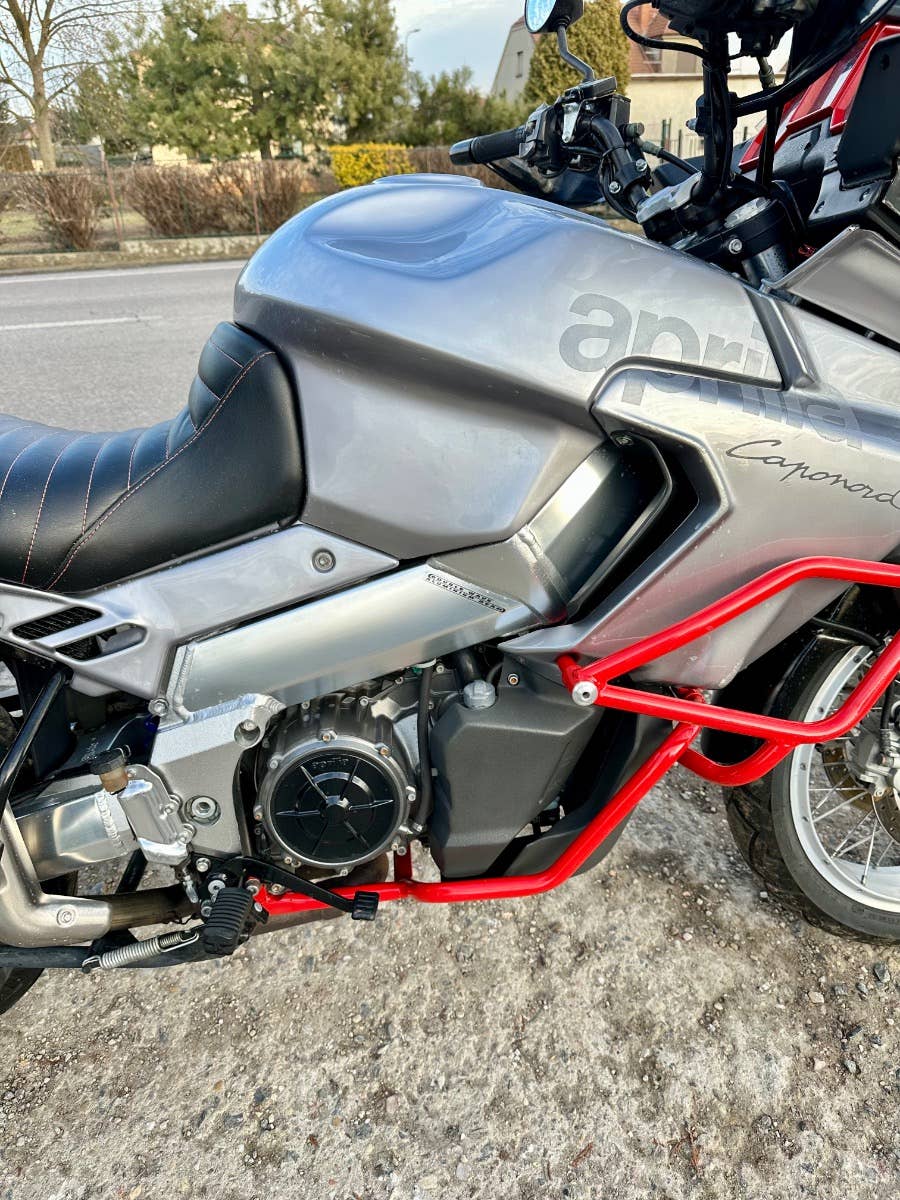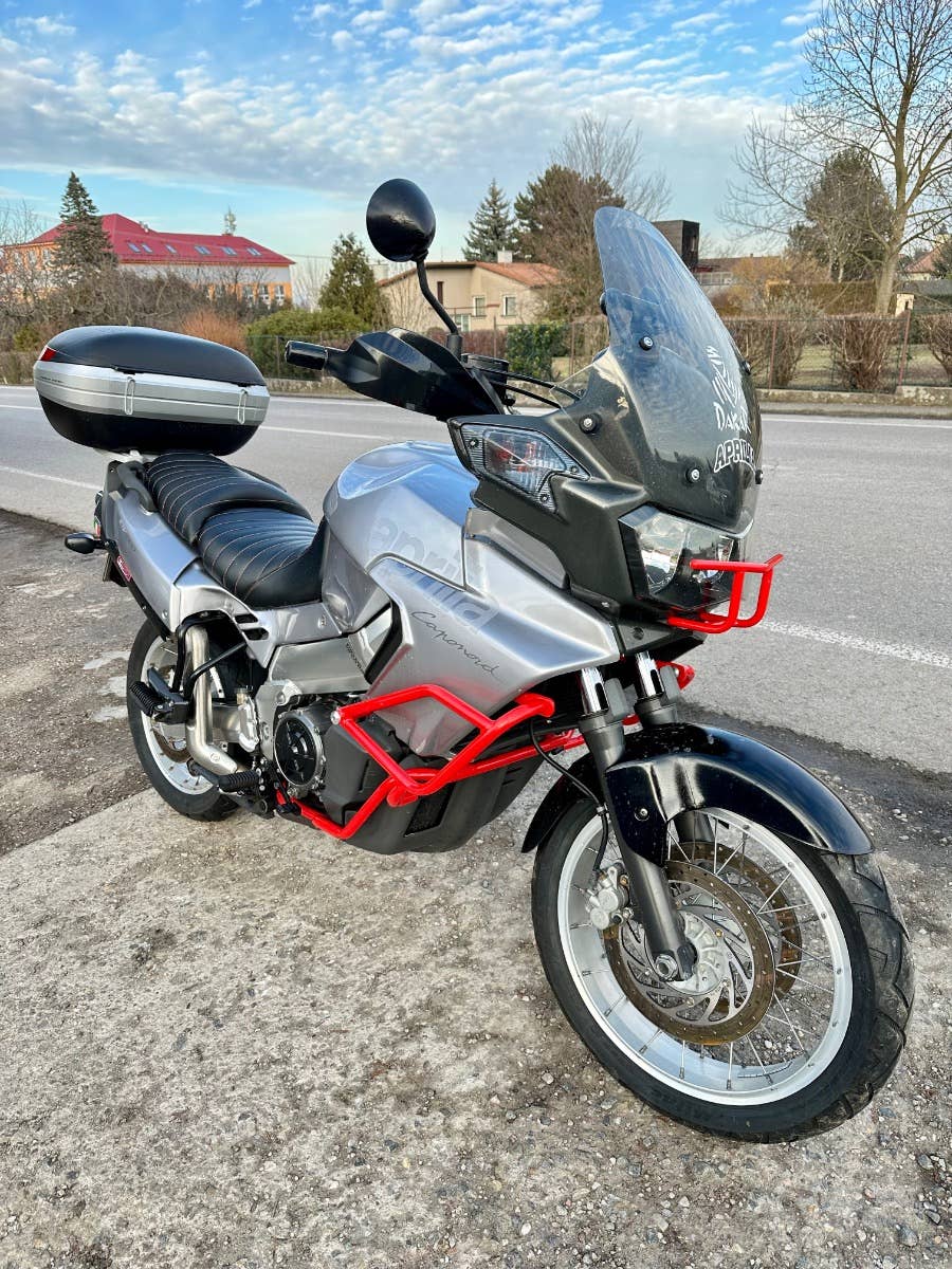 Aprilia Caponord 1000, 2001, najeto cca 43 tis km, cz TP, elektrika vyřešena - vyměněny konektory a regulátor dobíjení, svíčky, atd, horní topcase, přečalouněné sedačky, padací rám, centrální stojan, zánovní pneumatiky, na svůj rok zachovalý a udržovaný motocykl, možnost úvěru od Essoxu nebo Cofidis
