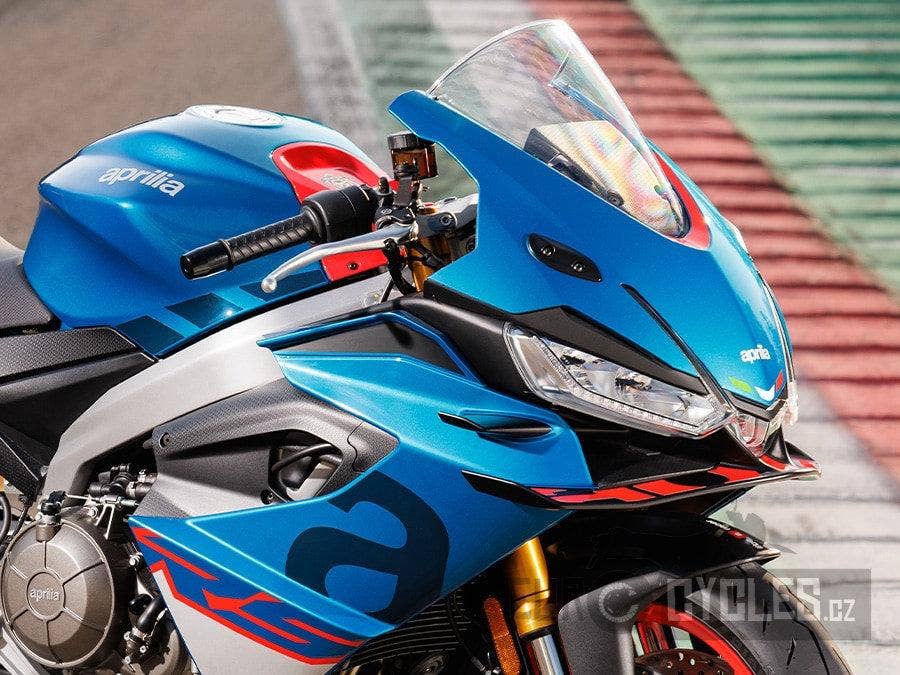 MOTOR Paralelní dvouválcový motor Aprilia skloněný dopředu, 4-taktní, kapalinou chlazený s vodním olejovým chladičem a výměníkem tepla, dvojité vačkové hřídele (DOHC) s tichým řetězem na pravé straně, čtyři ventily na válec.