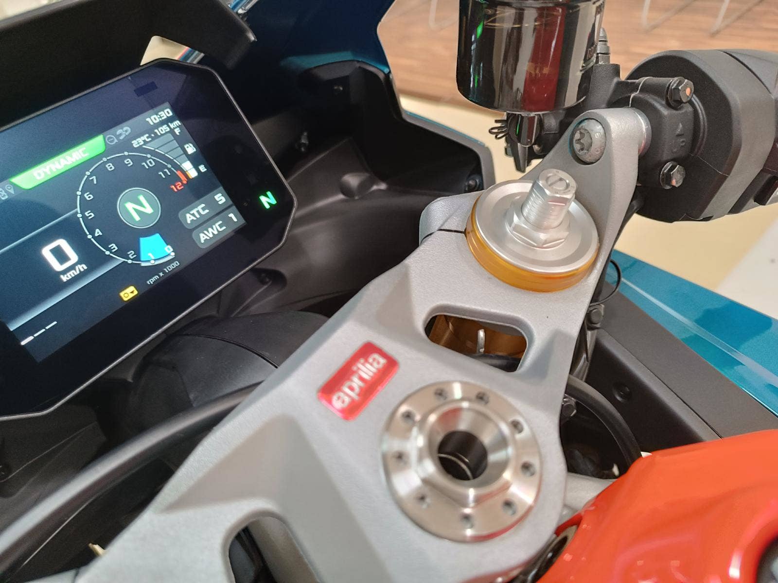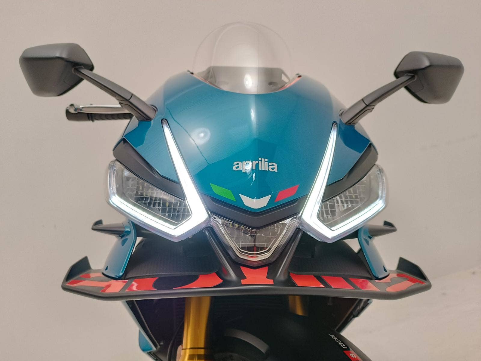 Full LED světlomety a směrovky se světelným podpisem. Lepený 5“ TFT přístrojový panel. Podsvícené ovladače. Systém APRC se 6osou inerciální jednotkou: (AEM), motorová brzda (AEB), náklonové ABS (3 mapy a zmírnění zdvihu zadních kol), kontrola trakce (ATC), systém anti-wheelie (AWC), Aprilia Launch Control (ALC), 5 jízdních režimů. Tempomat (ACC). Aprilia Quick Shift (AQS). Kovové opletené brzdové hadice