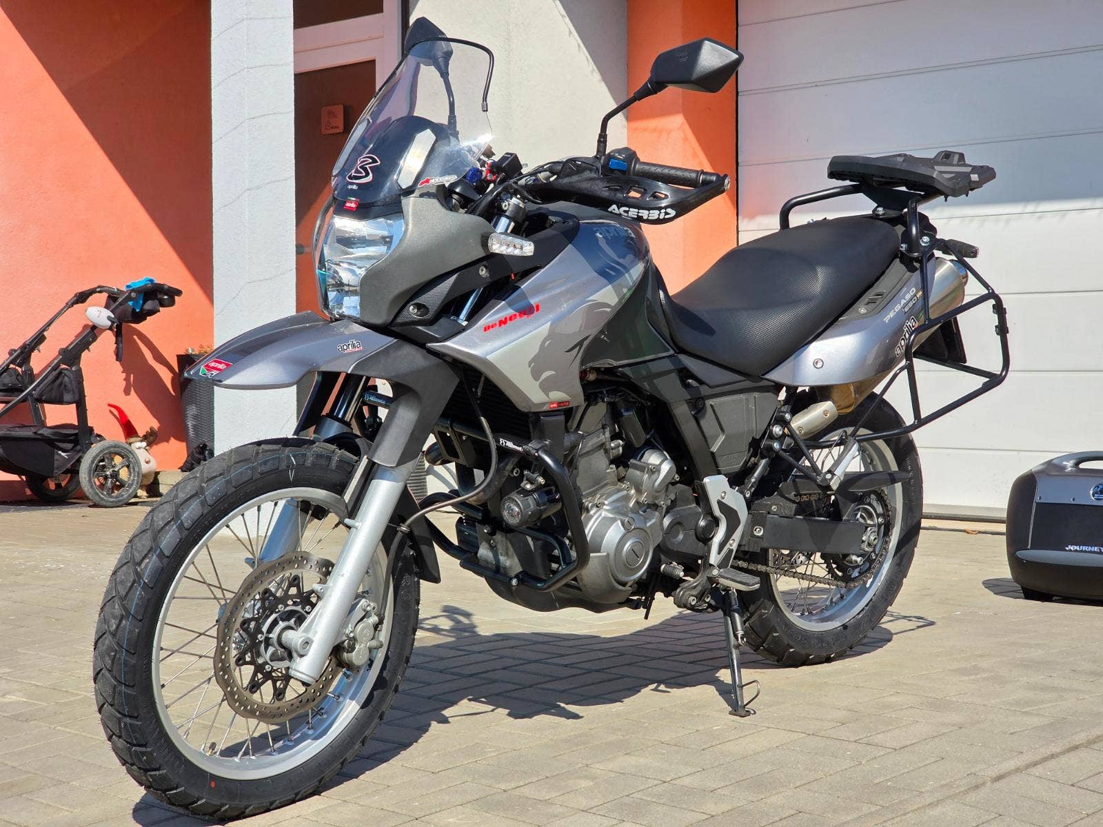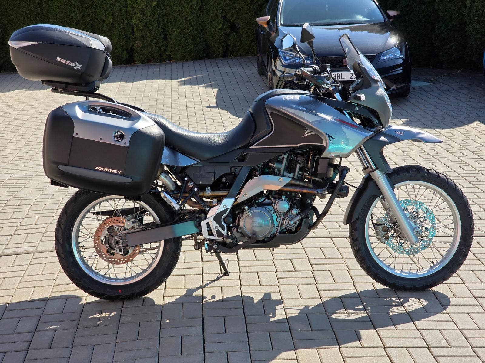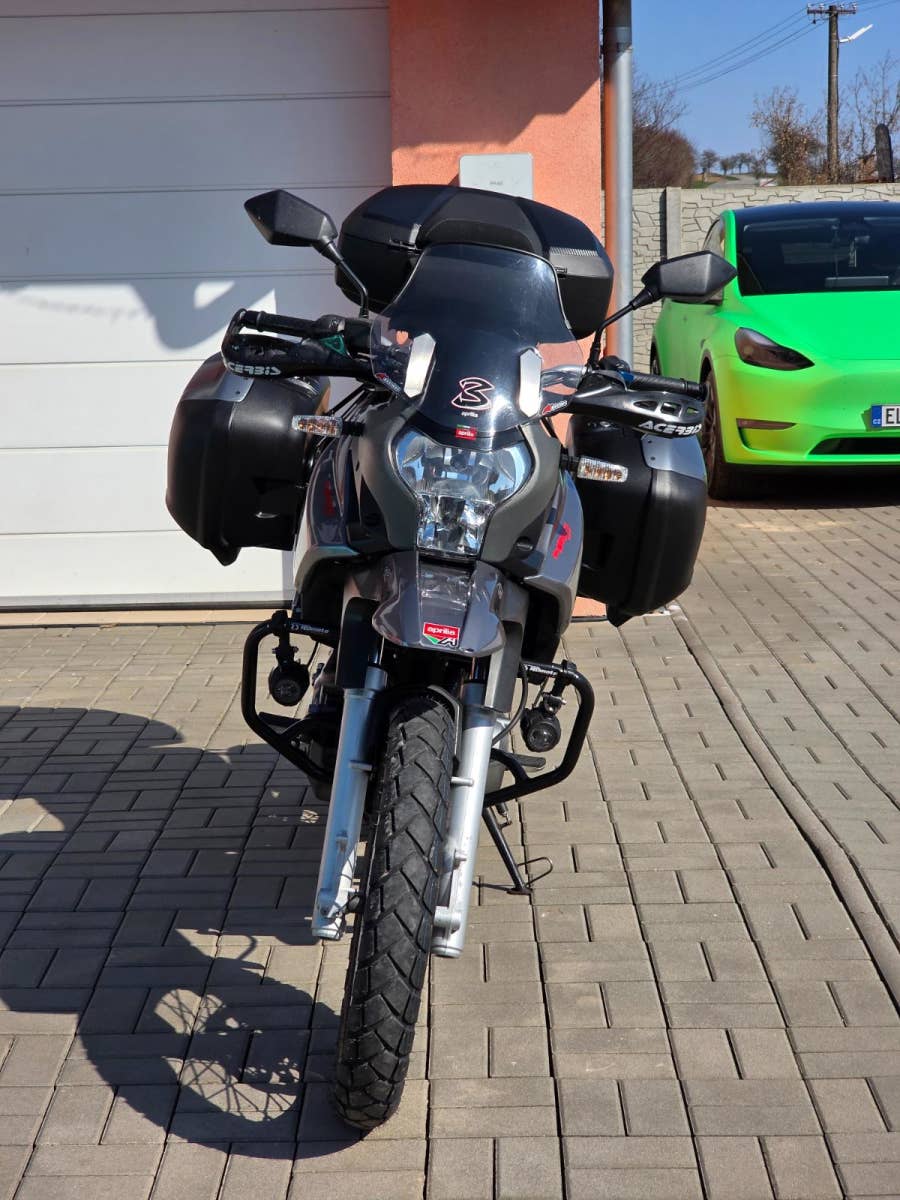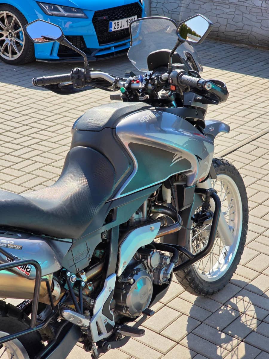 Prodám Aprilia Pegaso 650 Trail, rok výroby 2007, najeto 34.700 km, výkon 35 kW (možno s řp. A2), objem motoru 660cm3 (motor Yamaha XT 660 Tenere), STK platná do 9/2028. Motorka dovezena z Itálie v roce 2020 s nájezdem 22.800 km a od té doby ježděna v ČR. Pravidelný servis u Buček moto. Poslední servis 10/2025 v 34.000 km (výměna oleje 15w50 a filtru, diagnostika, seřízení ventilových vůlí, výměna chladící kapaliny, výměna svíčky, celková kontrola, výměna přední i zadní pneumatiky Metzeler Tourance AZ). Celkově je motorka ve velice hezkém zachovalém originálním stavu, nehavarovaná, nelakovaná. Na motorce navíc dokoupené doplňky za bez mála 40.000Kč a to boční kufry Hepco Becker Journey 42 (koupeno 9/2025) včetně nosičů (18.000Kč), zadní kufr Shad SH58X (7.000Kč), padací rámy RDmoto (4.500Kč), mlhová světla (4.500Kč), chrániče rukojetí Acerbis (2.000Kč), nabíječka Interphone USB-A, USB-C které umožňuje dobíjet i baterii v motorce (2.300Kč). Veškeré příslušenství je v ceně motorky.