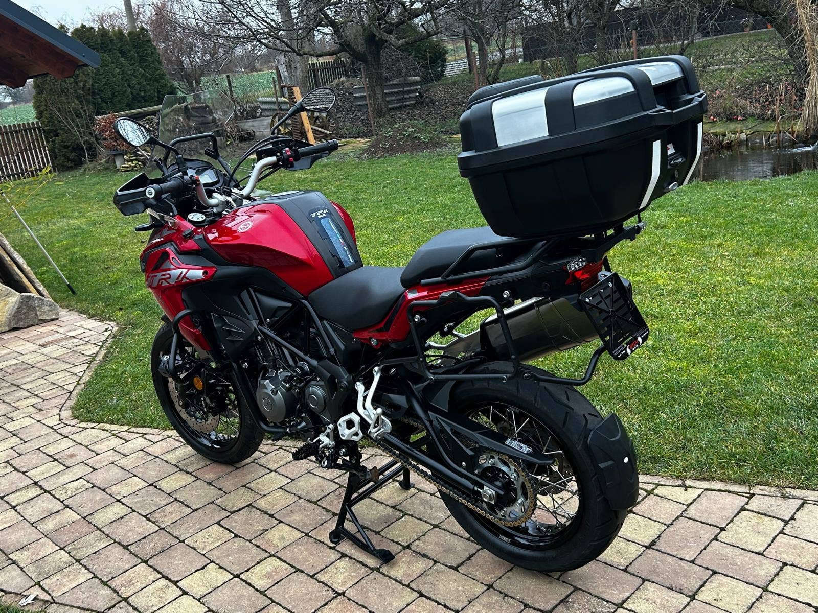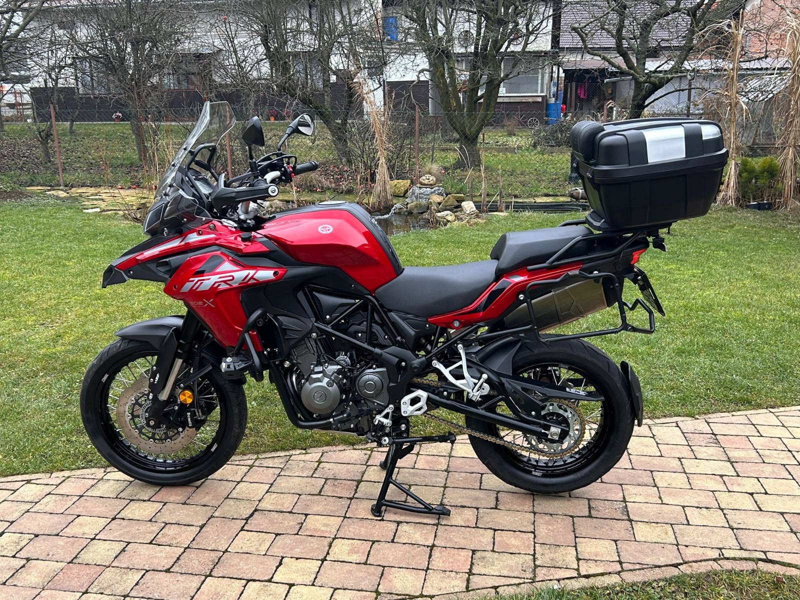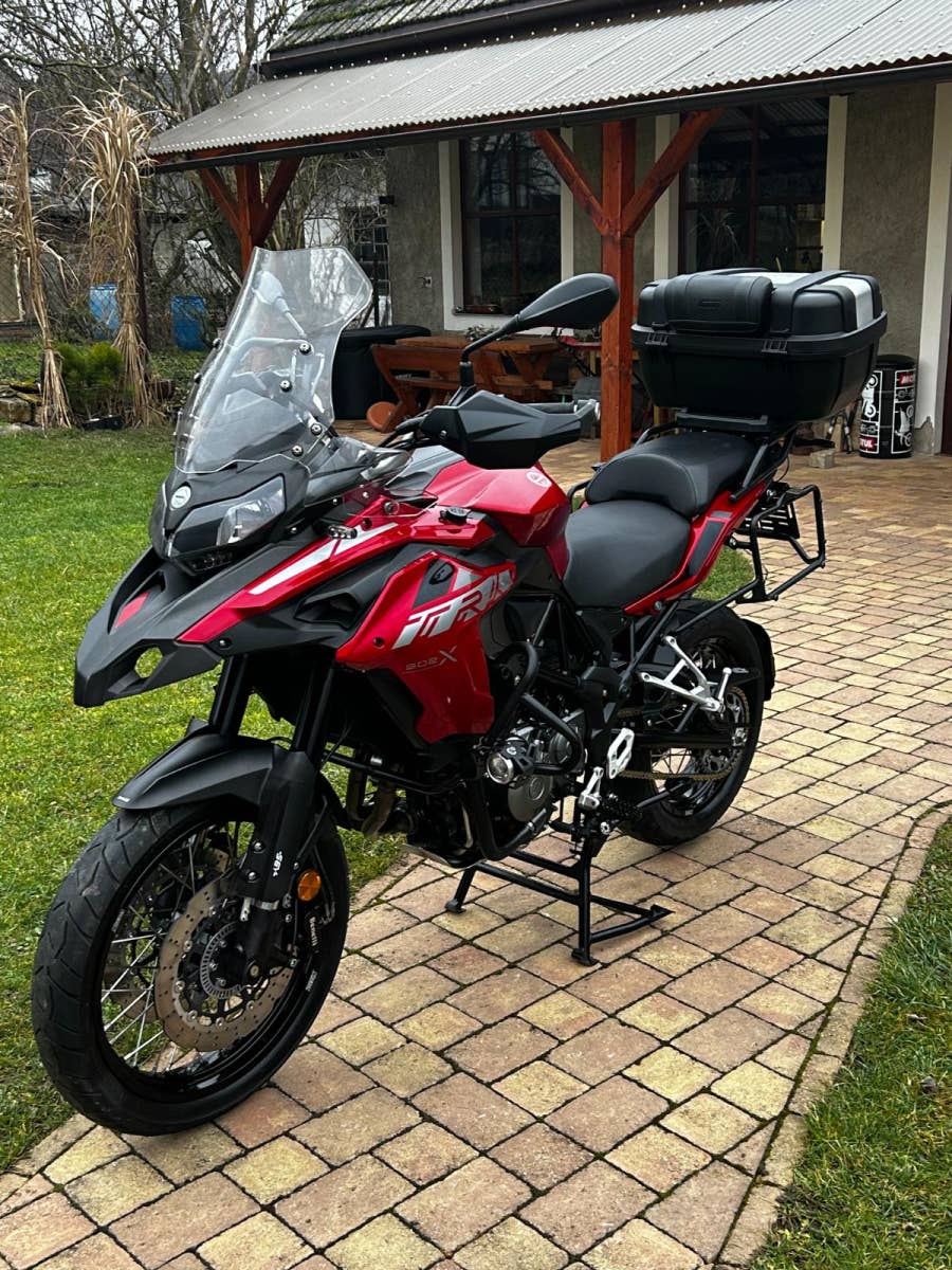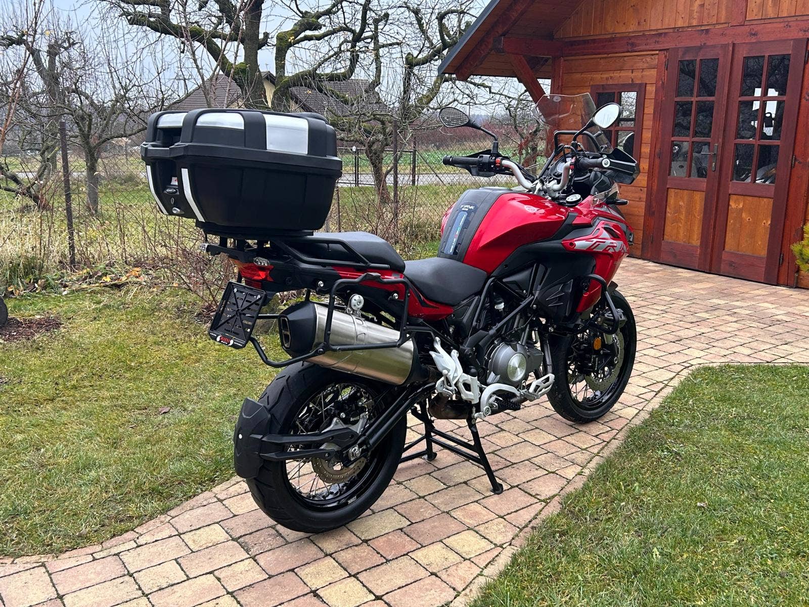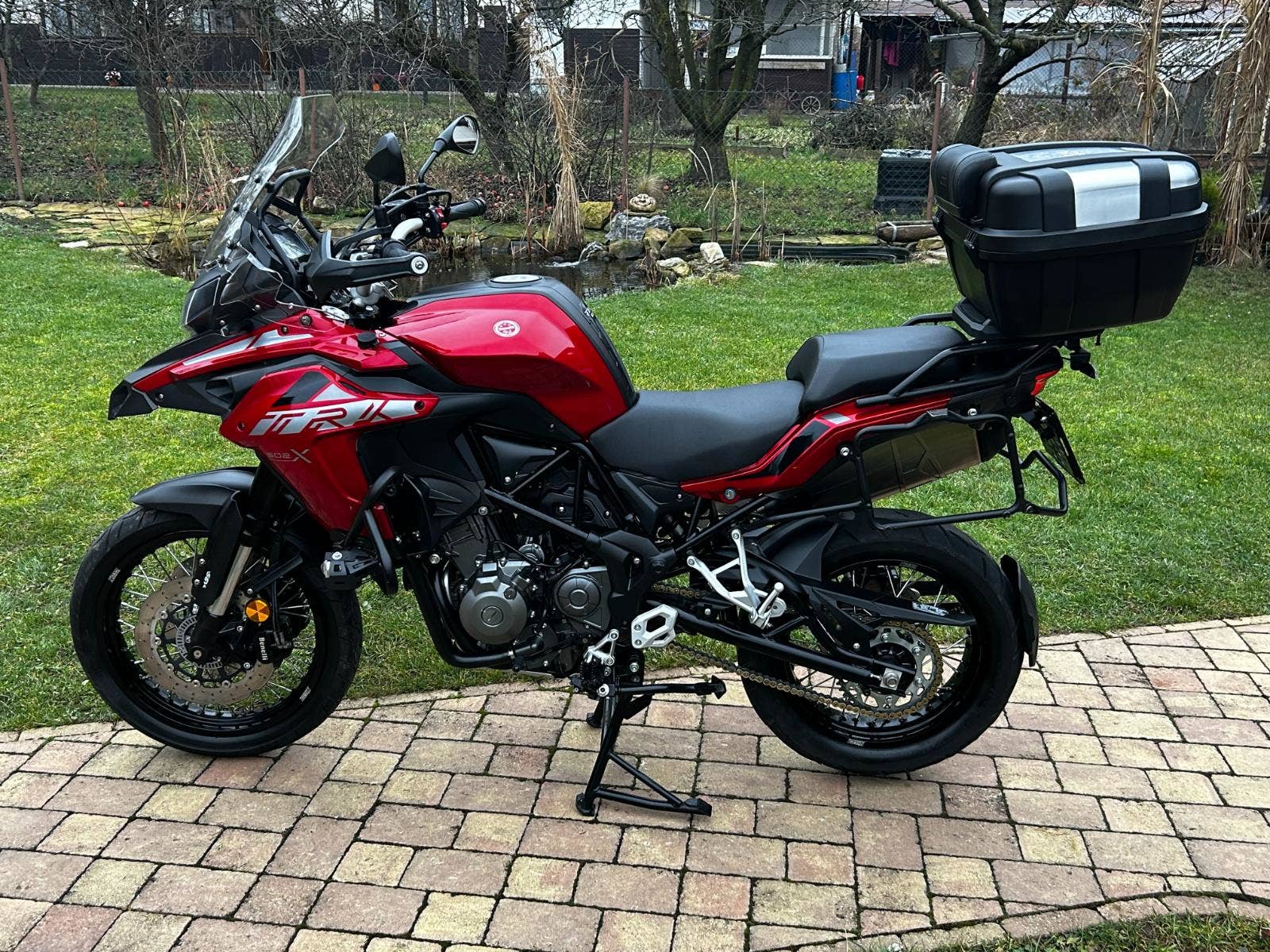 Benelli TRK 502X v super originálním stavu. Nyní po servisu u nás. Relativně nízký nájezd kilometrů, žádné oděrky, ani škrábance. Doplněno o hlavní stojan, blastery, padací rámy, tři kufry GIVI v celkové hodnotě 20 tis Kč. Dovoz z Itálie.