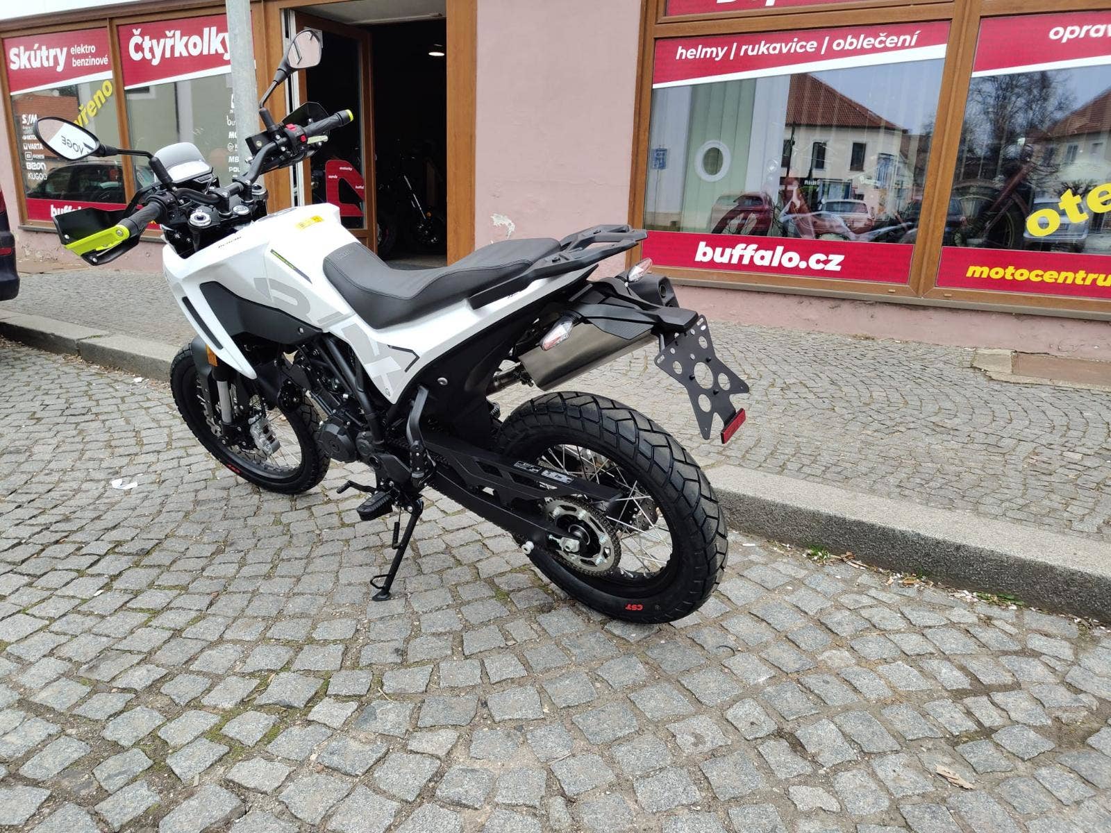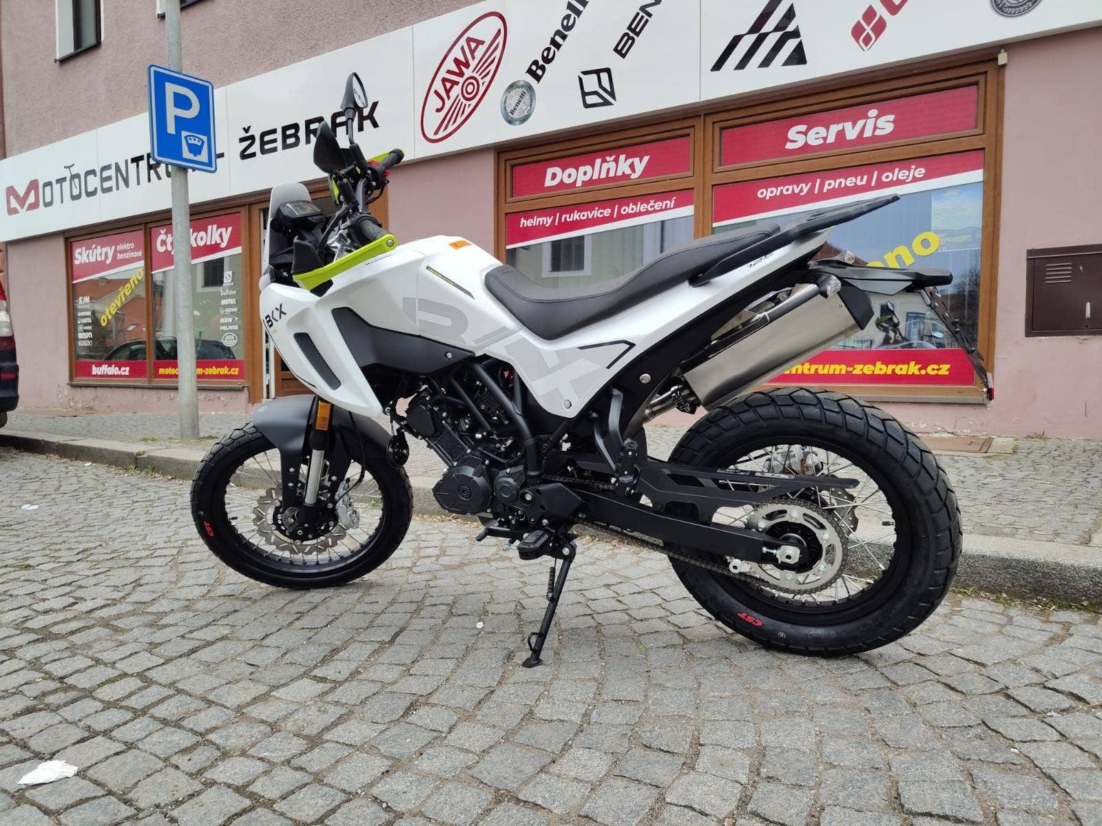 Novinka na prodejně Motocentrum - Žebrák, motocykl Benelli 125 BKX, r.v. 2026 obsah 125 CCM/ 11 kW, terenní motocykl v moderním pojetí s čistými liniemi, bílá perleť, výrazné kryty rukojetí, nastavitelné tlumiče, LED světlomety, 19" pření kolo, Možnost odpočtu DPH.