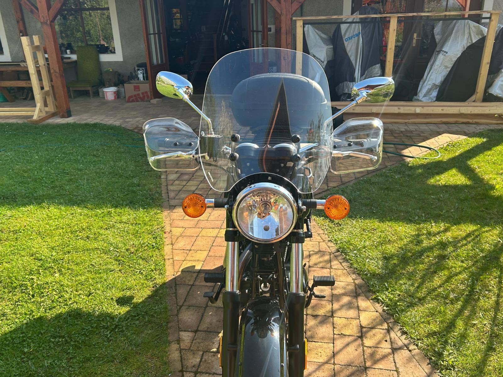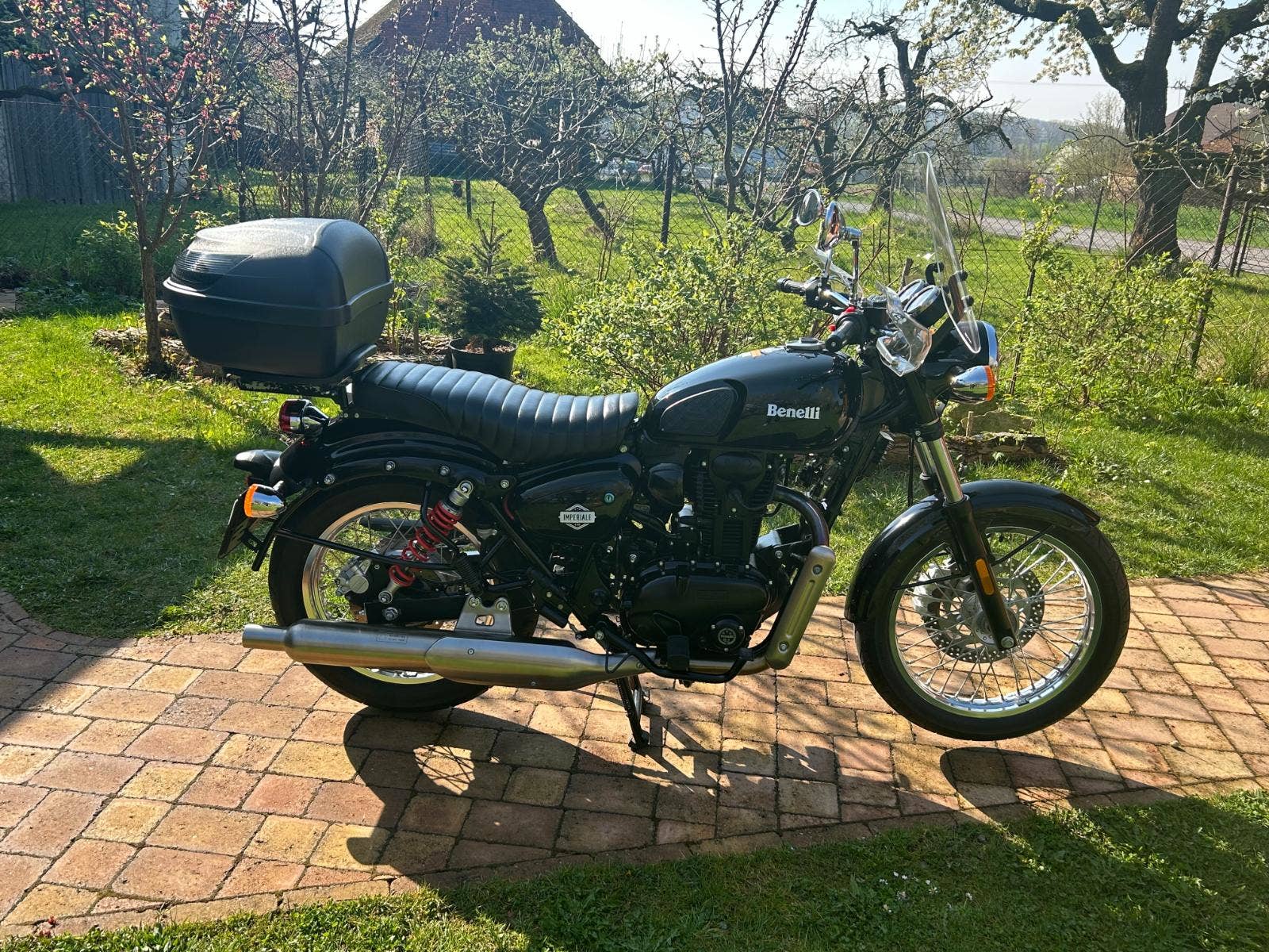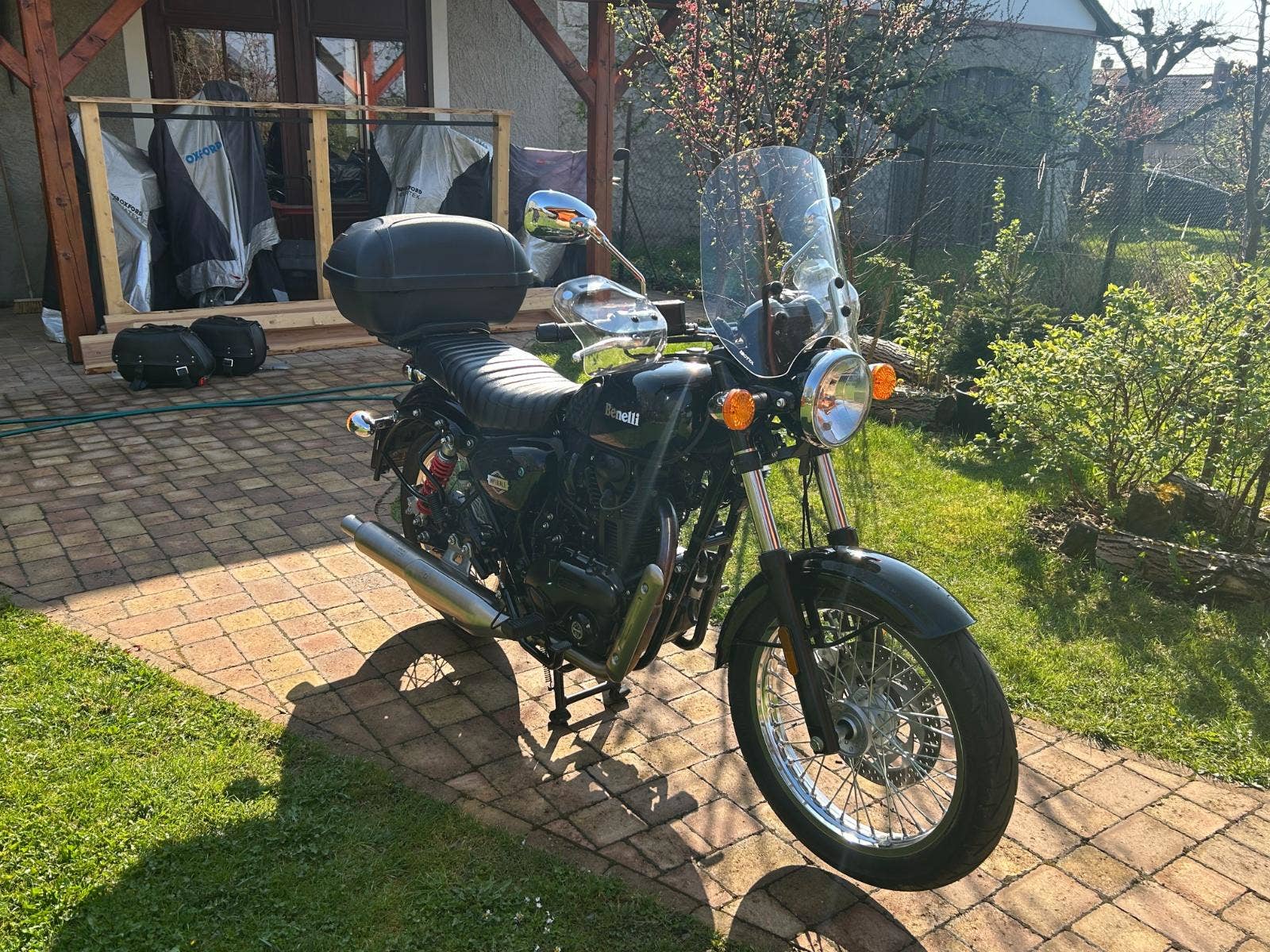 Nabízíme Benelli Imperiale v pěkném stavu, po servisu u nás. Malý nájezd km, původ ČR, s velkým množstvím doplňků: vyšší plexi, blastry, nosič a kufr, boční brašny, nastavitelné zadní tlumiče YSS, přídavné stupačky.
