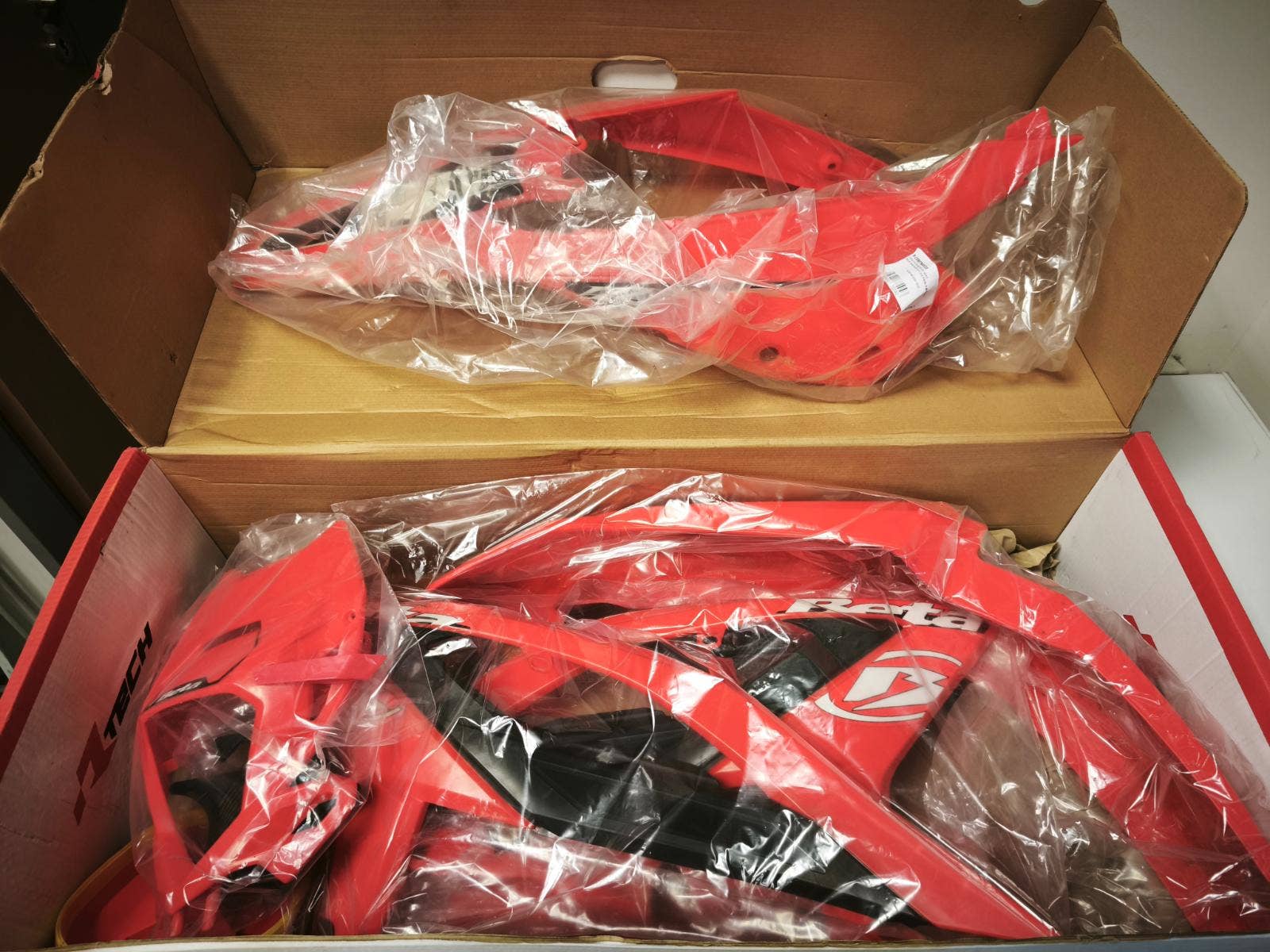 Na motocyklu jsou zcela nová kompletní kola a pneu, k motocyklu je sada plastů navíc.