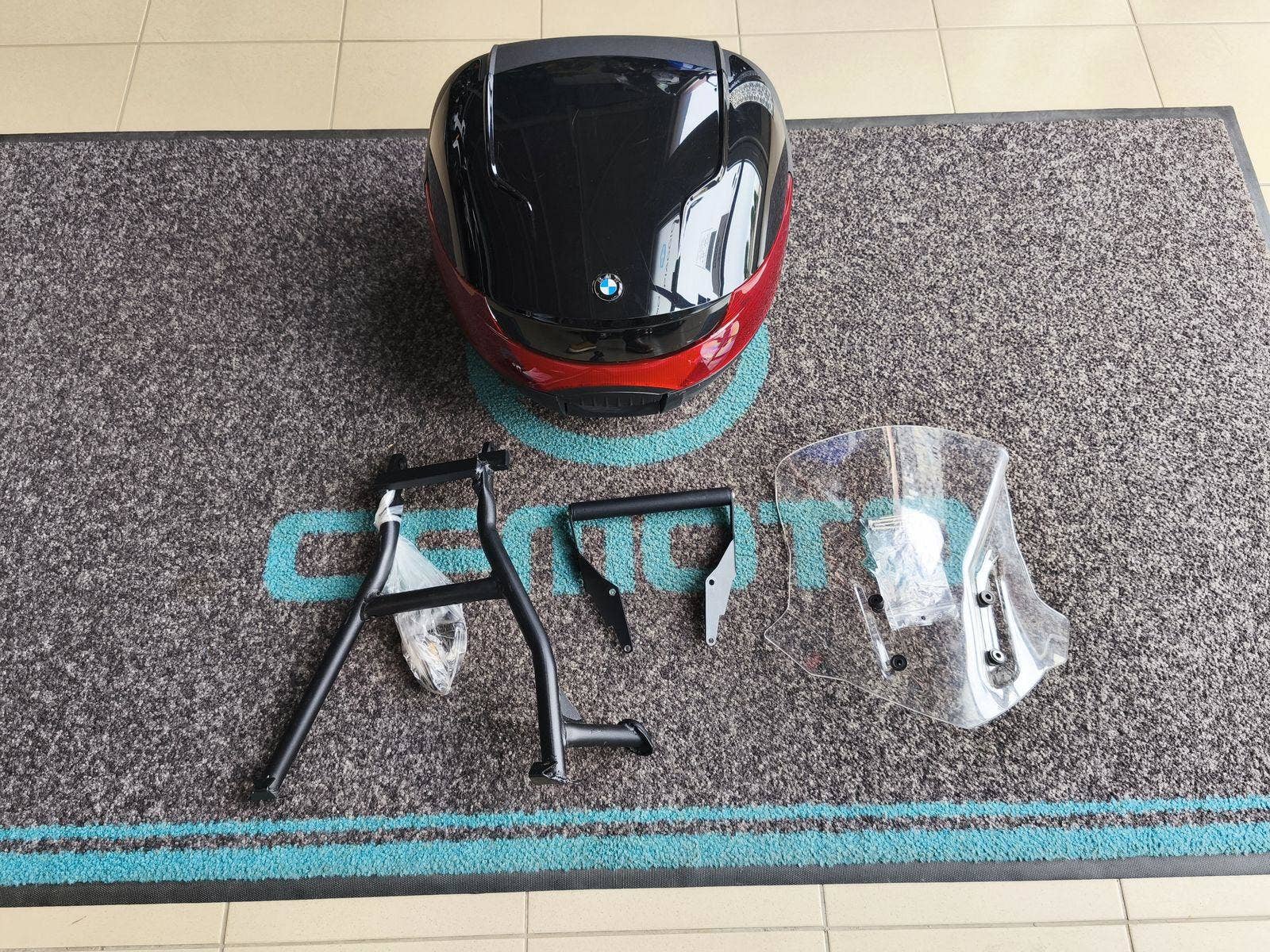 Původ ČR, motorka ve stavu nové. Mřížka chladiče, centrální stojan, originální BMW topcase, standardní a zvýšené plexi, rozšiřovací nástavec brzdového pedálu, hrazda pro držák telefonu/ navigace, blastery. Odpočet DPH!