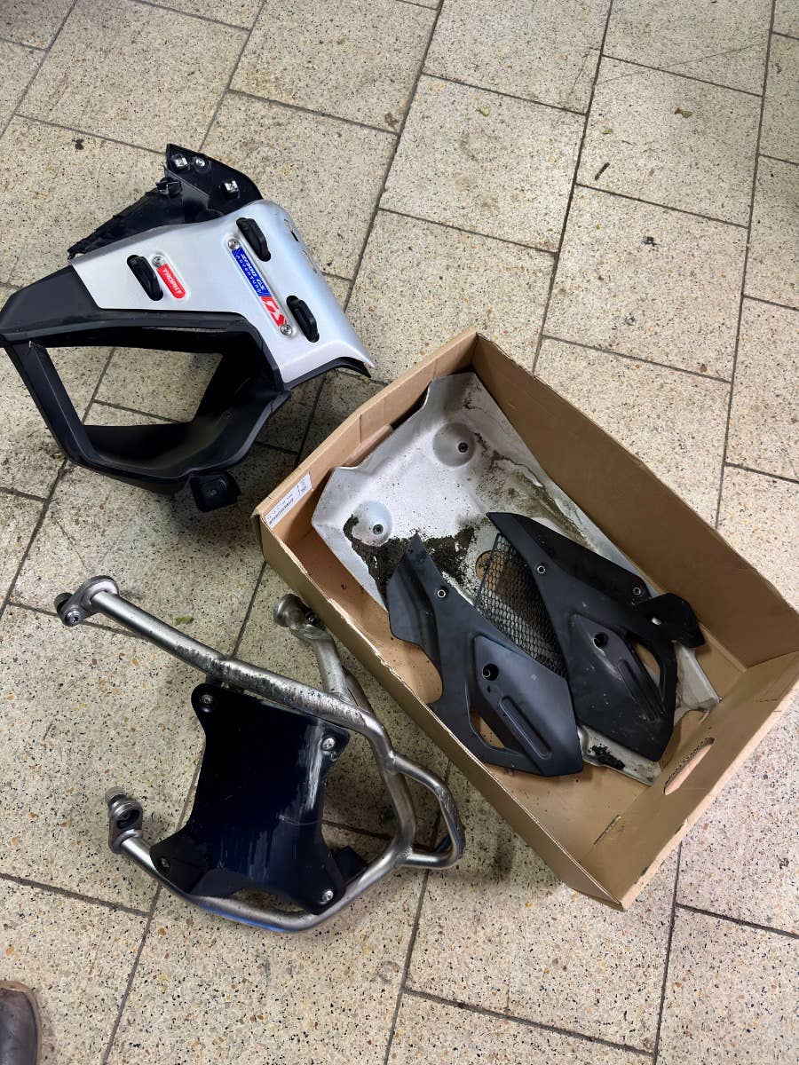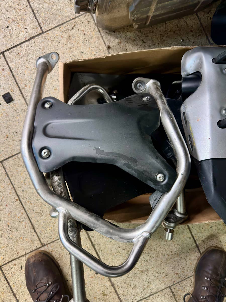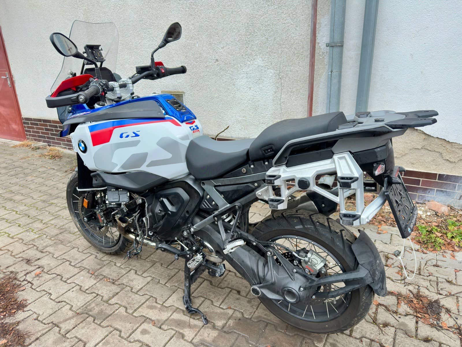 Bmw r 1300 gs Adventure, trophy, 2025/7, najeto cca 4 tis km, dovoz Sk od prvního majitele, pořizovací cena 28900 eur 7/2025, padací rám, centrální stojan, nosiče kufrů, keyles, poškození viz foto - přední levá vidlice, hlava válce - demontována poškození od padacího rámu, chladič, boční plast, víko motoru, azd, možnost úvěru od Essoxu nebo Cofidis