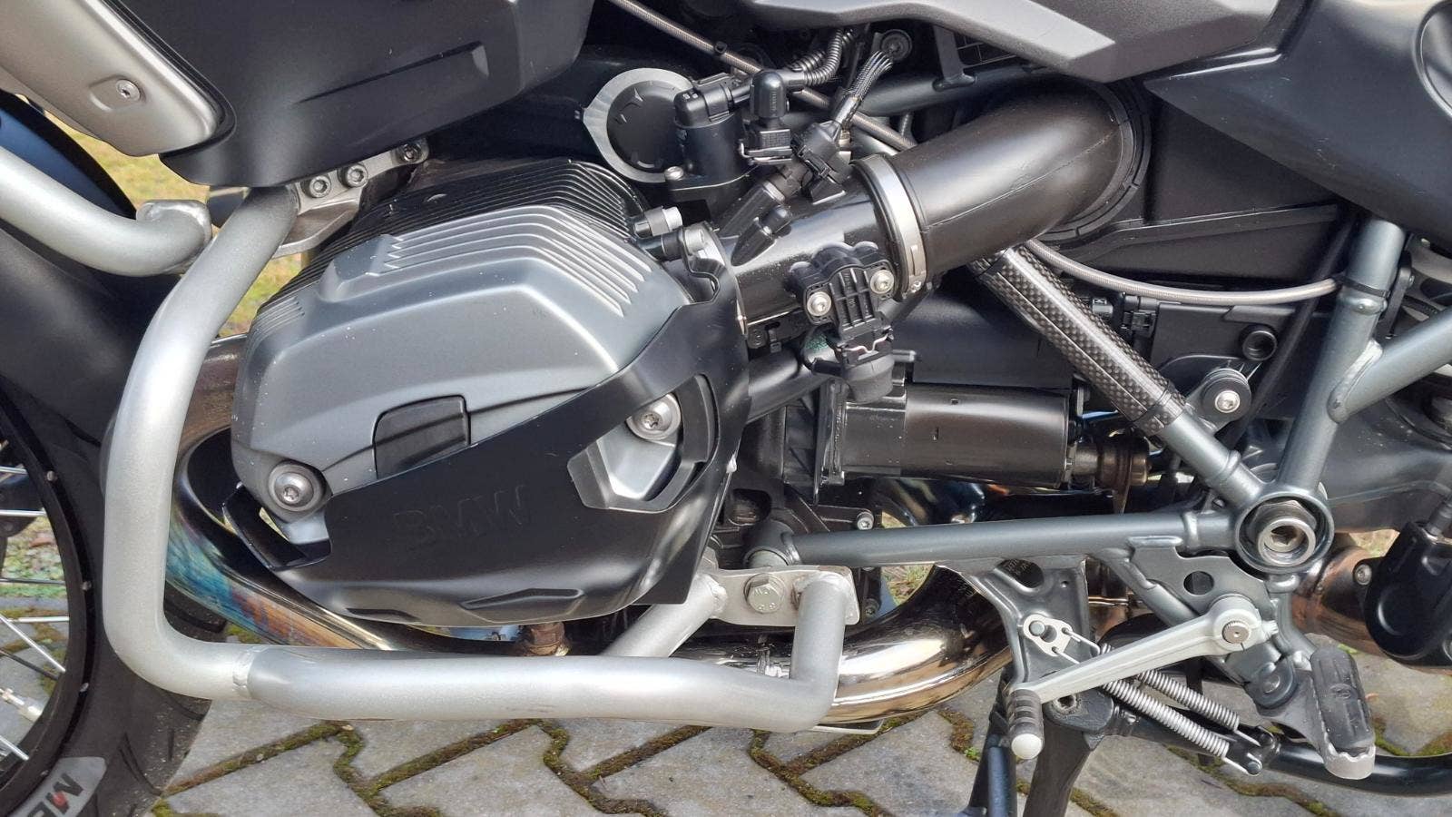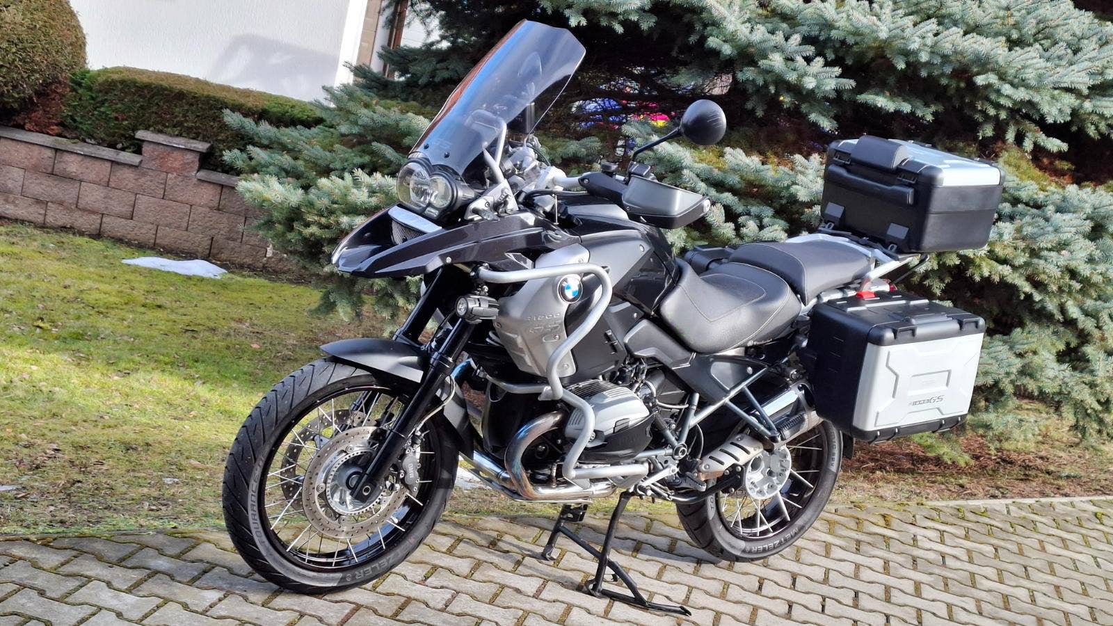 K dispozici bude po 15.2. 2026. Velmi zachovalý motocykl po 1. majiteli (58 let), pravidelně servisovaný (kompletní historie faktur za servisní práce od r. 2013), dovezený z Německa. Kilometry doloženy servisní knížkou a protokoly z STK. V 77.459 km byl udělán poslední servis (11./2024). Výbava: Vyšší touring kouřové plexi, kryt na olejový chladič, přídavná světla, rampa s aktivním držákem na navigaci BMW Navigator V. a VI., Wunderlich sedlo, podkova na nádrži na tankvak, elektronicky stavitelný podvozek ESA, ABS, imobilizér, vyhřívané rukojeti, nosič bočních Vario kufrů, palubní počítač, ASC (kontrola trakce), LED blikače, LED zadní světlo, boční podsedlové kryty rámu Wunderlich, padací rám spodní i horní, boční kufry Vario BMW, nosič na Top Case Vario. Horní kufr BMW Vario s opěrkou je za příplatek. Německý TP s odhláškami + COC list pro bezproblémové přihlášení v nejlevnější verzi. Servisní knížka s uživatelským manuálem, 2x klíč s čipem, faktury za servis, certifikáty k doplňkům.