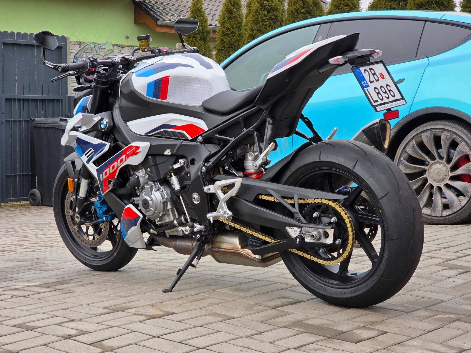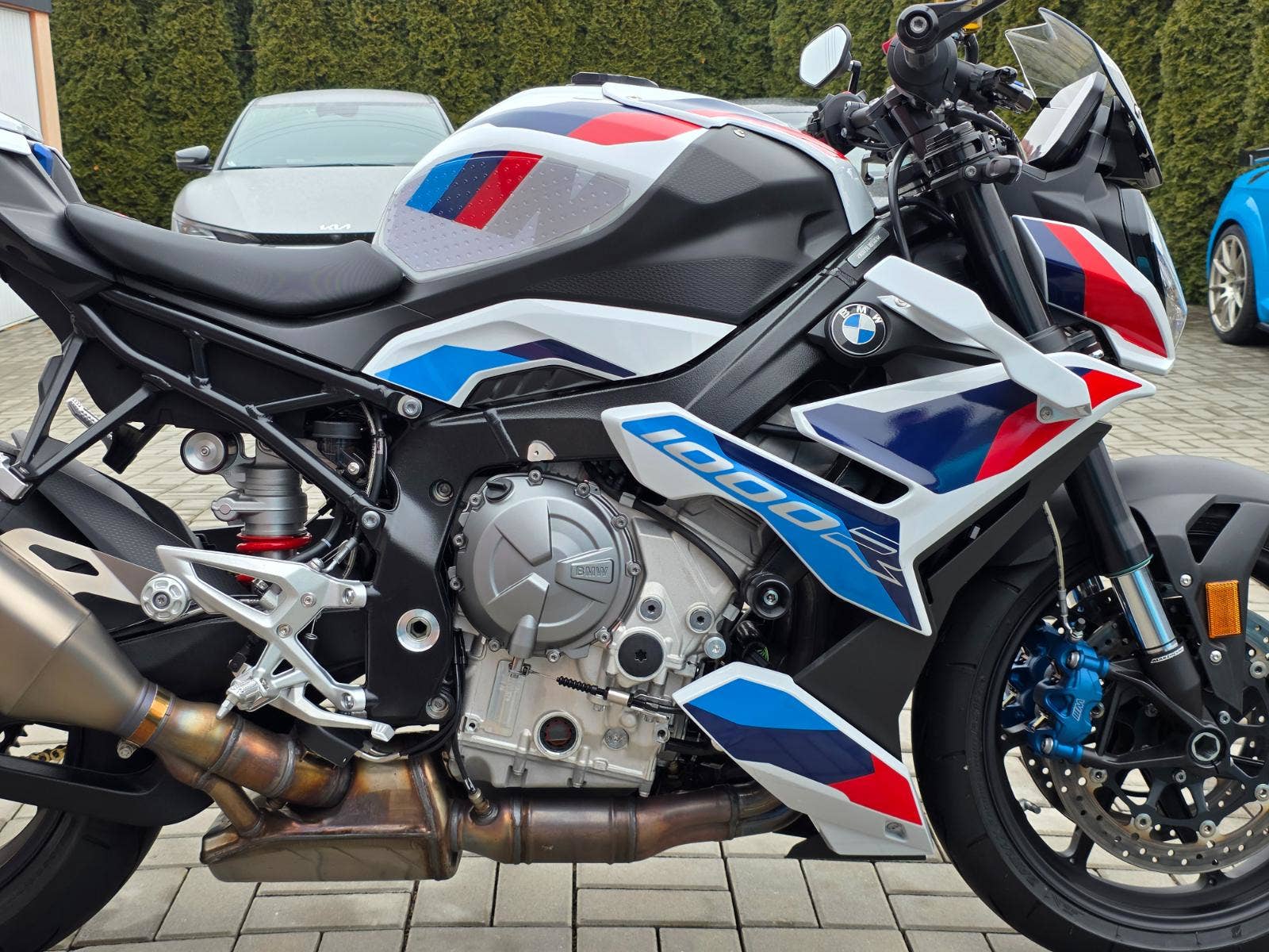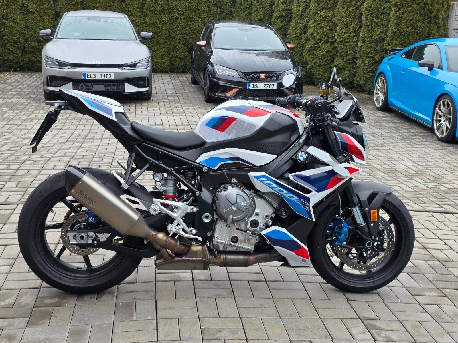 Prodám BMW M1000R, rok výroby 2024, najeto pouze 1.425 km, výkon 154 kW (210 koní), objem motoru 999cm3, STK platná do 8/2030. Motorka zakoupena u autorizovaného prodejce BMW Invelt Praha, pravidelný servis v BMW Renocar Brno. Jeden majitel. První servis po zajetí a druhý servis 9/2026 v 1.424 km takže připraveno na sezónu. V plné tovární záruce do 8/2029. Celkově motorka ve stavu nové, nehavarovaná, nelakovaná, neodřená, ještě originál fólie na displeji. Ve výbavě titanový výfuk Akrapovič, quickshifter, el. tlumiče Marzocchi, M brzdiče Nissin, nastavitelný tlumič řízení, nastavitelné jízdní režimy, nastavitelná trakce i ABS, tempomat, vyhřívané rukojeti, nastavitelné lámací M páčky, LED světla i blinkry. Navíc oproti základní výbavě paket sedačky spolujezdce, sportovní štítek, kryt sedačky spolujezdce, prodloužená záruka na 5let, taška na nádrž s podkovou SW Motech (4.000Kč), padací protektory Rizoma (5.000Kč), boční polep nádrže protiskluzový (1.500Kč), kryty chladičů BMW (1.500Kč), pružiny přední a zadní pro 110Kg jezdce, originální pružiny na cca 80Kg k motorce (19.000Kč). Celková původní cena motorky včetně doplňků 625.000Kč.