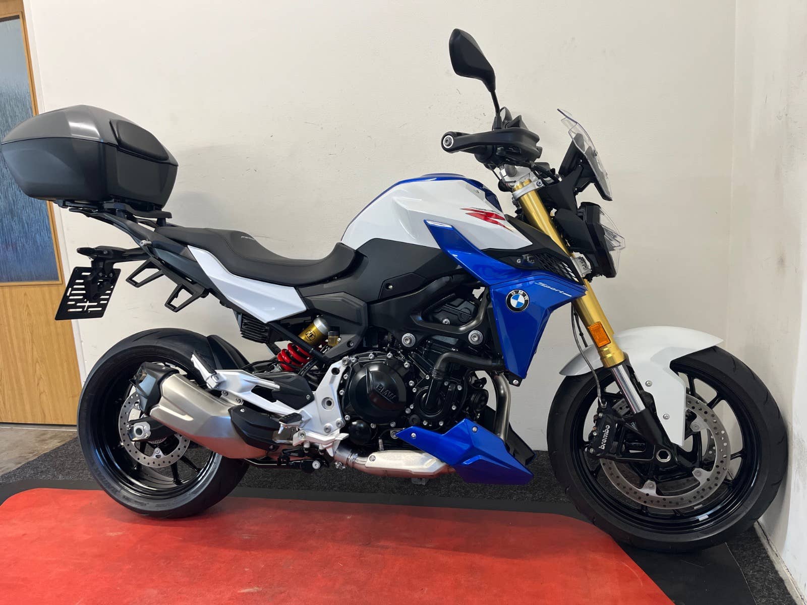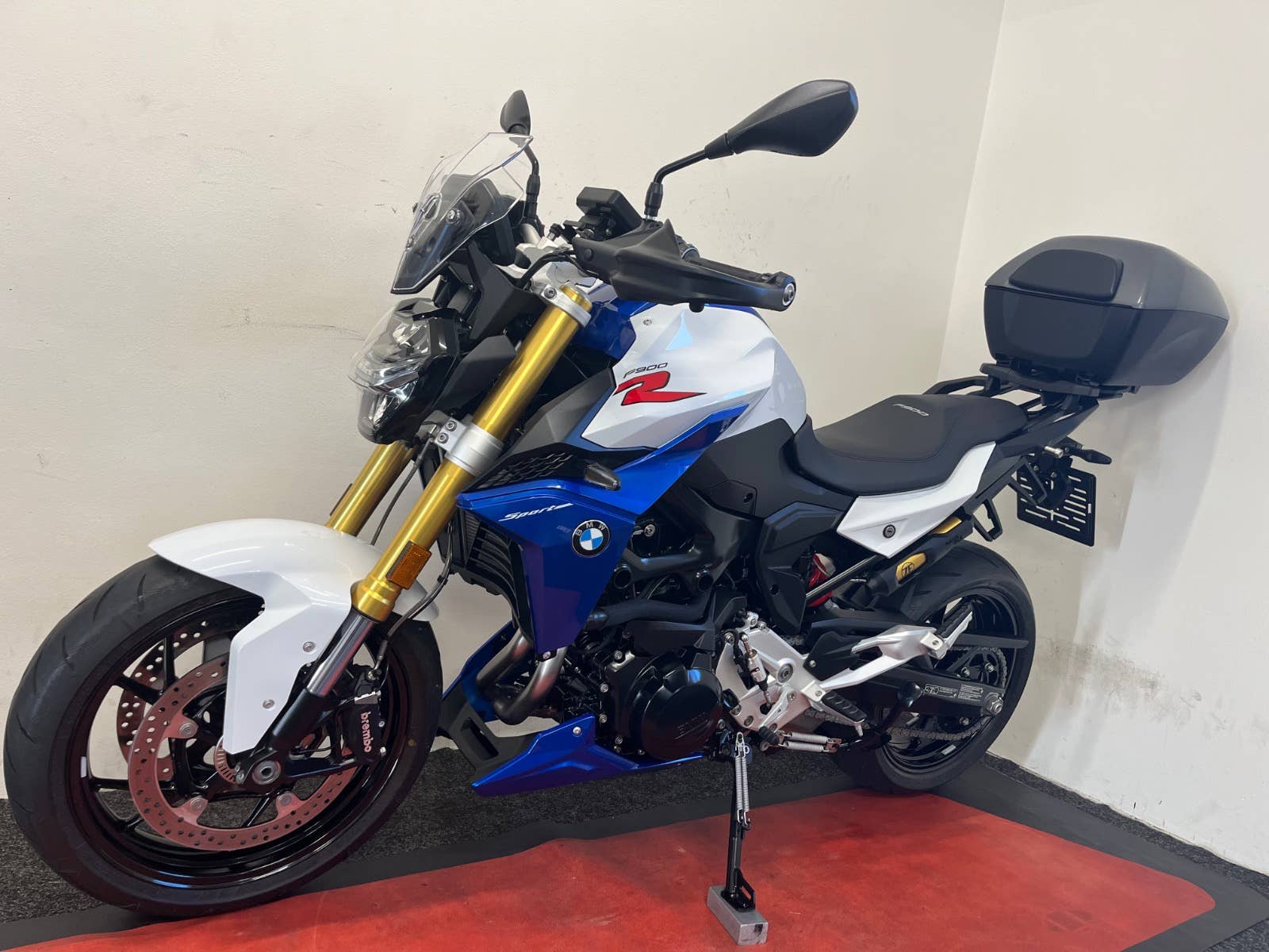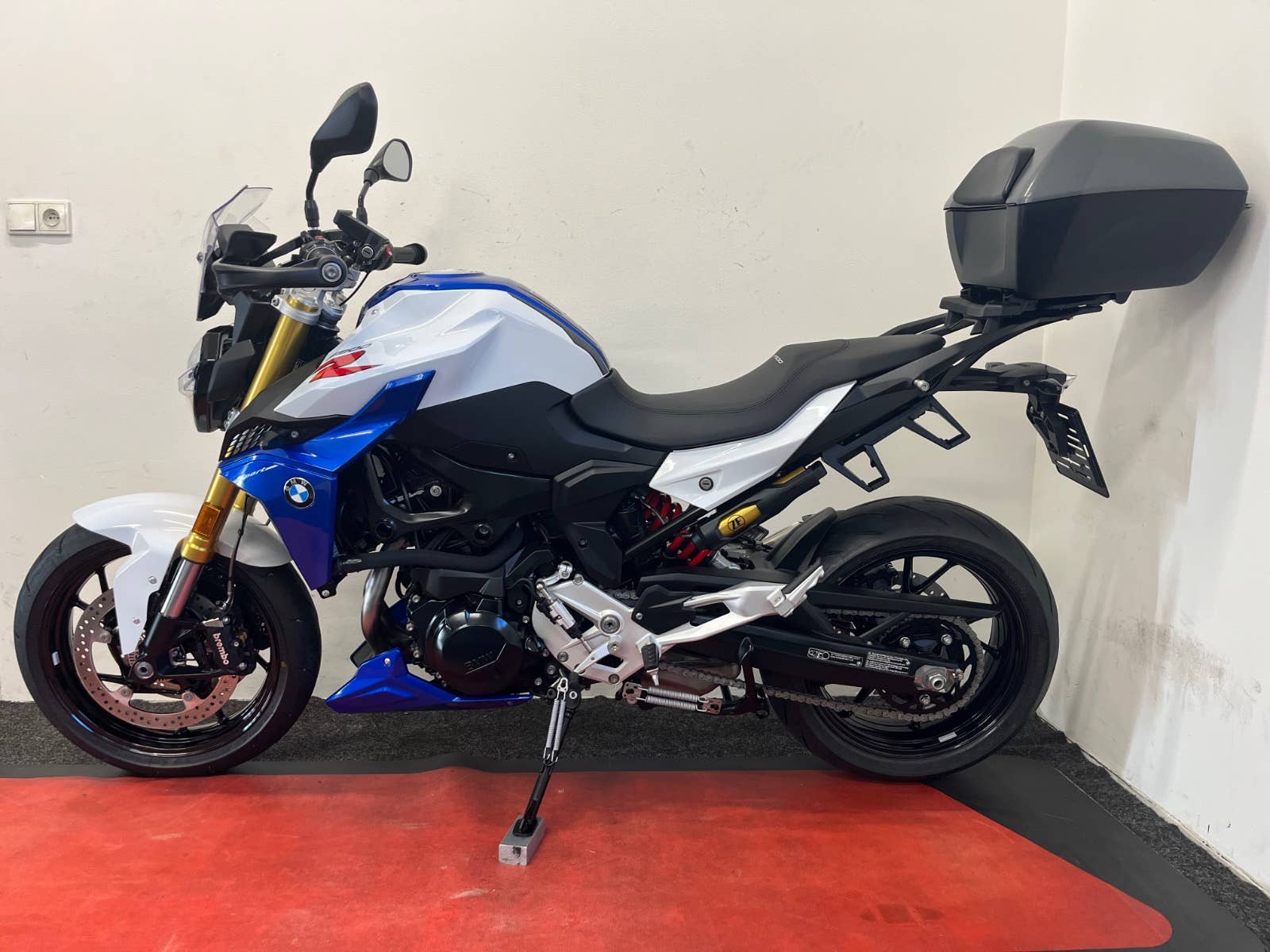Stav nového mota, nebouráno, nelakováno, ABS, ESA, BC, TFT display, vyhřívané hefty, volba jízdních režimů, bezklíčkové startování, zvýšená řidítka, klín pod motor v barvě mota, po 1 maj., serviska + manuál + fa, kufr + držáky bočních kufrů, Quickshifter, tlumič řízení, blástry, vyšší plexi.