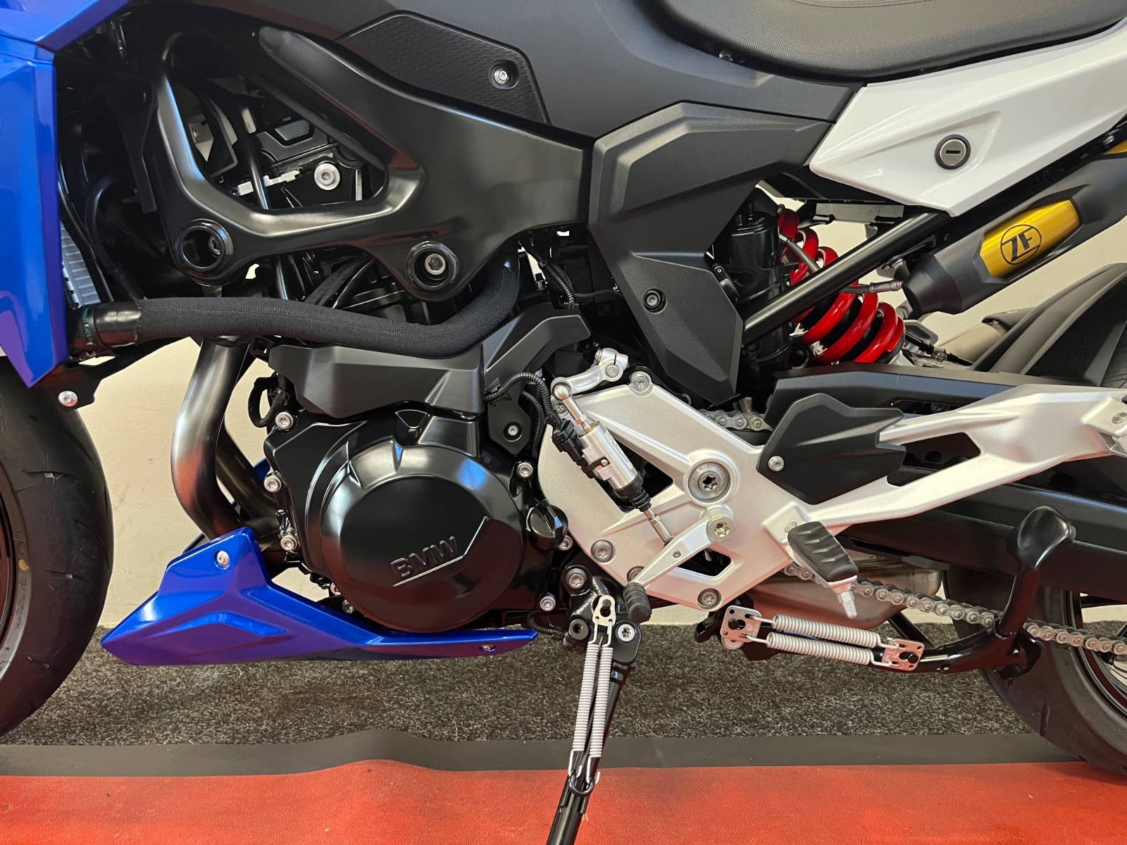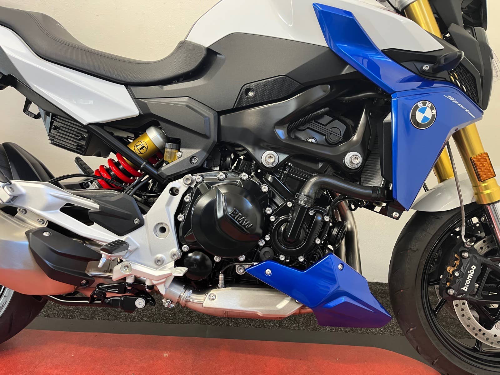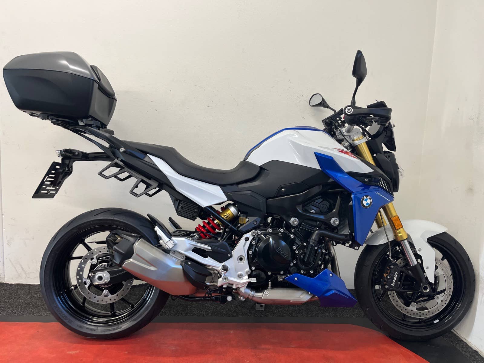 Stav nového mota, nebouráno, nelakováno, ABS, ESA, BC, TFT display, vyhřívané hefty, volba jízdních režimů, bezklíčkové startování, zvýšená řidítka, klín pod motor v barvě mota, po 1 maj., serviska + manuál + fa, kufr + držáky bočních kufrů, Quickshifter, tlumič řízení, blástry, vyšší plexi.
