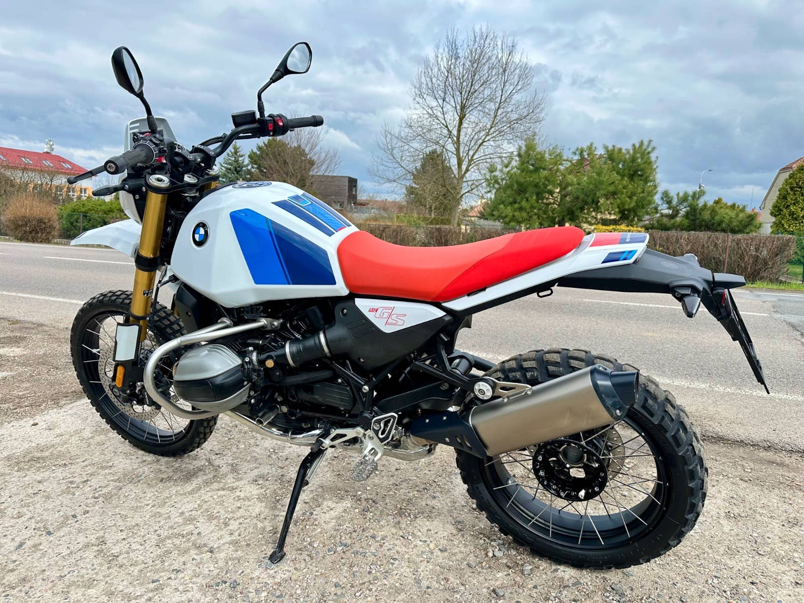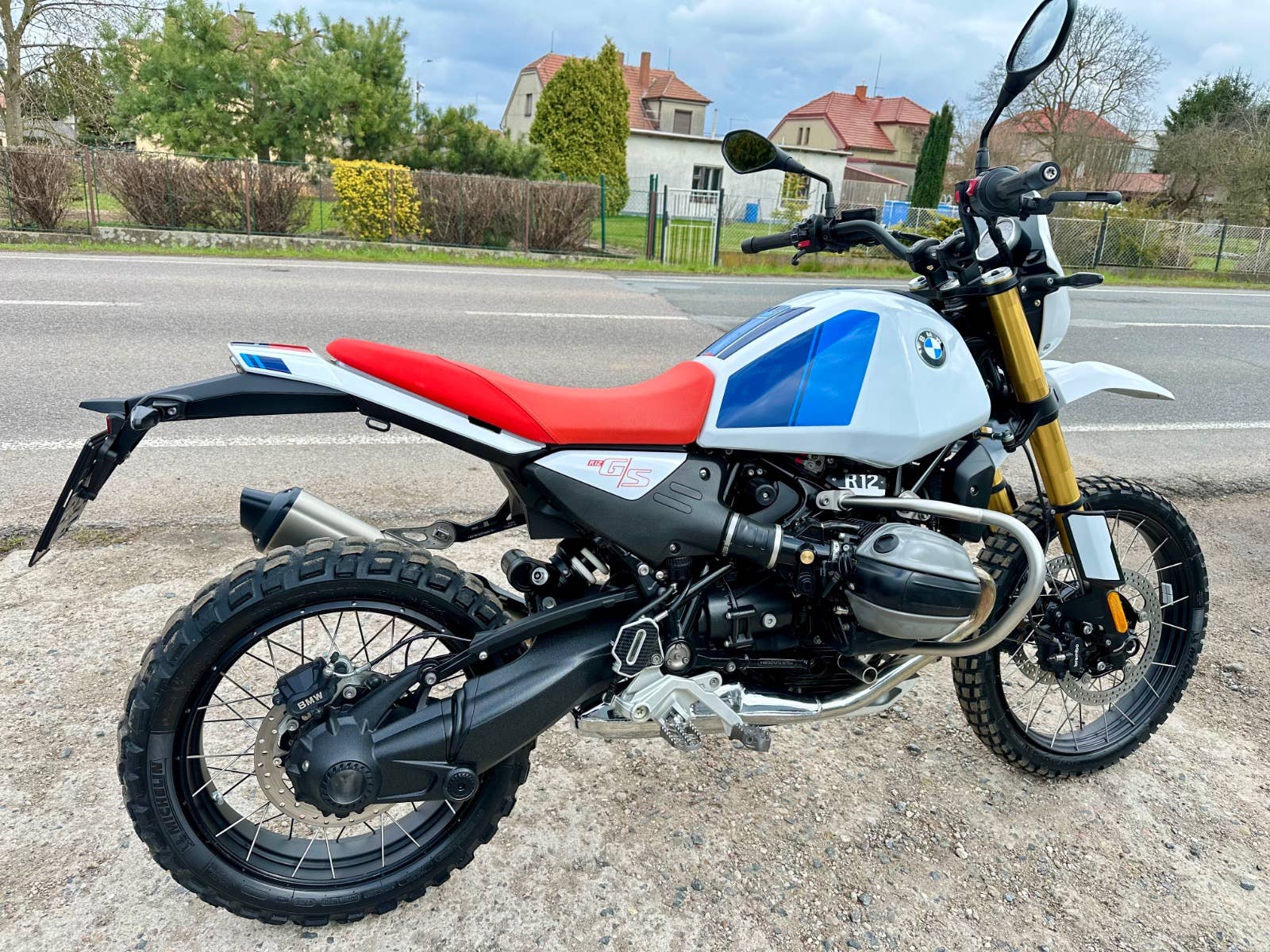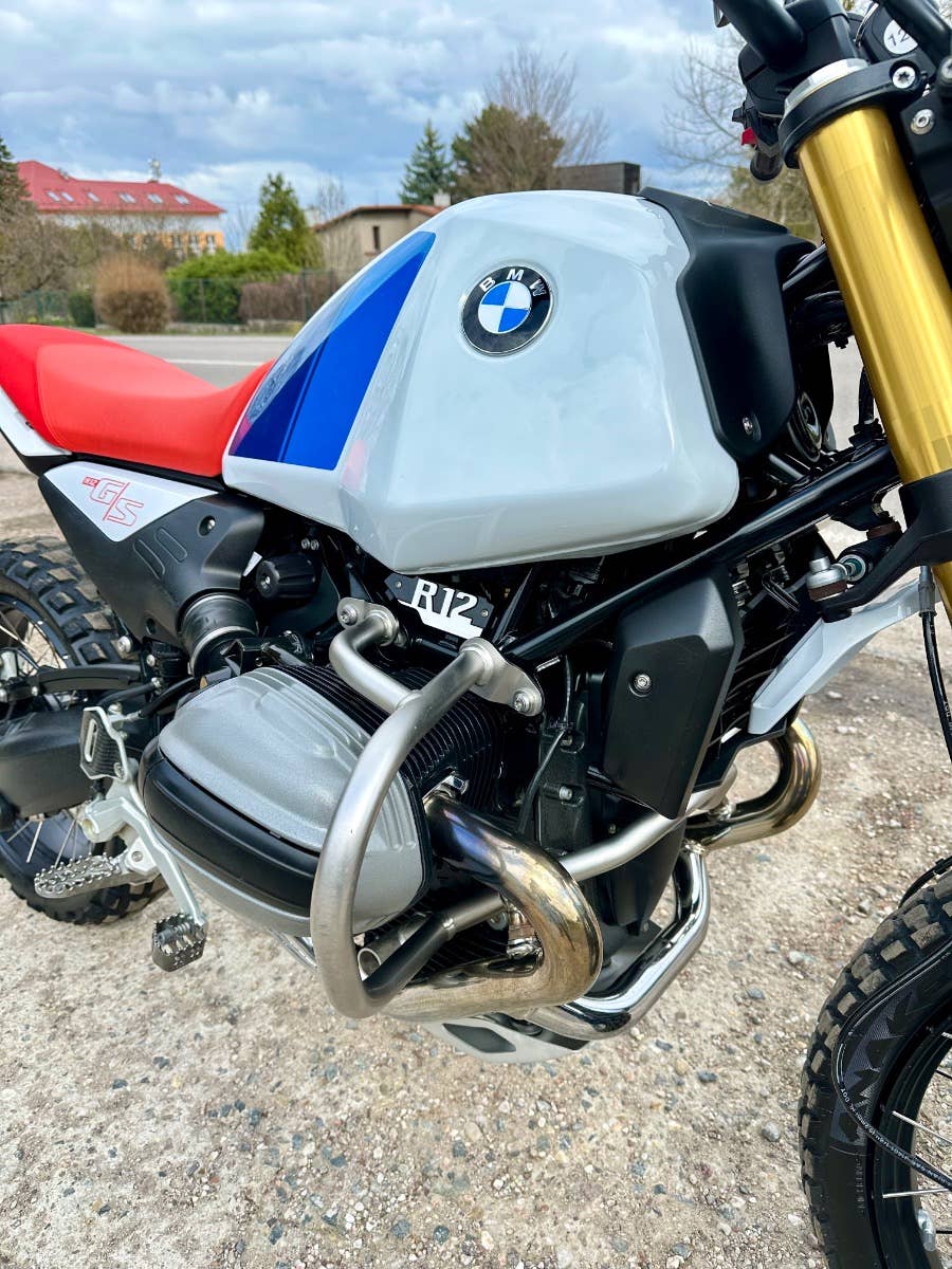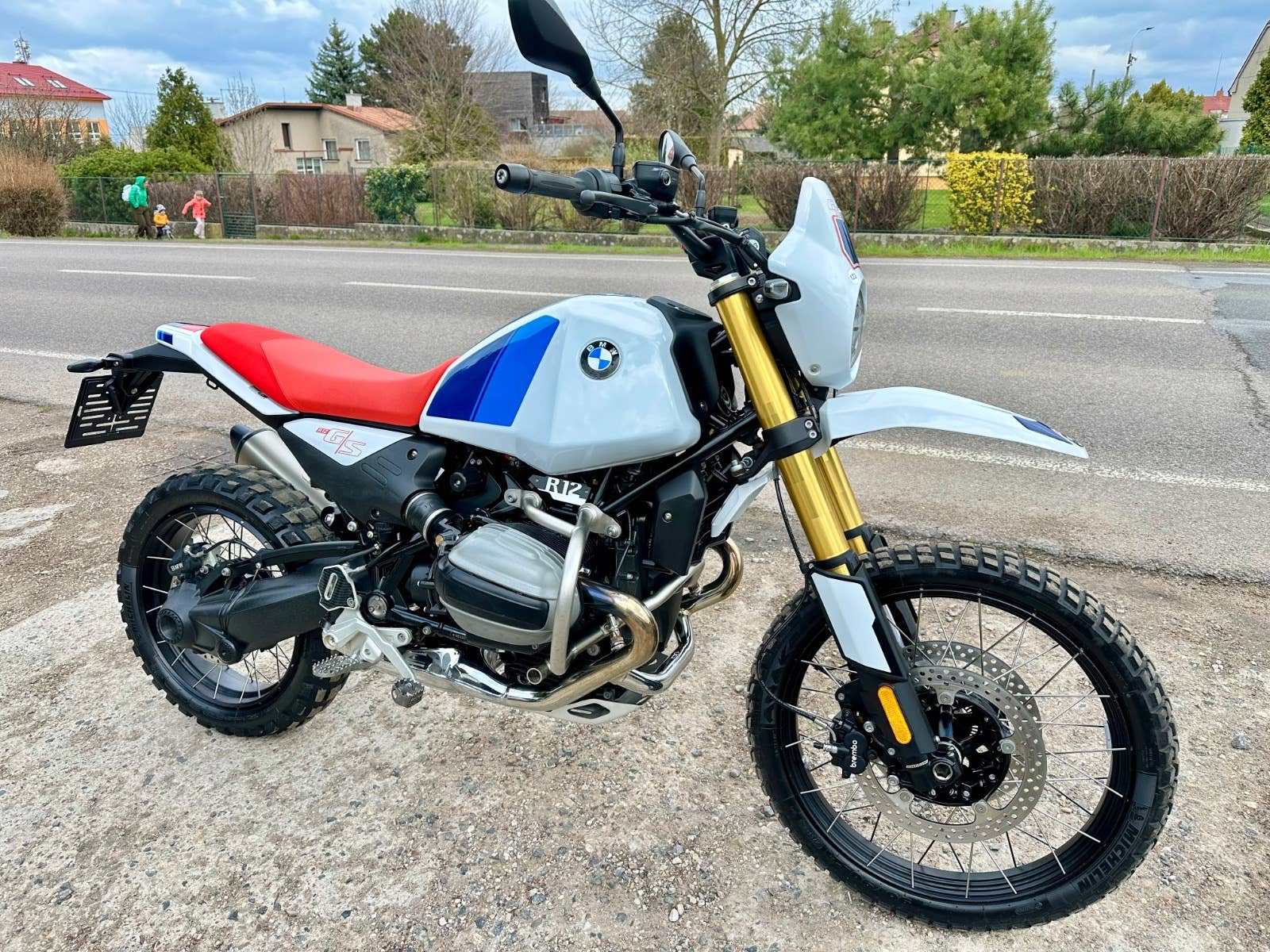 Bmw r 12 G/S, 2025, najeto cca 1300 km, motocykl dovezený z Nemecka od prvního majitele, drobné kosmetické vady - škrábance na krytech rukojetí a viku motoru, na výfuku, plně funkční a pojízdný originální stav s drobnou kosmetikou - použita v terénu, kryty válců jsou demontované, serviska, 3d polep, možnost úvěru od Essoxu nebo Cofidis