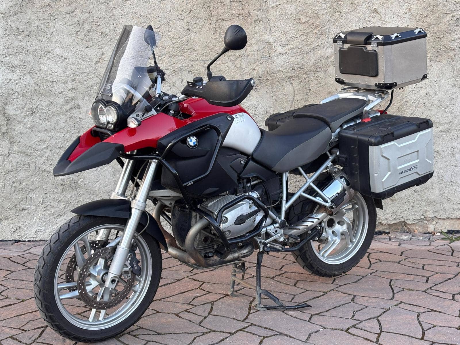 Motorka má vrchní a spodní padací rámy, vyhřívané hefty, palubní PC, rozšíření stojánku, zásuvku 12V, 2 x vario kufr a vrchní ALU kufr. Největší výhoda motorky je, že od výroby nemá toto GS ABS, takže se určitě nerozbije, tak jako postupně se rozbije u všech GS 1200 2004-2007..:-)