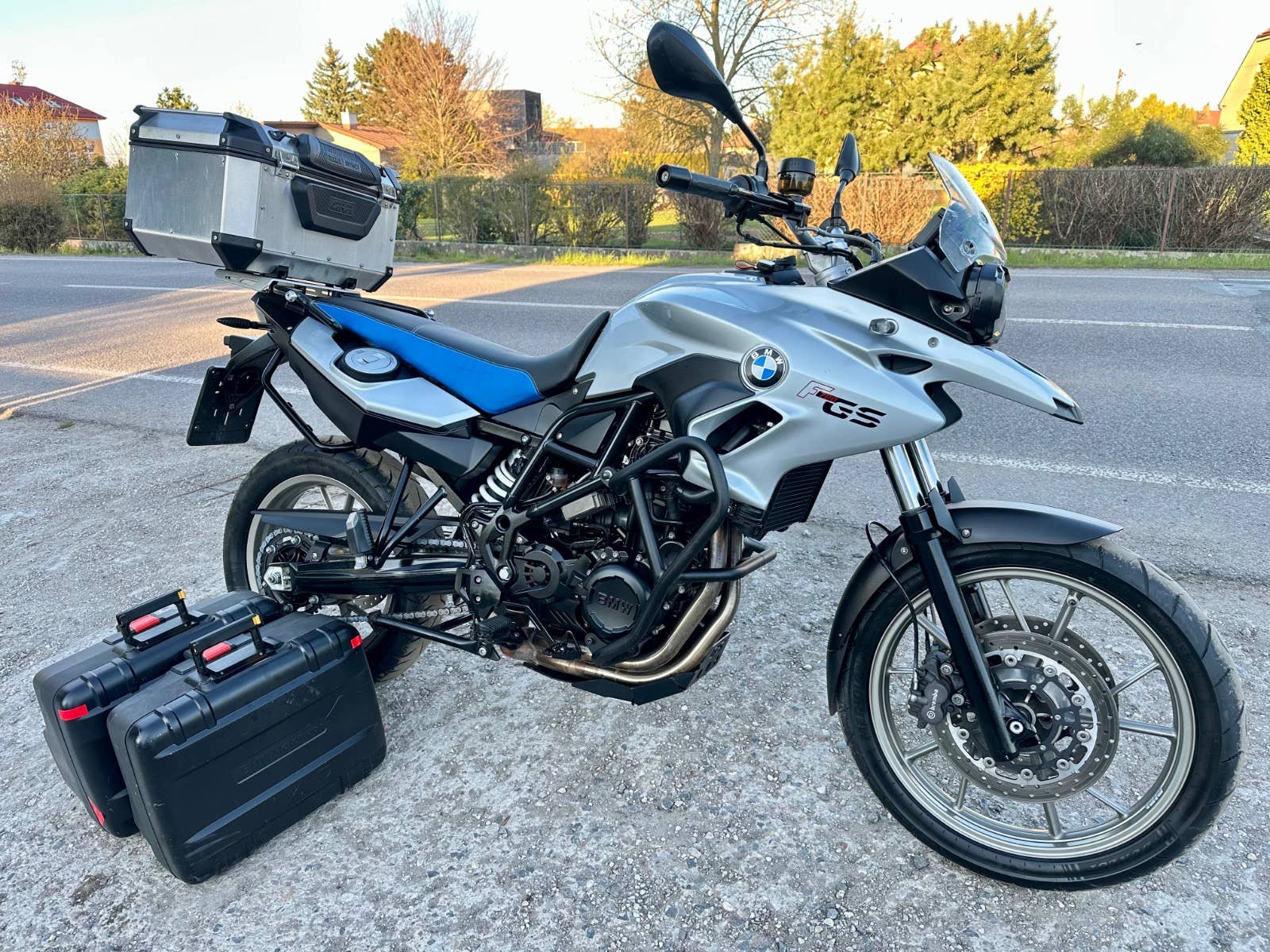 Bmw f 700 gs, 2014, najeto 39 tis km, abs, 2x klíč, alarm, velice zachovalý stav originální stav, bez rzi a oxidace, padací rám, 2x boční kufry Vario, vrchní topcase Hliníkový, hliníkový kryt motoru, centrální stojan, Laďák Leo Vince s homologací, zánovní pneumatiky, přešitý sedlo, možnost úvěru od Essoxu nebo Cofidis