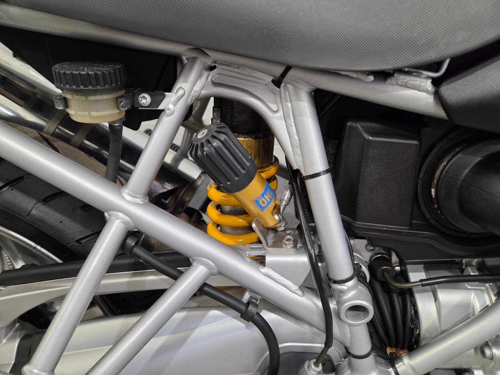Motocykl v super stavu, nehavarované, motocykl snížený na podvozku a na sedle to dělá - 5,5cm, originál km, 2x klíč, kufr na dvě helmy, centrální stojan, padací rám Heed, přídavná světla, originál blastry, nové zadni brzdove desky, nová zadni pneu, prední pneu 70%, přední tlumič WP, zadní Öhlins plně nastavitelný.