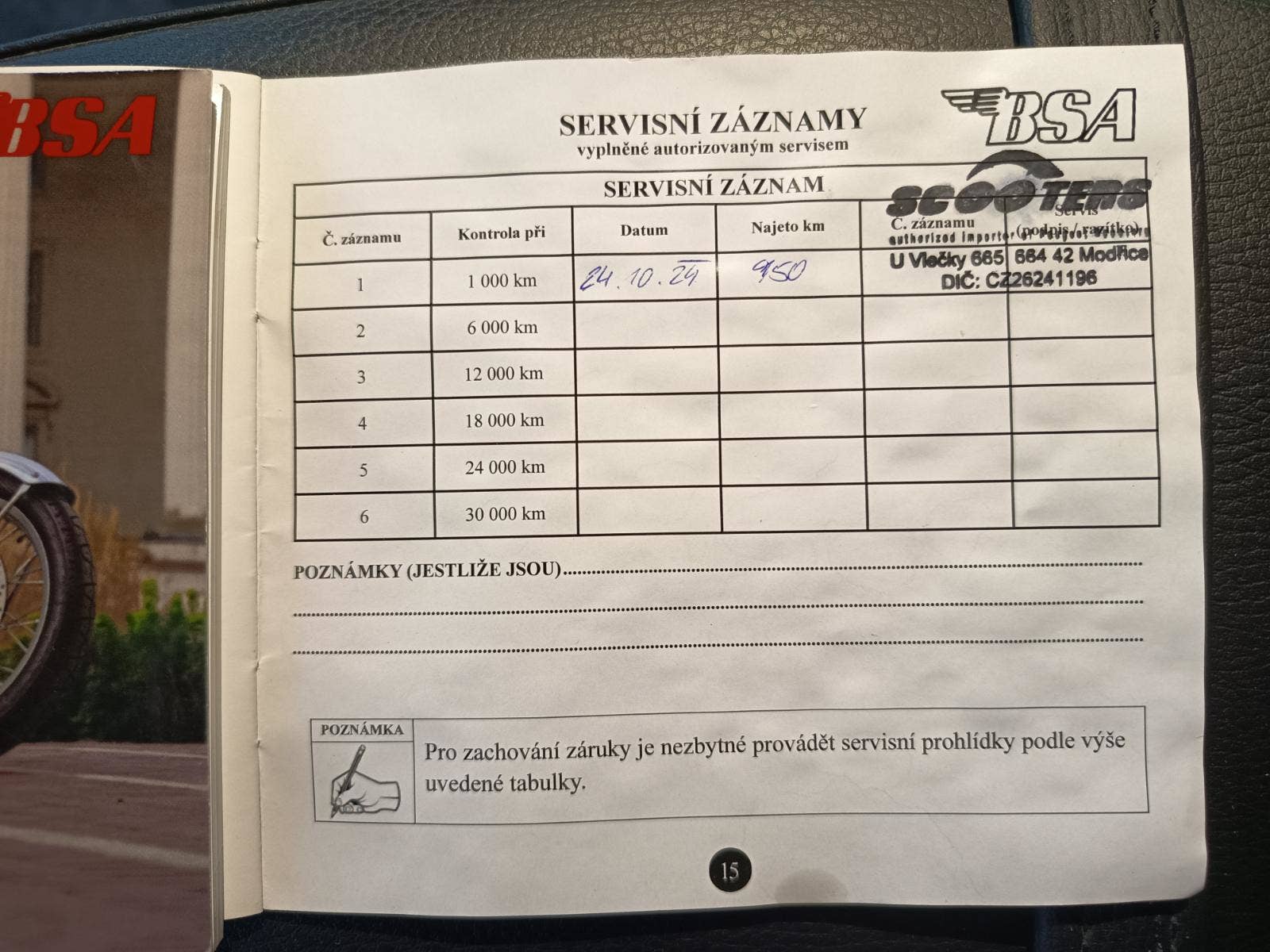 Krásný retro motocykl věhlasné anglické značky BSA. Stroj byl jako nový zakoupen u autorizovaného dealera značky BSA v čechách. K motocyklu je k dispozici uživatelský manuál i serv isní knížřka s vyznačeným servisem. Motocykl je ve stavu, kdy nemá žádné známky opotřebení a takzvaně jako nový. Na stroj můžeme nabídnout financování na splátky prostřednictvím našeho partnera společnosti ESSOX a nabídku prodeje na splátky jsme svhopni zpracovat i po telefonu.