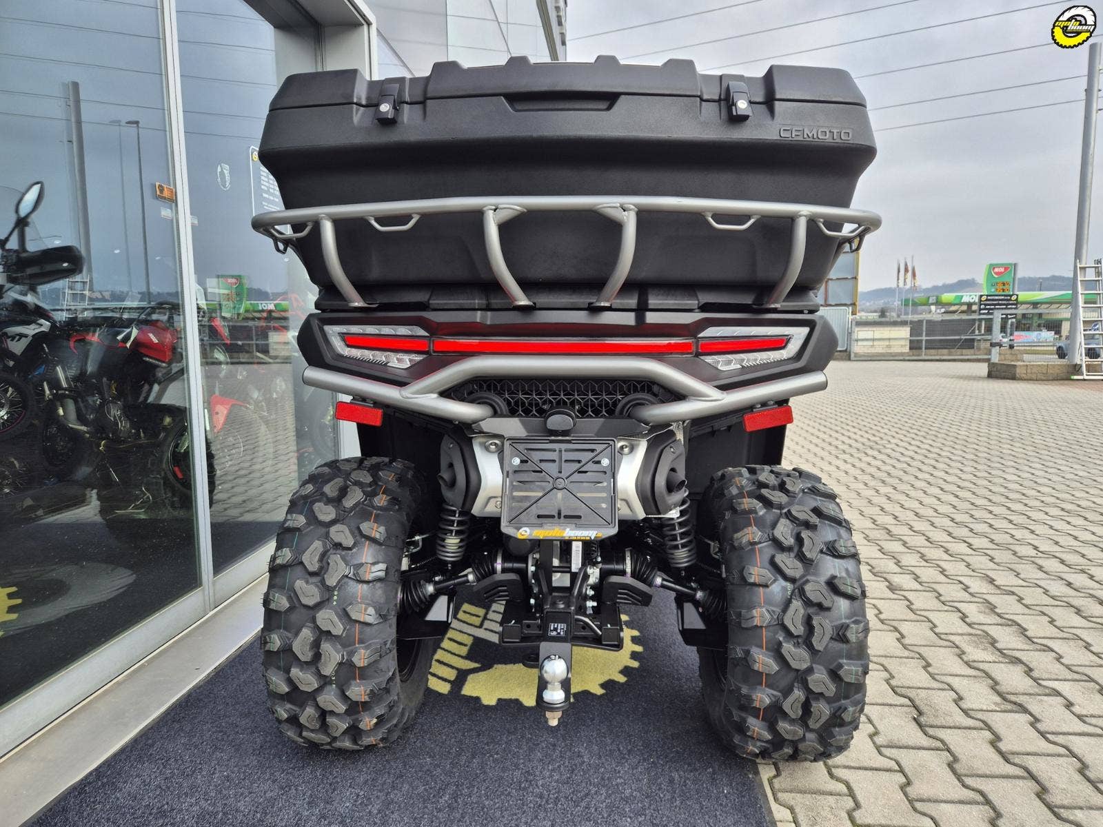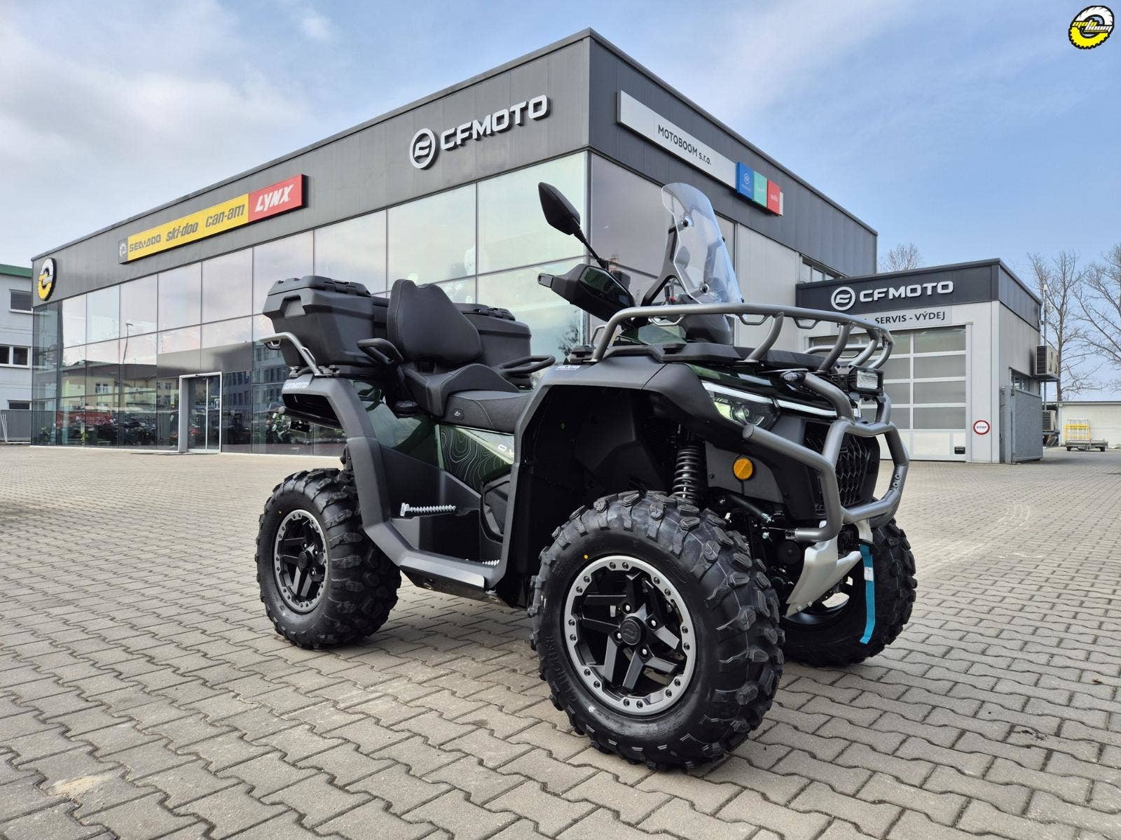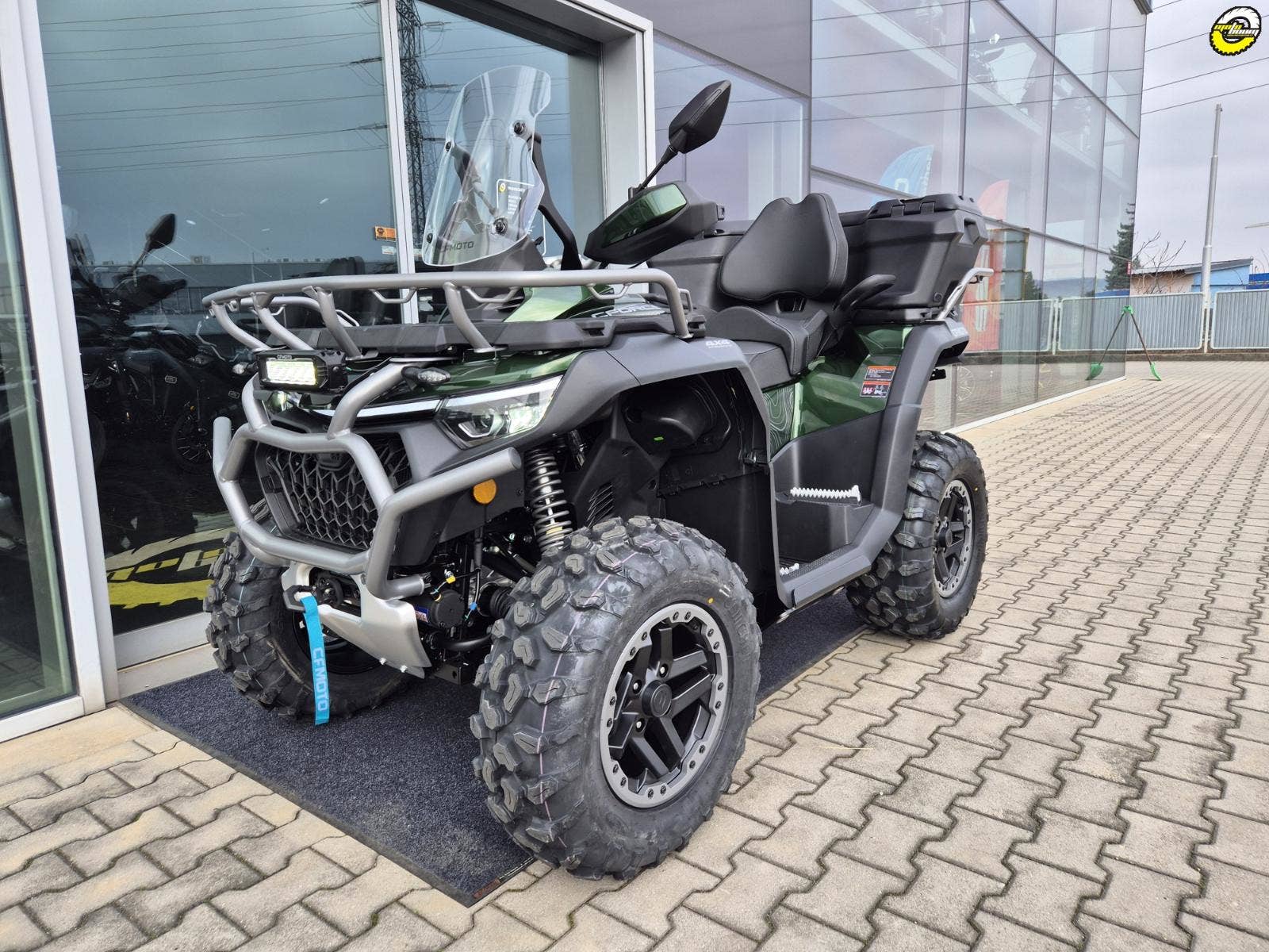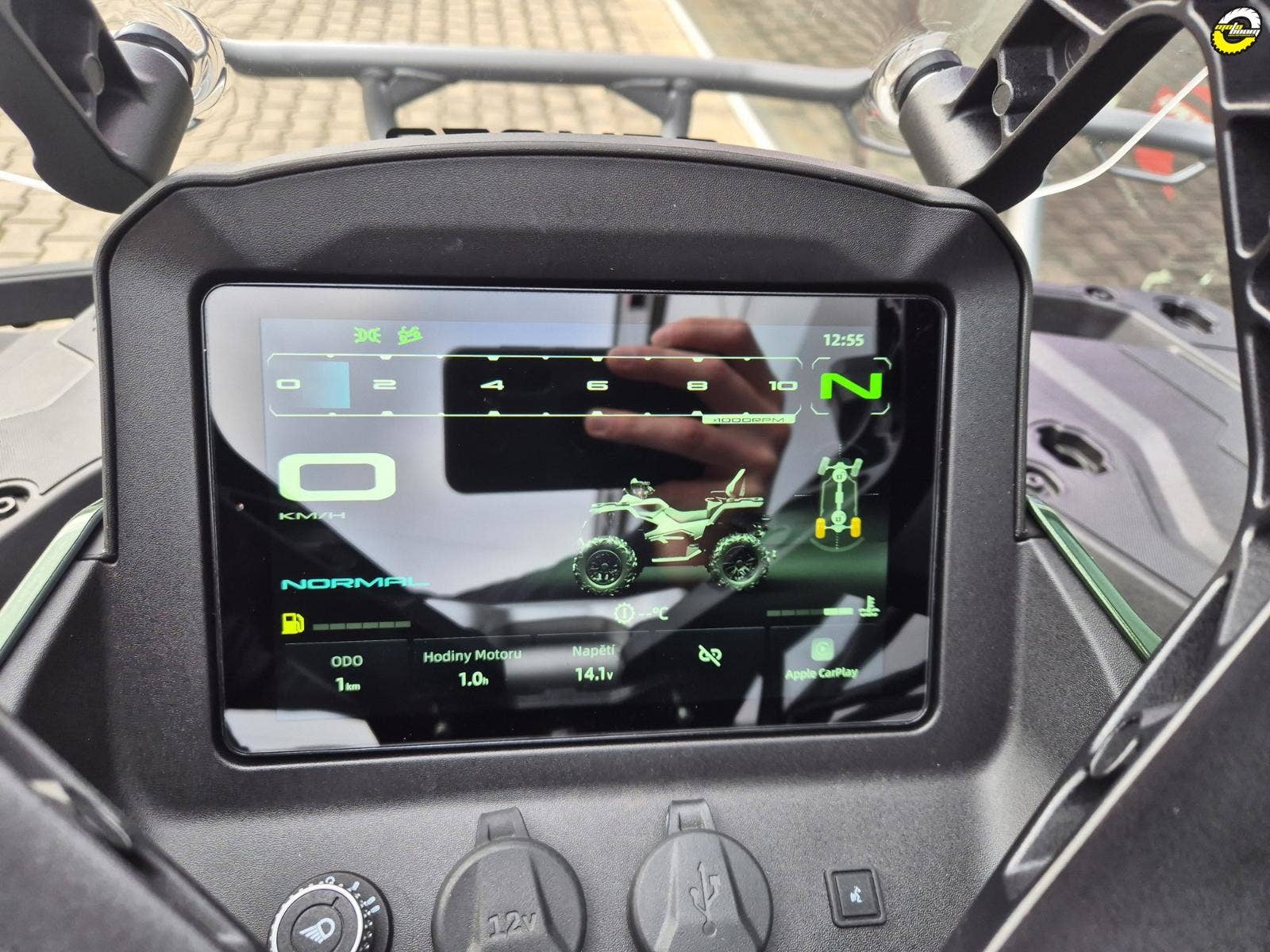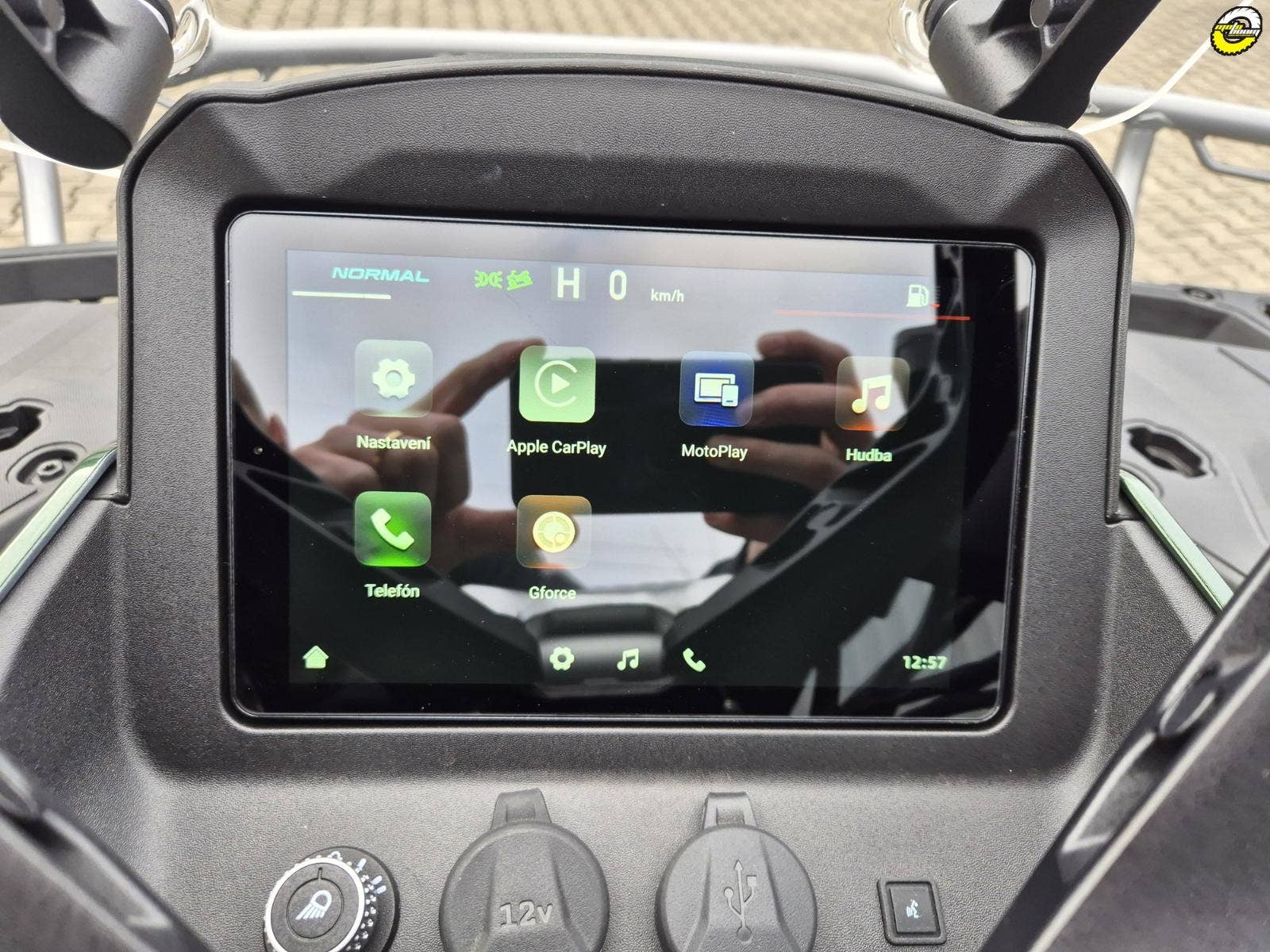 T-Box (volitelné) umožňuje propojení s chytrým telefonem přes aplikaci CFMOTO RIDE, což znamená okamžitý přístup k palubním údajům v reálném čase např.: množství paliva, stav baterie, záznam o jízdě, samodiagnostika vybraných základních funkcí před jízdou.