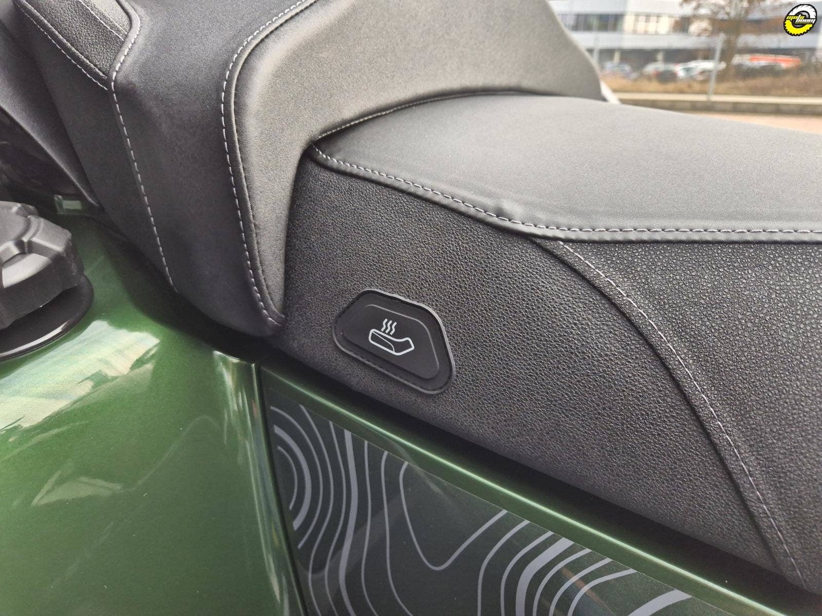 Čelní plexi se otáčí spolu s řídítky stroje, je tvarováno pro optimální obtékání vzduchu a ochranu posádky. Jeho držák nenápadně ochraňuje palubní displej před mechanickým poškozením.