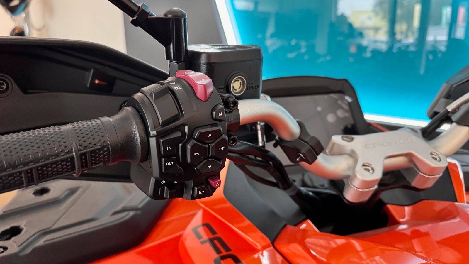 Komunikační modul T-BOX* umožňuje přenos dat z vozidla do mobilní aplikace CFMOTO Ride. Zde je zobrazena poloha stroje, historie jízd a statistika, informace o stavu vozidla, upozornění na manipulaci se strojem a další. V aplikaci také naleznete novinky ze světa CFMOTO a informace o prodejcích a servisech. Součástí aplikace je také funkce MotoPlay, která umožňuje přenos navigace z aplikace přímo na displej vozidla.