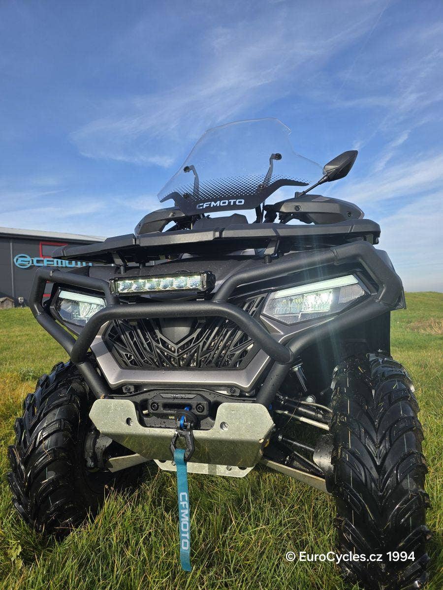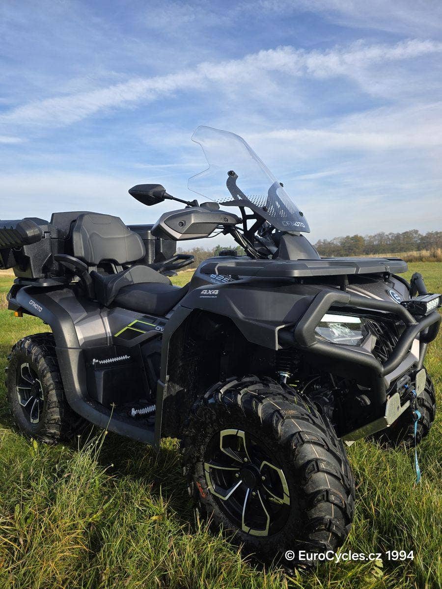 Původ ČR, koupeno v EuroCycles v září 2025, odpočet DPH, záruka. Verze Overland s maximální výbavou: přední a zadní ochranný rám, LED přídavný světlomet, ALU kryt podvozku, kufr, přední štít, posilovač řízení. Doplněno o další nákladné příslušenství: odnímatelné a uzamykatelné pouzdro na pušku, výhřevy sedadel, rukojetí a páčky plynu. Najeto 417 km, v podstatě nový stroj s příslušenstvím v pořizovací hodnotě 242000, Kč.