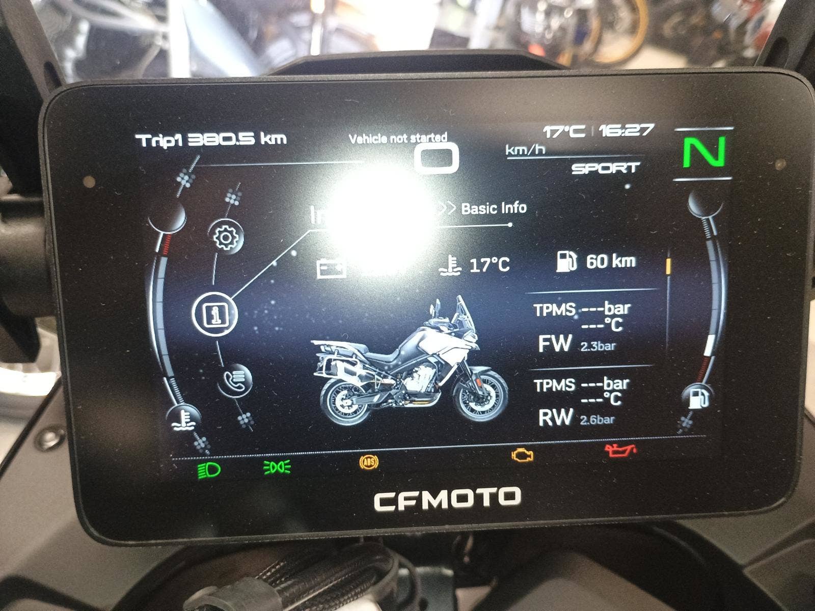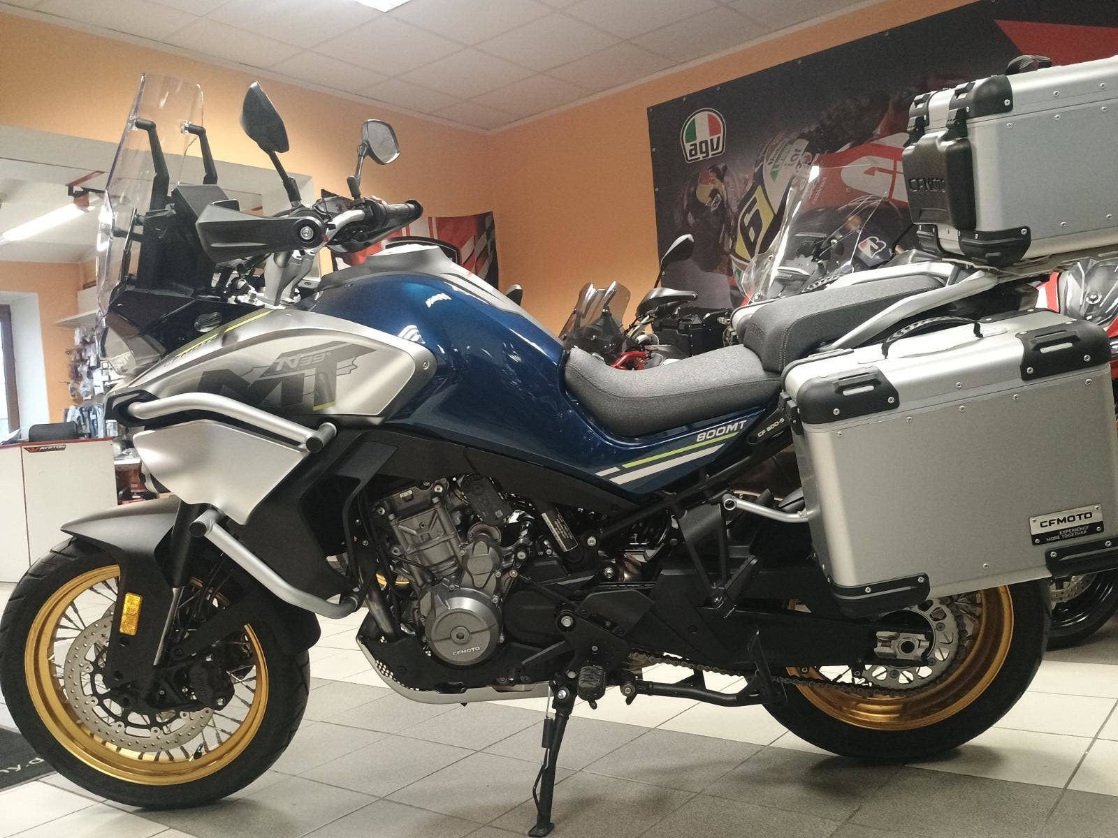 CF MOTO 800MT ve specifikaci TOURING (tehdejší plná výbava) včetně originální sady 3x alu kufrů a s nájezdem pouhých 6000 km po 1. majiteli.