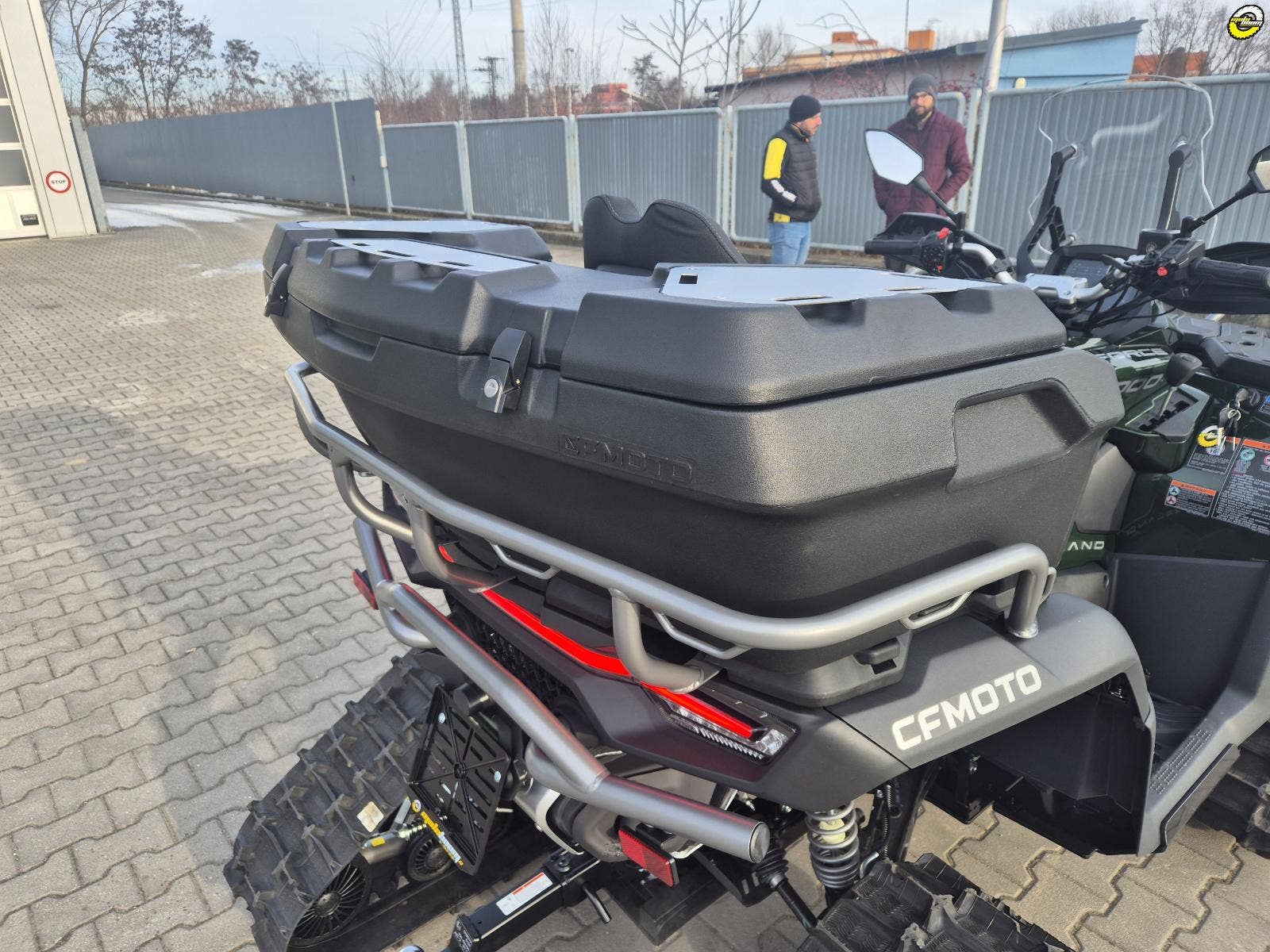 T-Box (volitelné) umožňuje propojení s chytrým telefonem přes aplikaci CFMOTO RIDE, což znamená okamžitý přístup k palubním údajům v reálném čase např.: množství paliva, stav baterie, záznam o jízdě, samodiagnostika vybraných základních funkcí před jízdou.